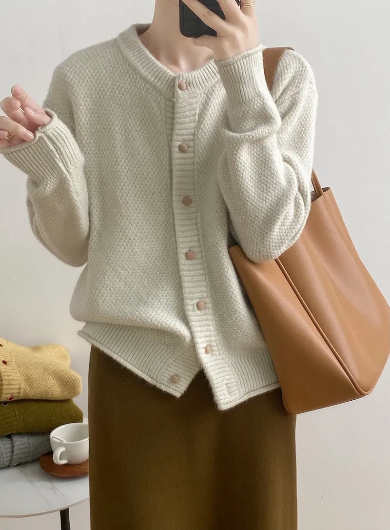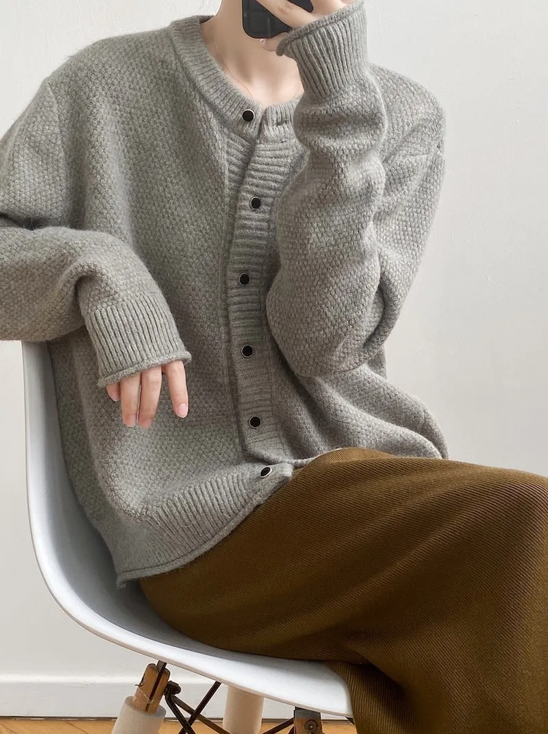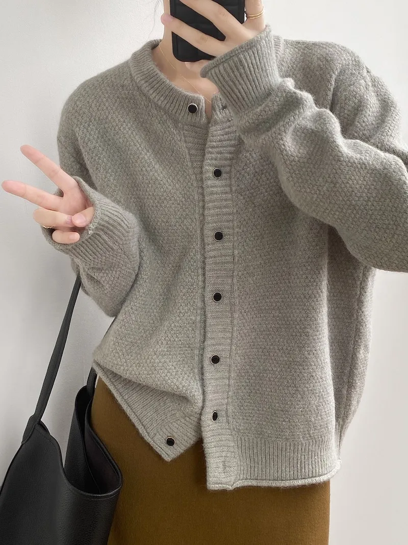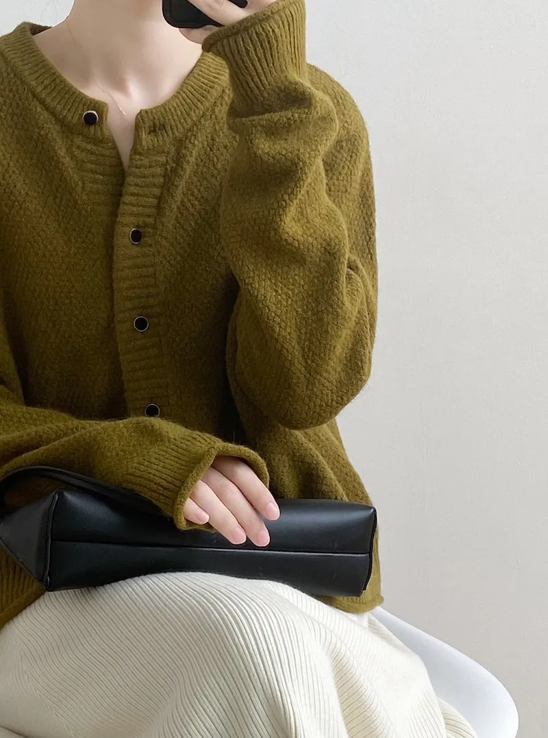 溫雅柔美.微寬鬆圓領針織開衫 4色
