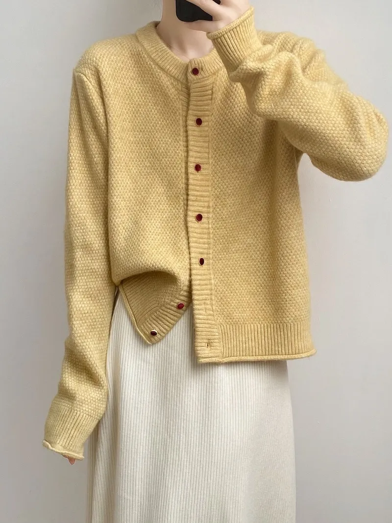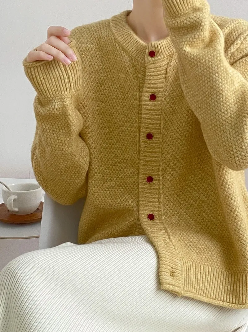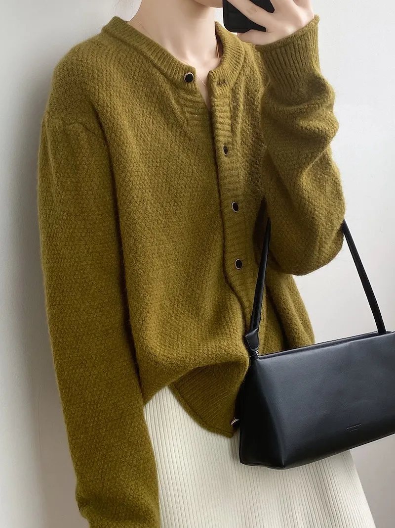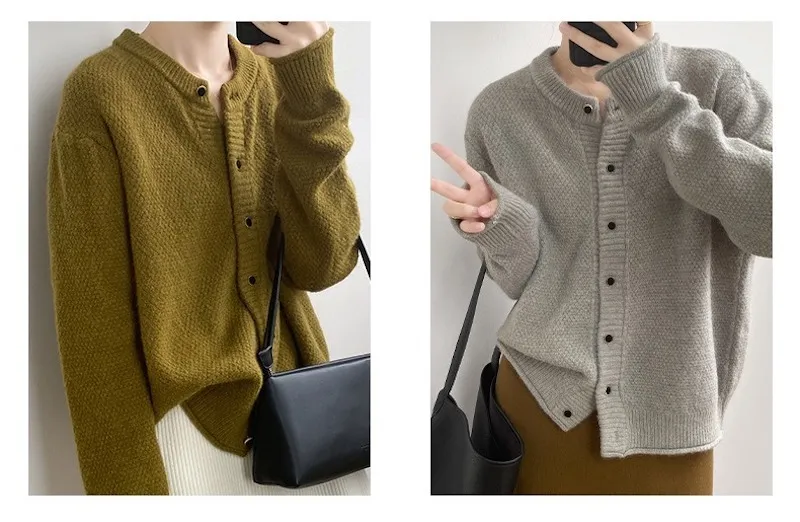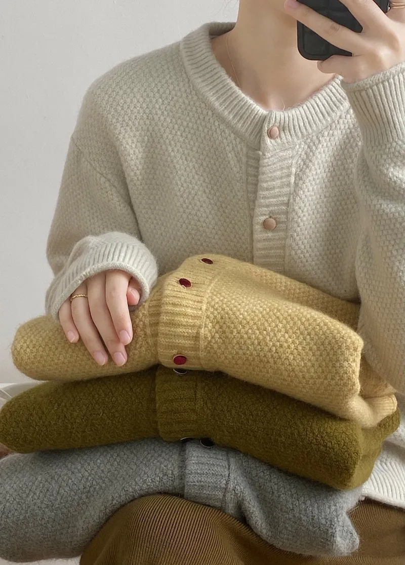 溫雅柔美.微寬鬆圓領針織開衫 4色