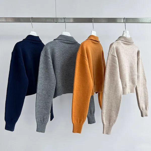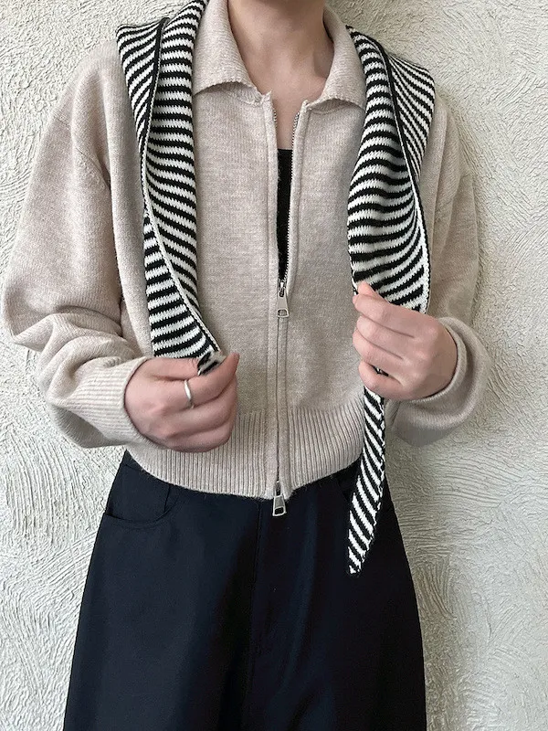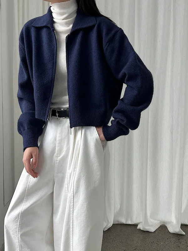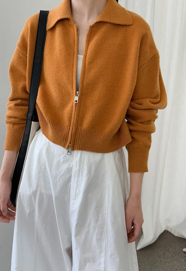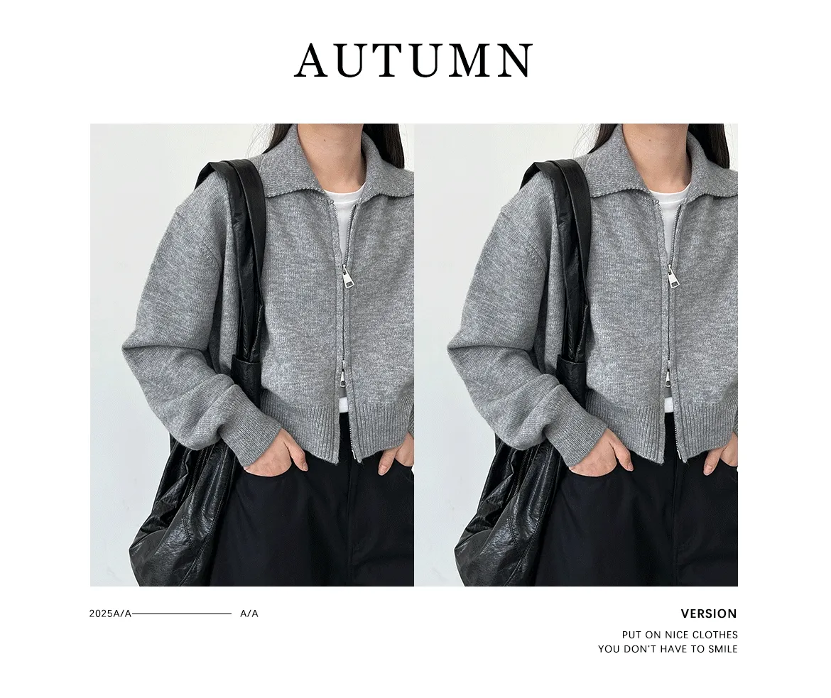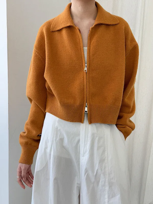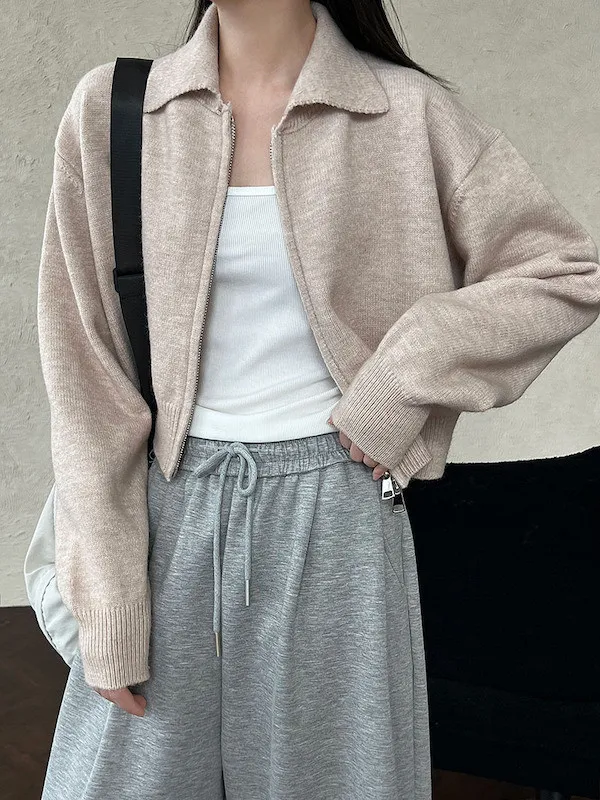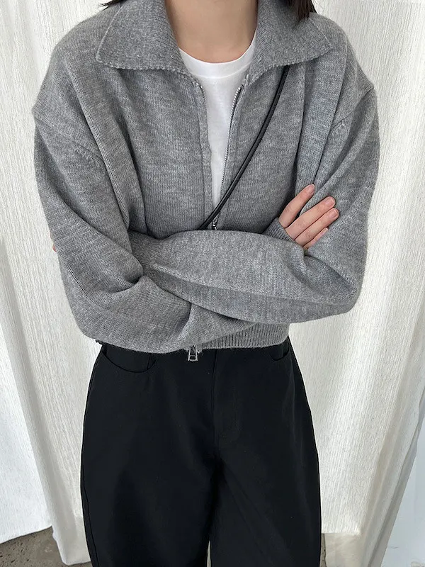 秋日溫柔感~雙拉鍊針織Polo開衫外套 4色