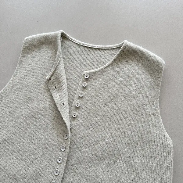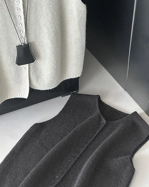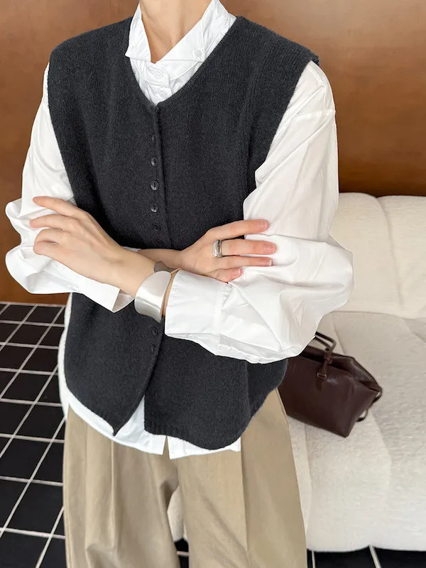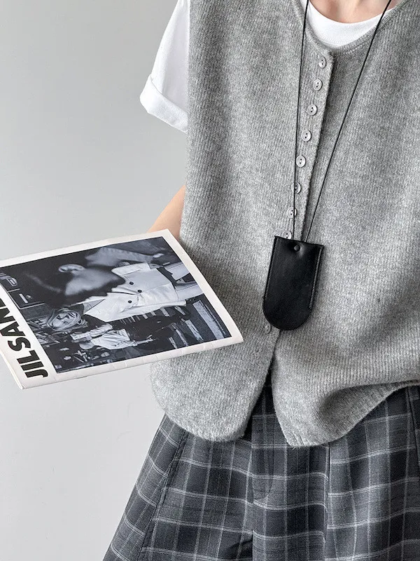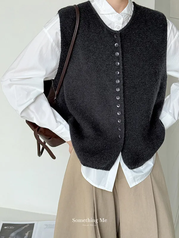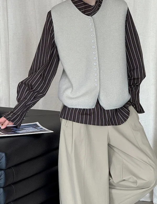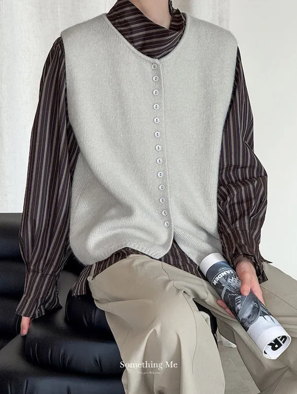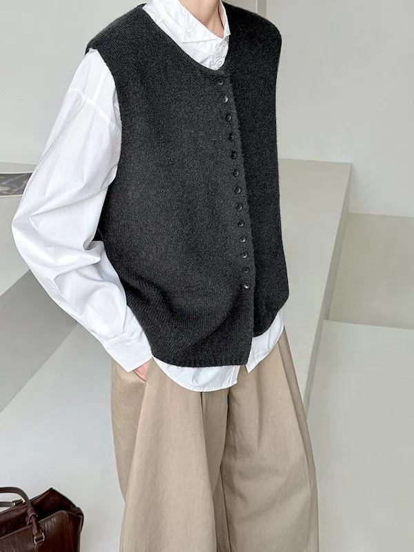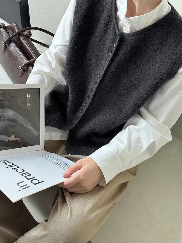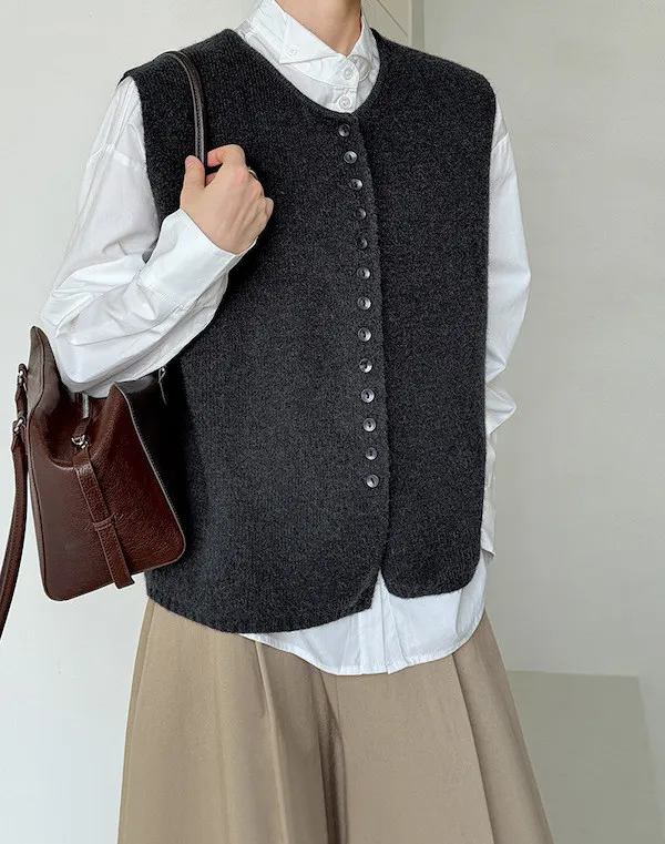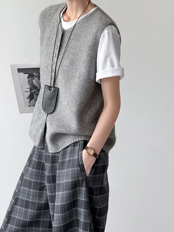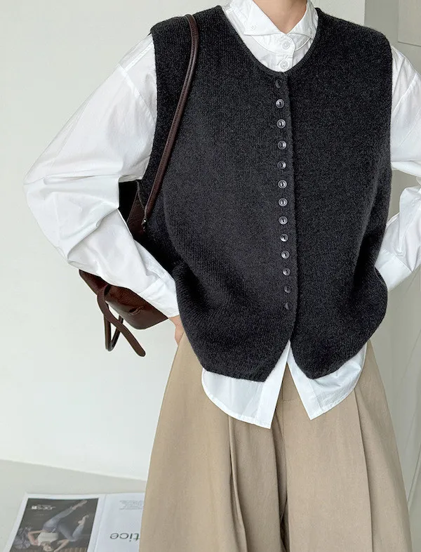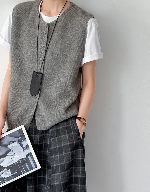 文藝日常 圓領單排扣針織背心 3色