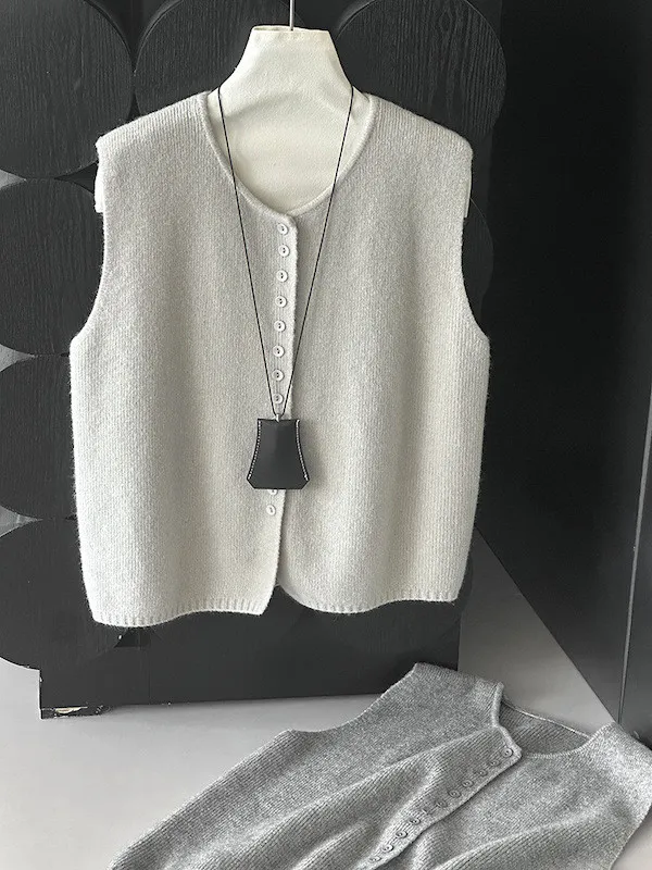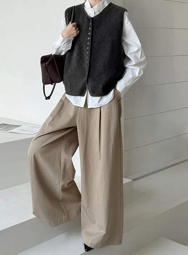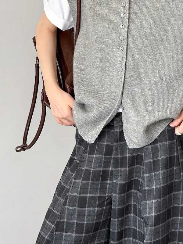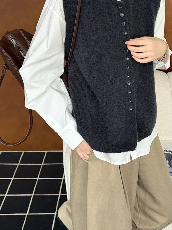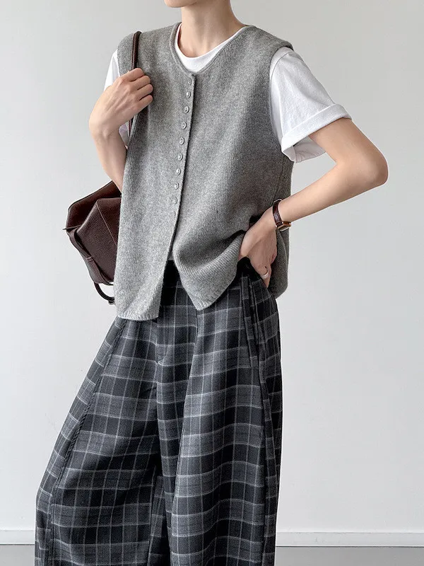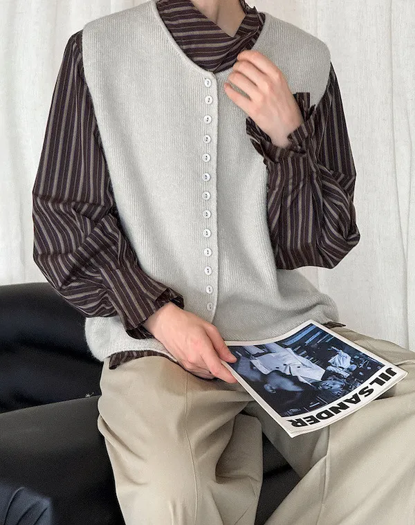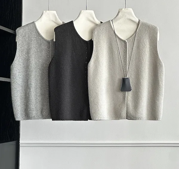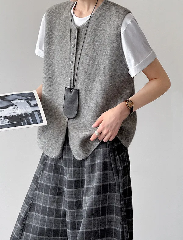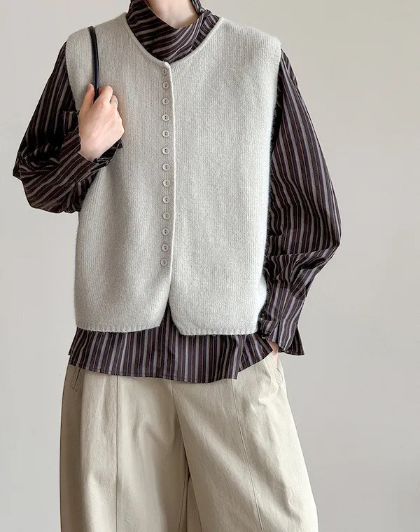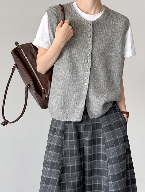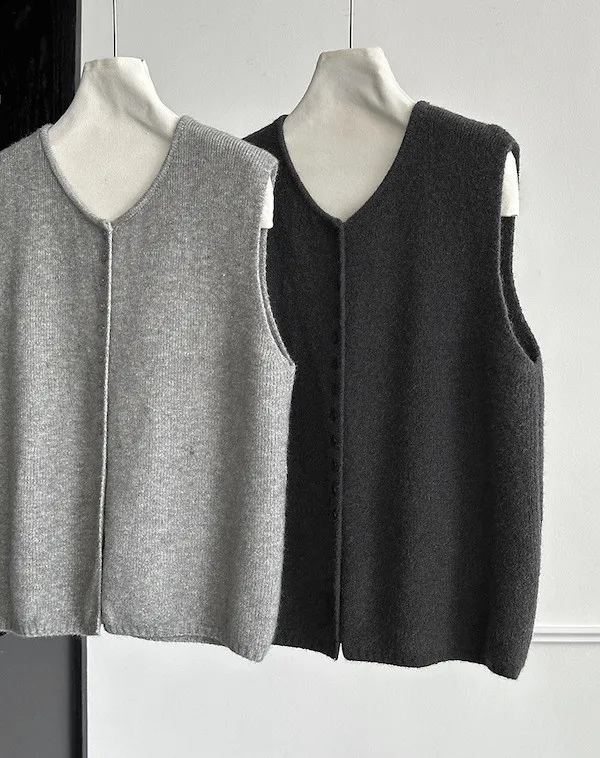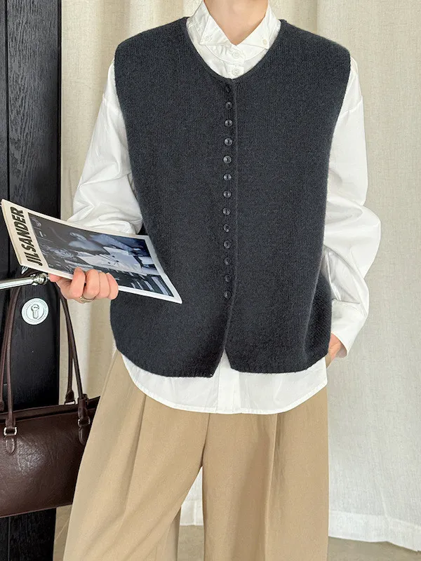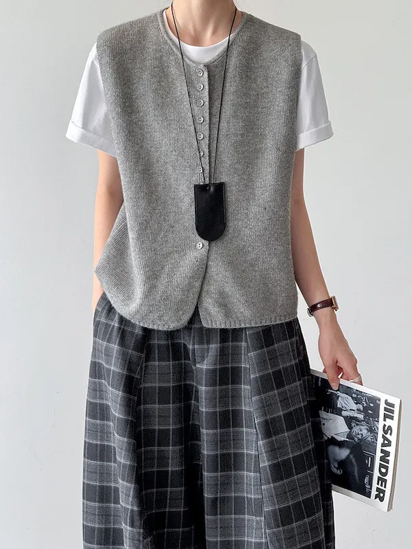 文藝日常 圓領單排扣針織背心 3色