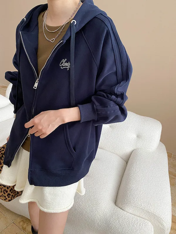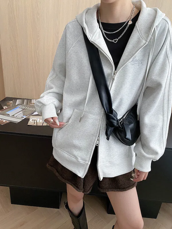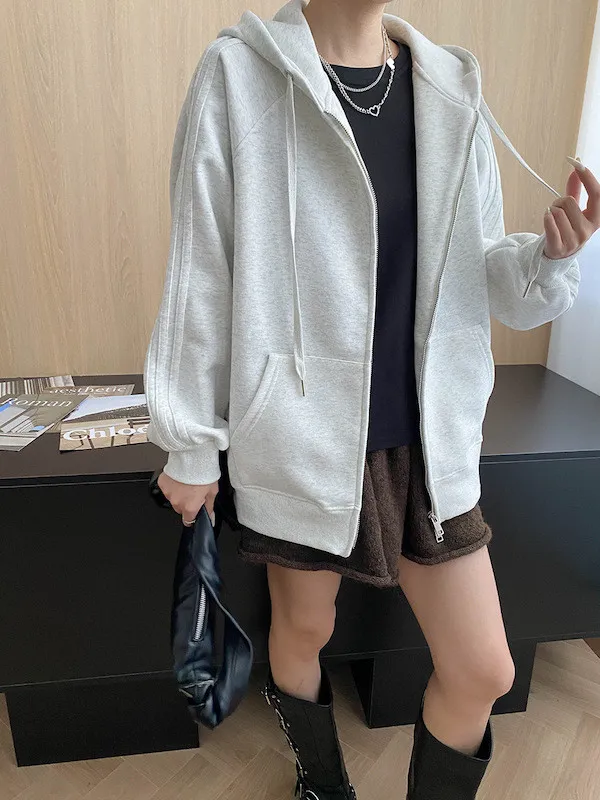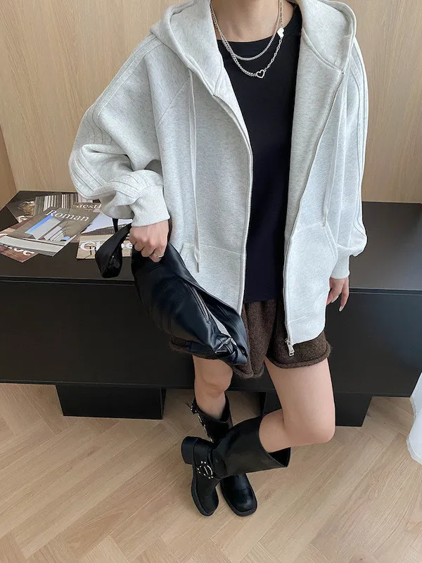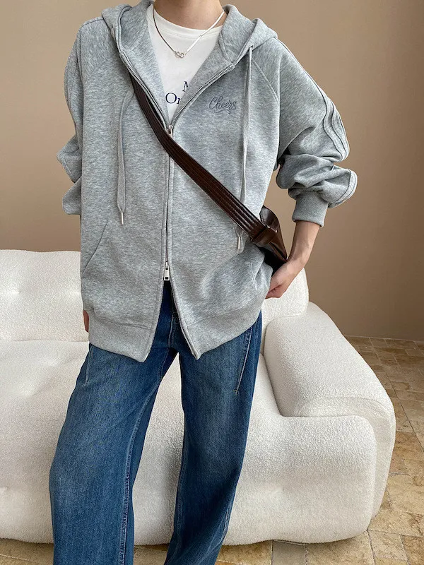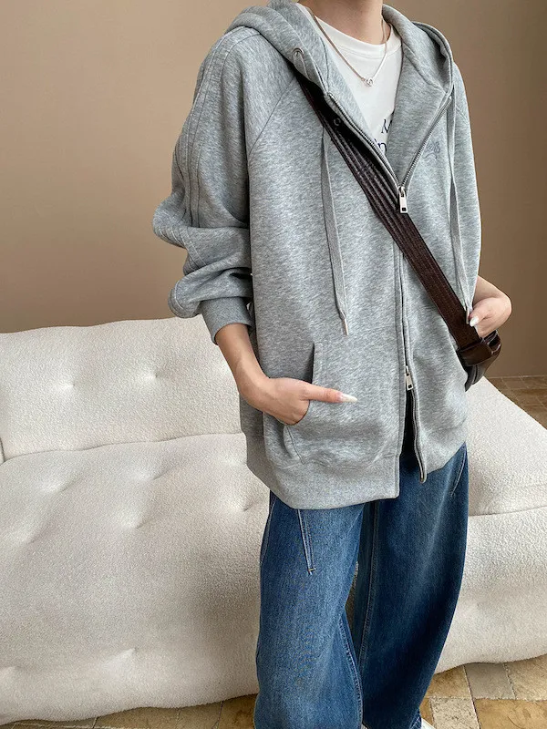 隨性休閒 雙拉鍊立裁插肩袖連帽外套 3色