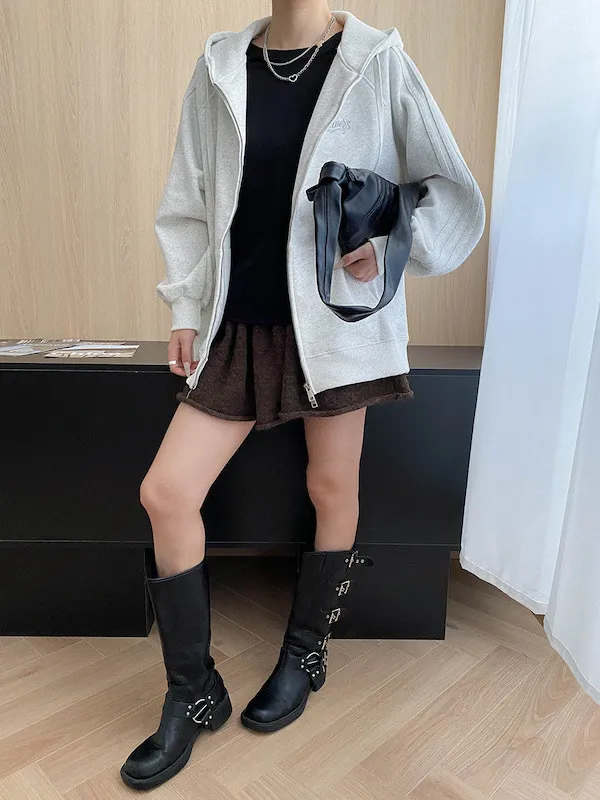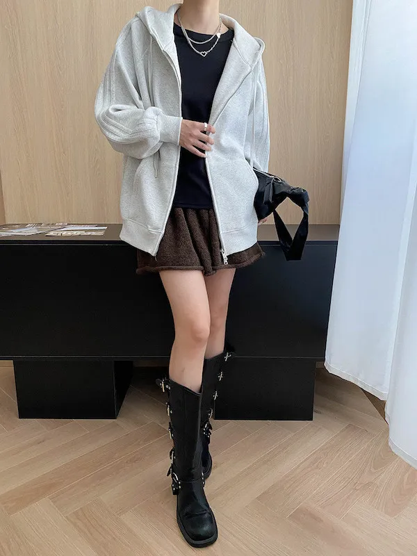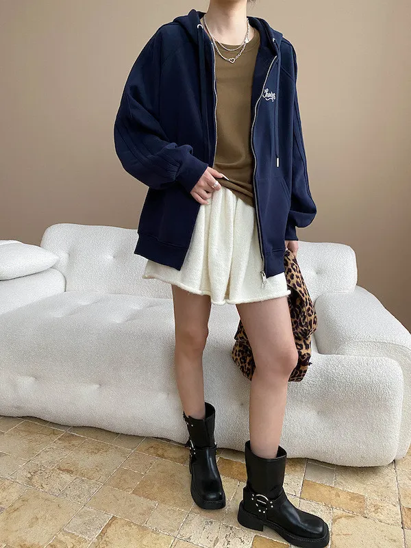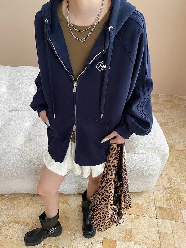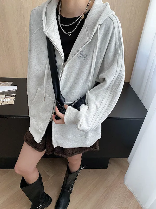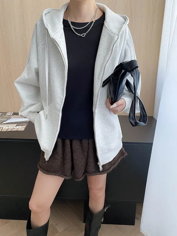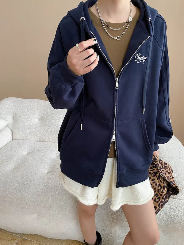 隨性休閒 雙拉鍊立裁插肩袖連帽外套 3色