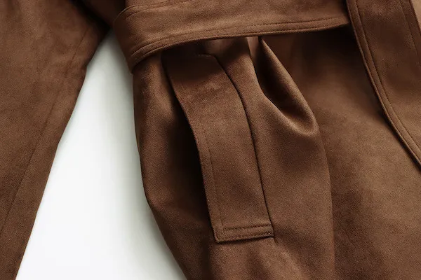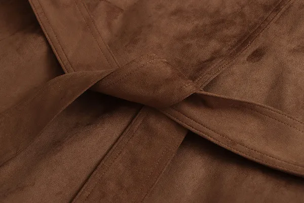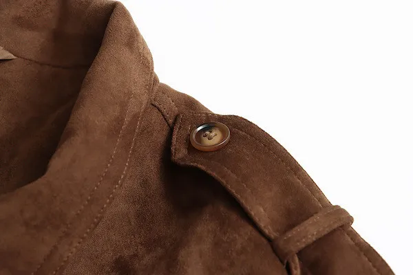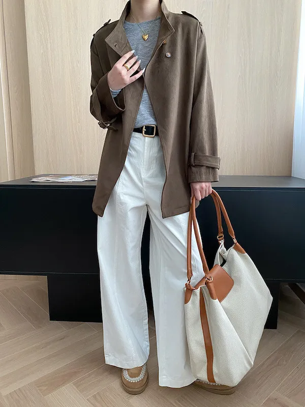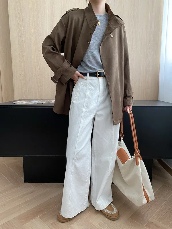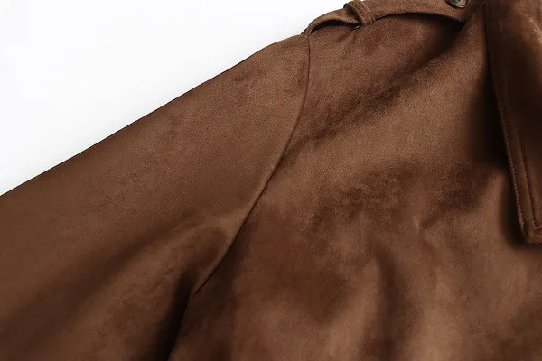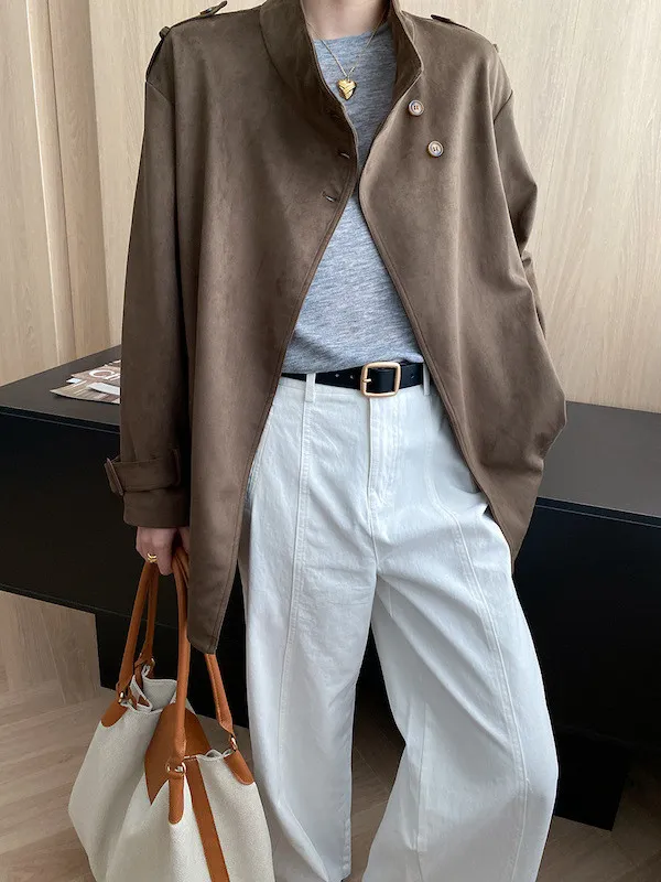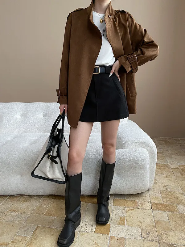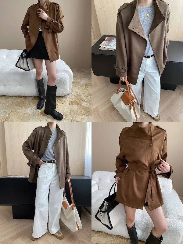 英倫氣質 仿麂皮絨立領收腰風衣外套 2色