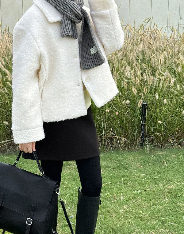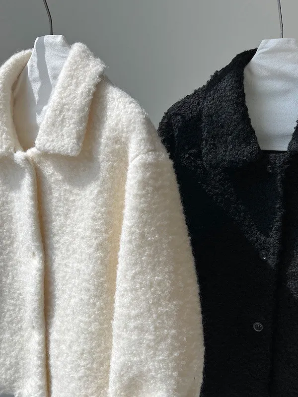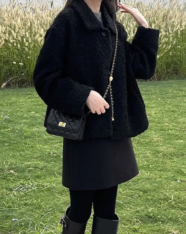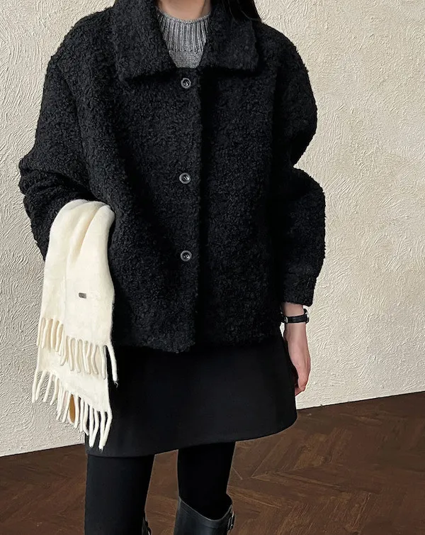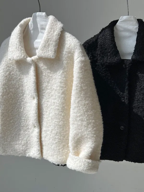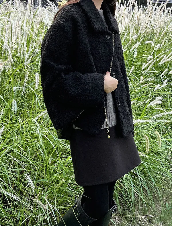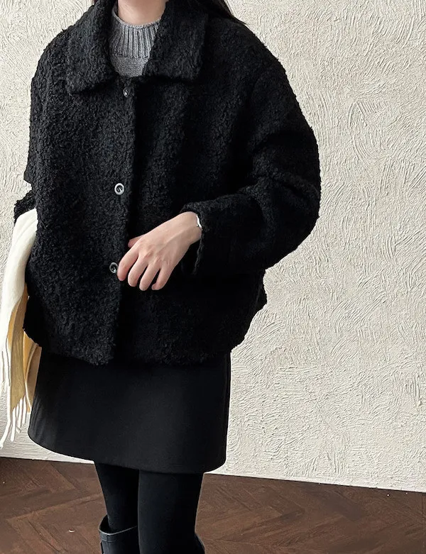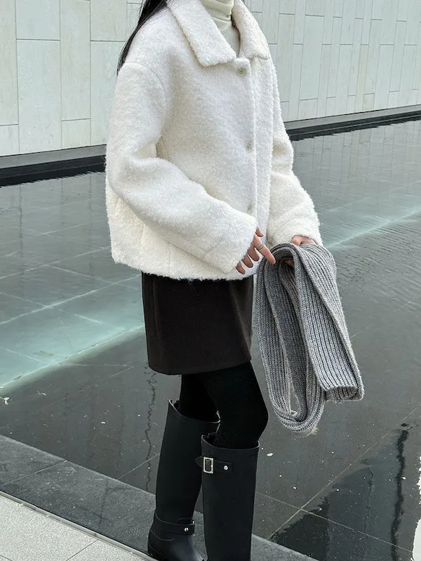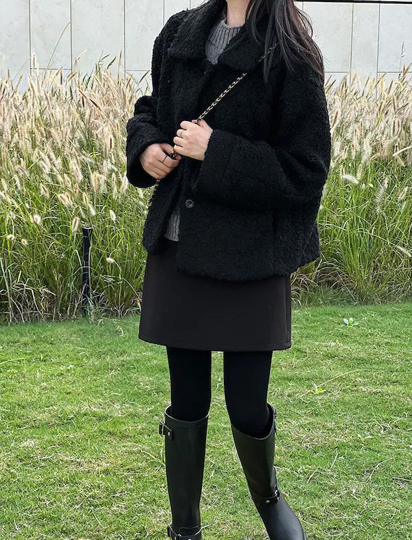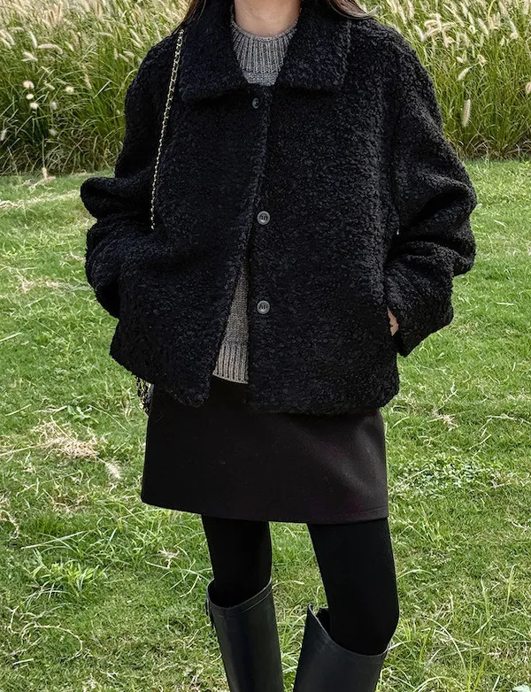 低奢溫柔感!羊羔毛翻領短版外套 2色