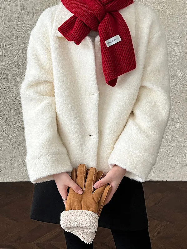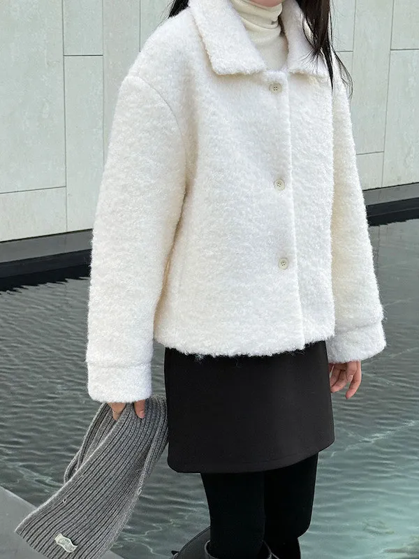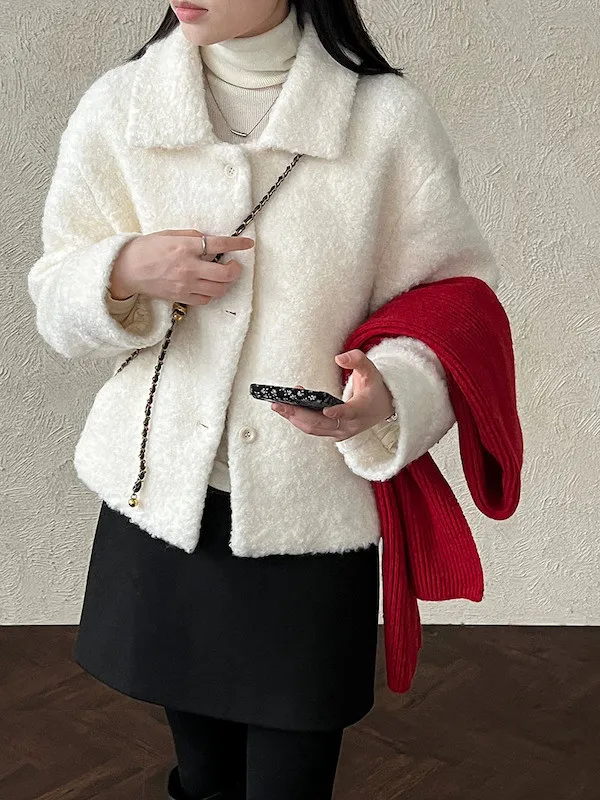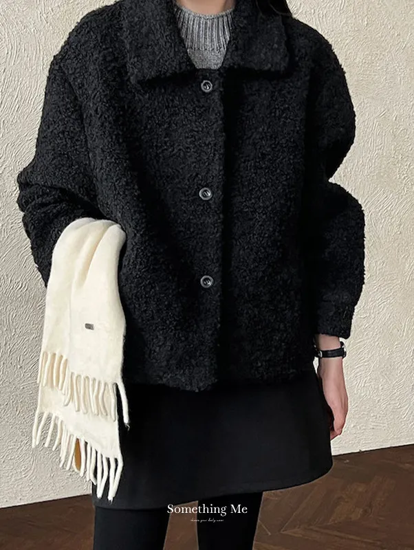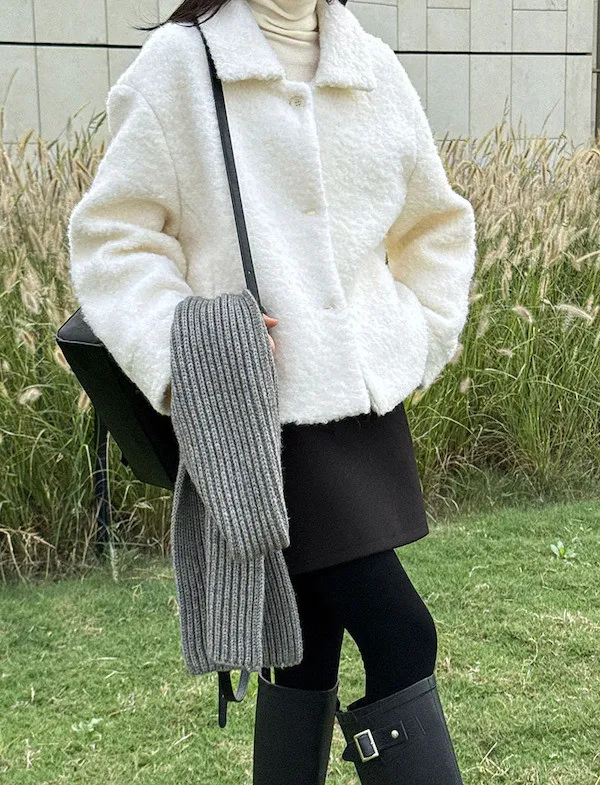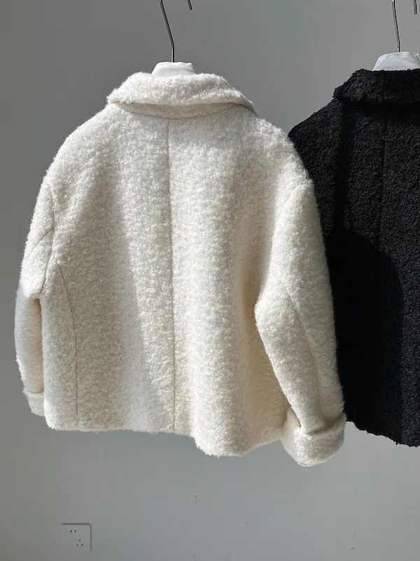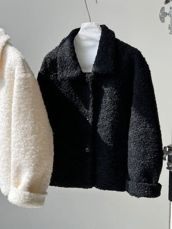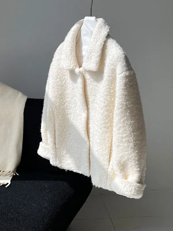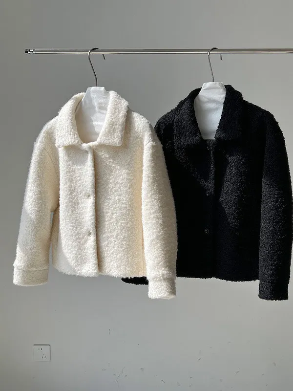 低奢溫柔感!羊羔毛翻領短版外套 2色