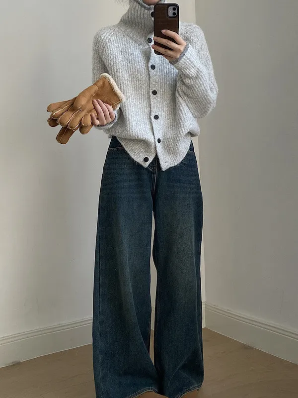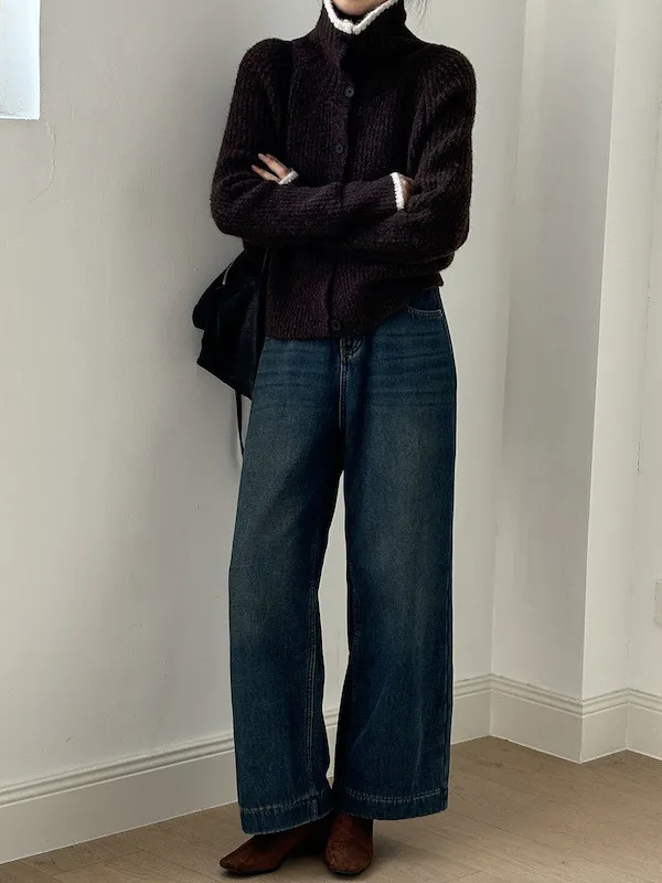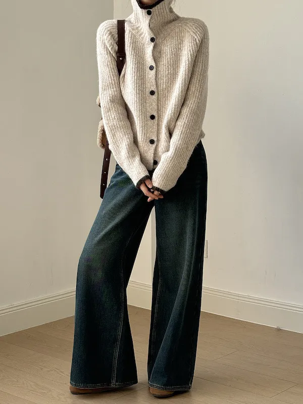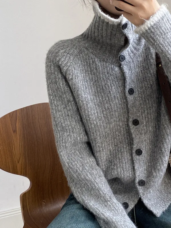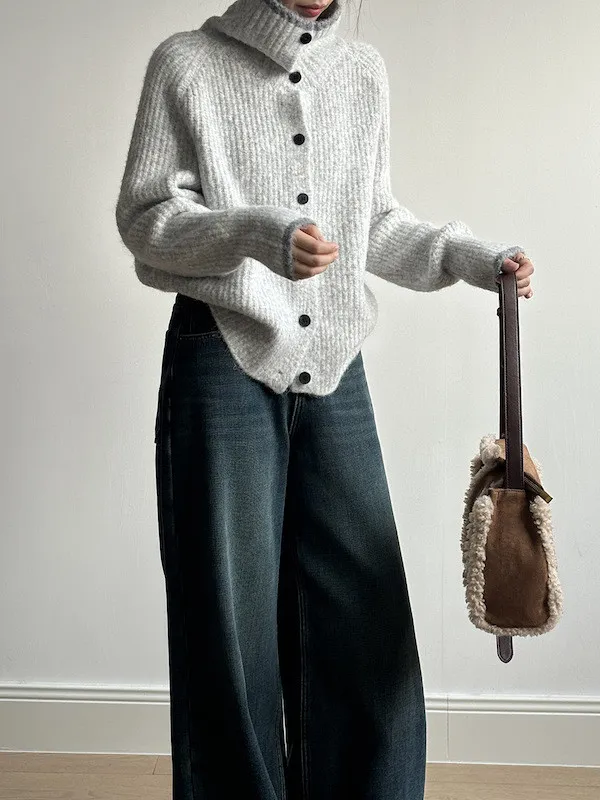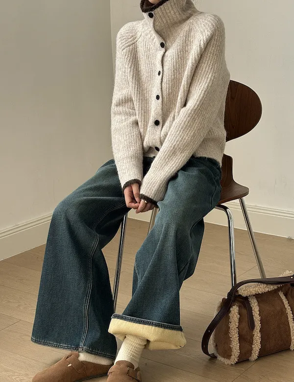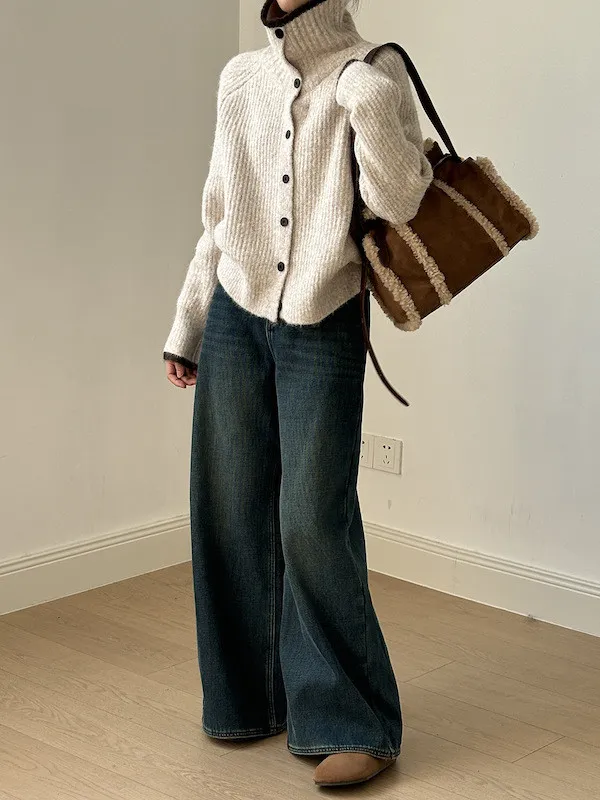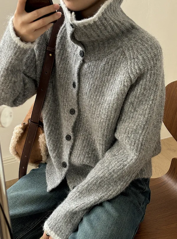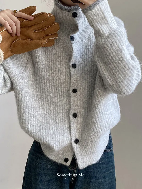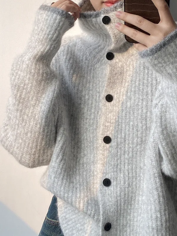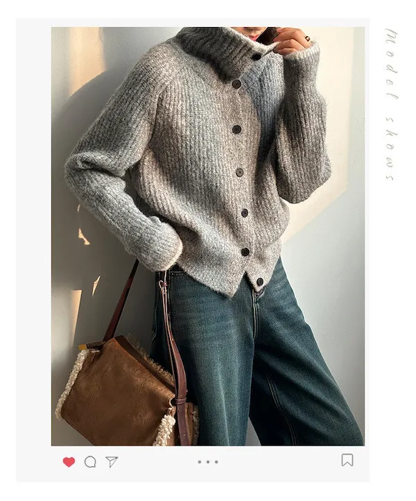 柔感絮語 撞色翻領單排扣針織毛衣外套 4色