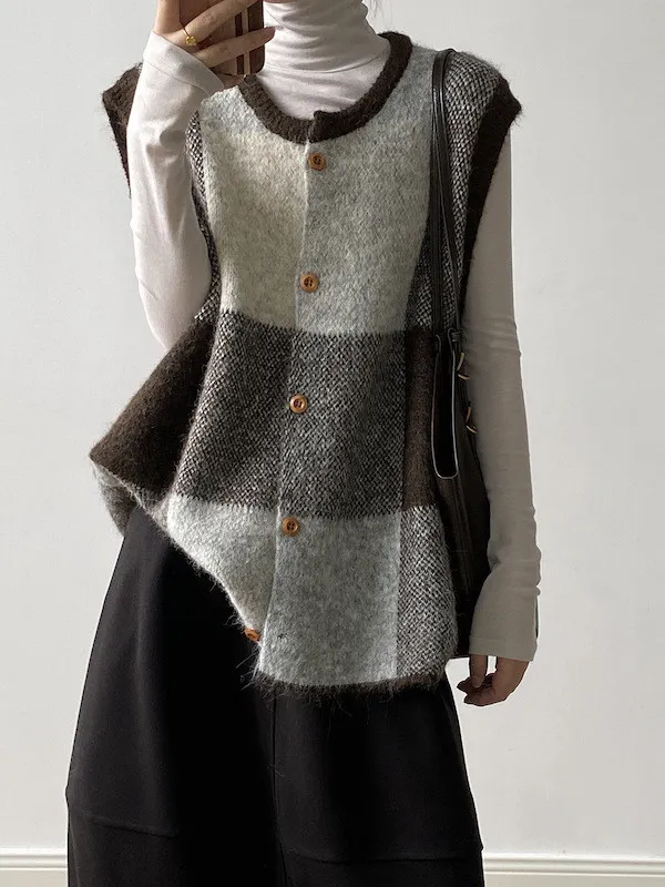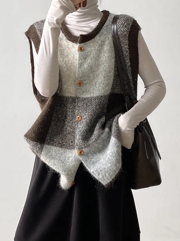 你可以放大或縮小圓領搭配木質扣子很有溫度感