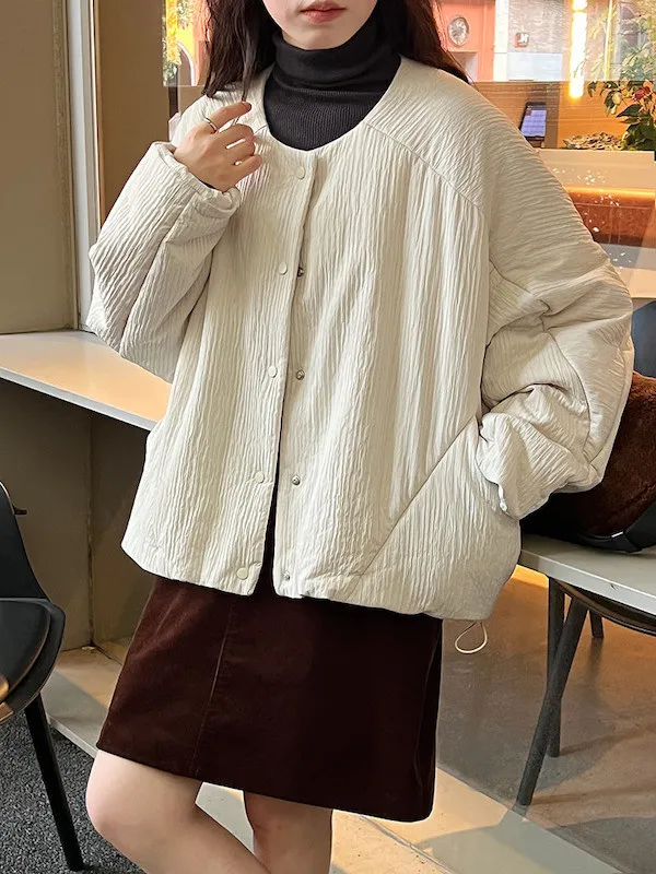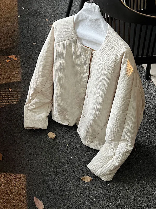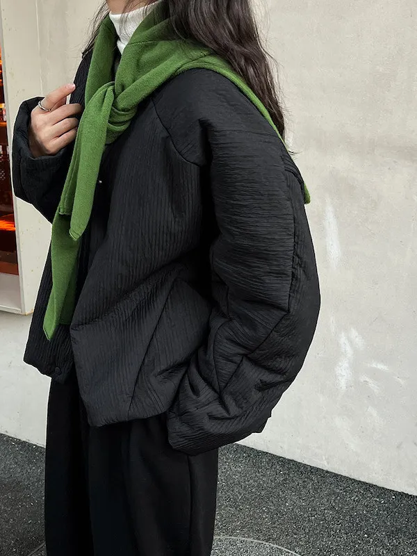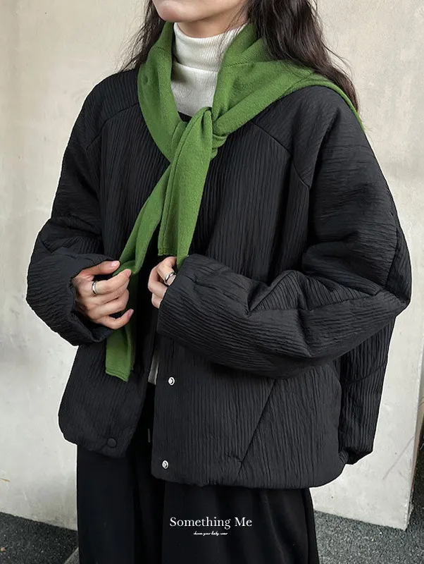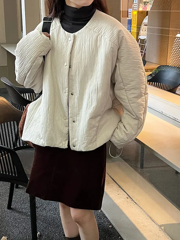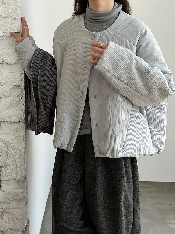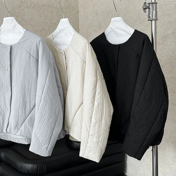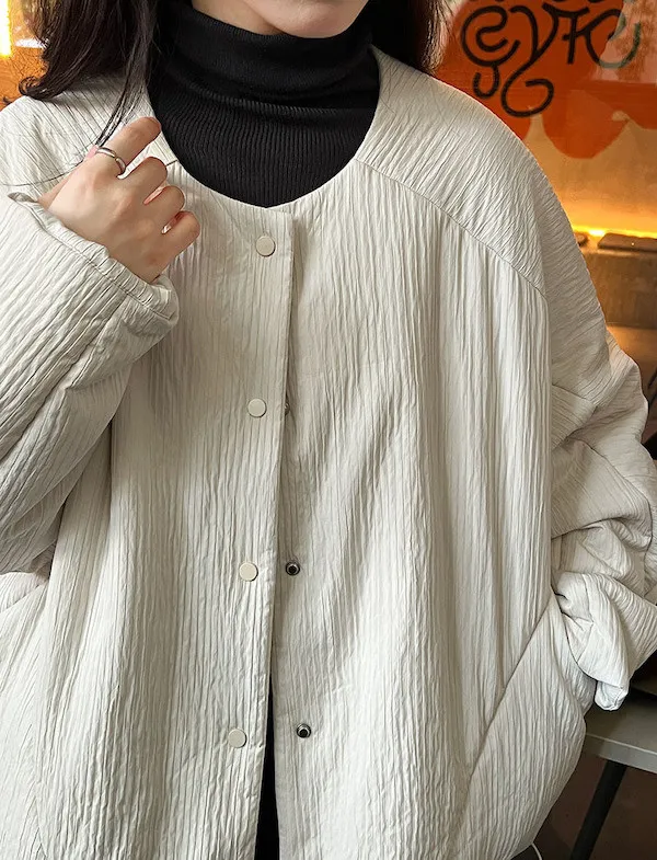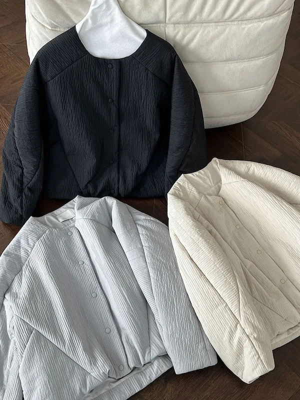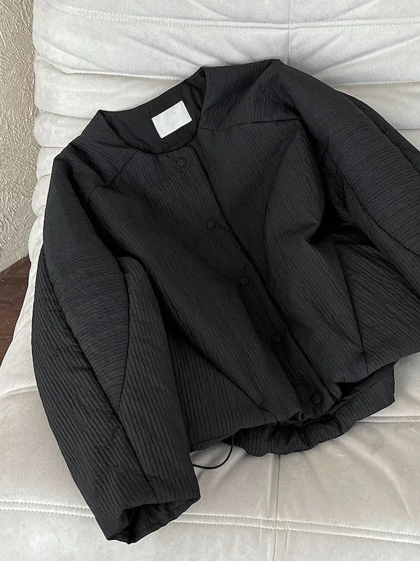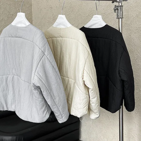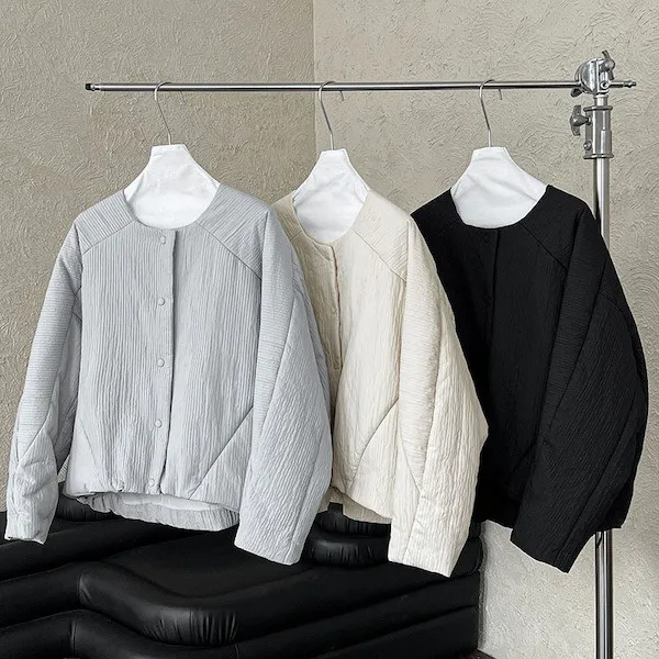 溫柔包覆 圓領抽繩短版鋪棉外套 3色