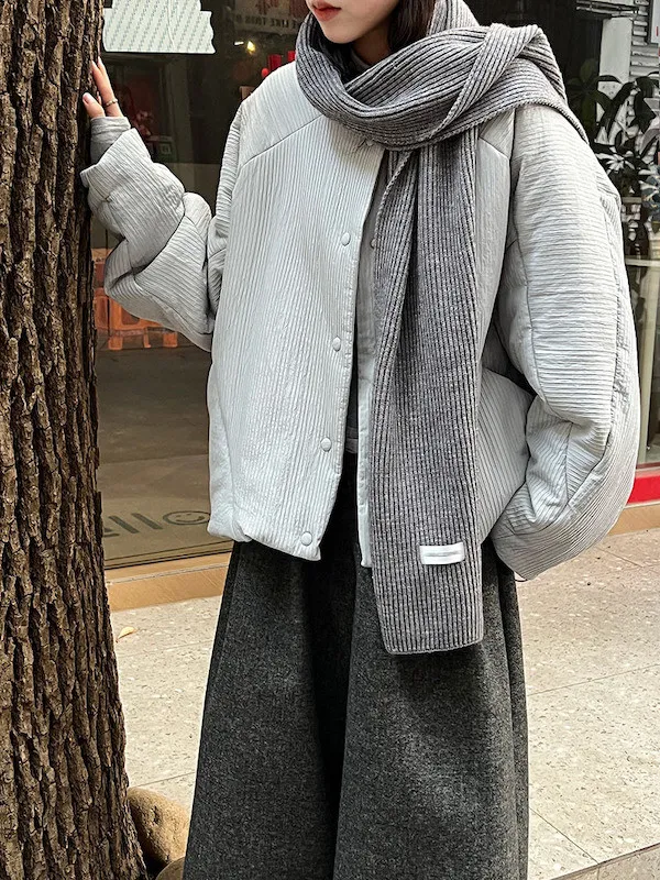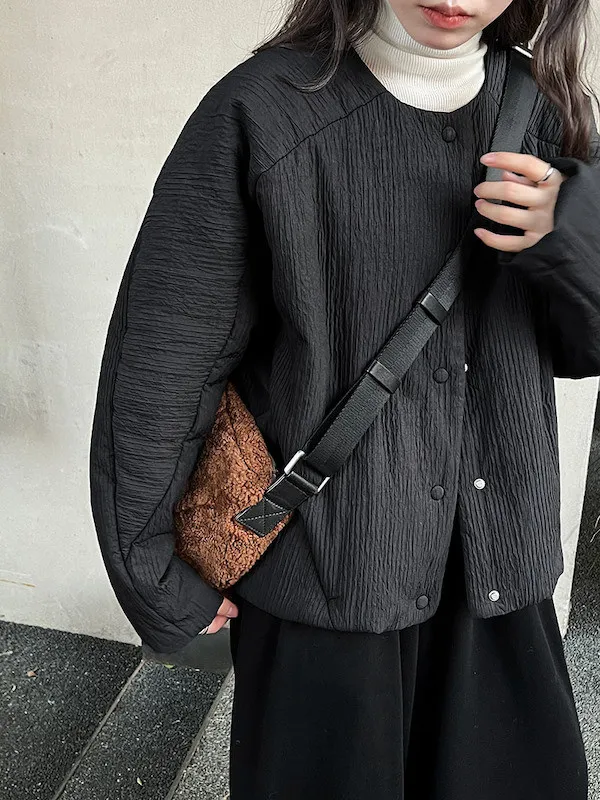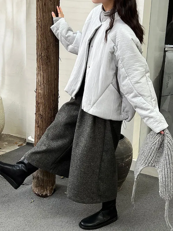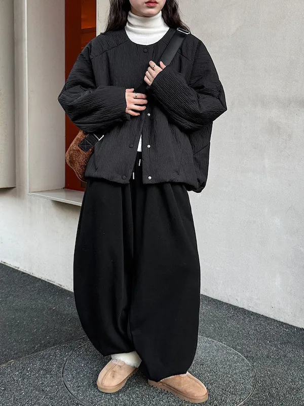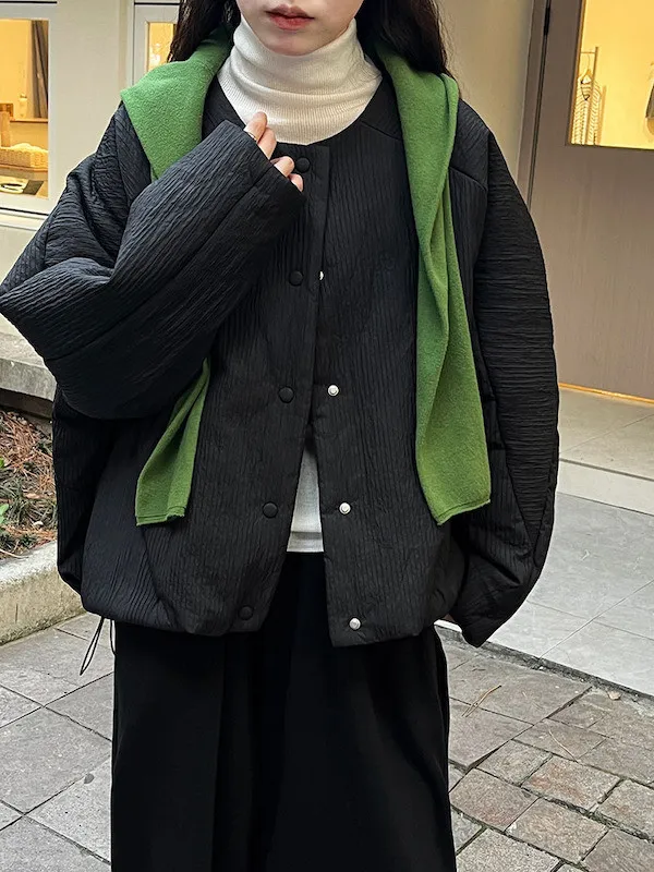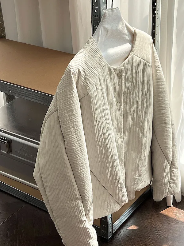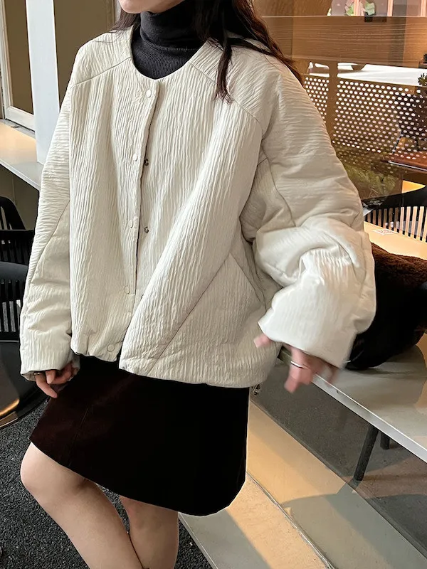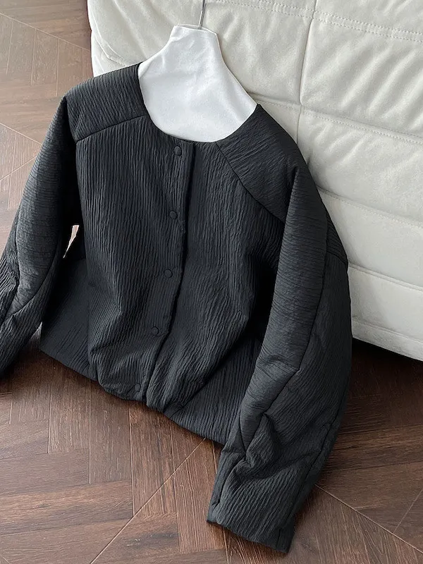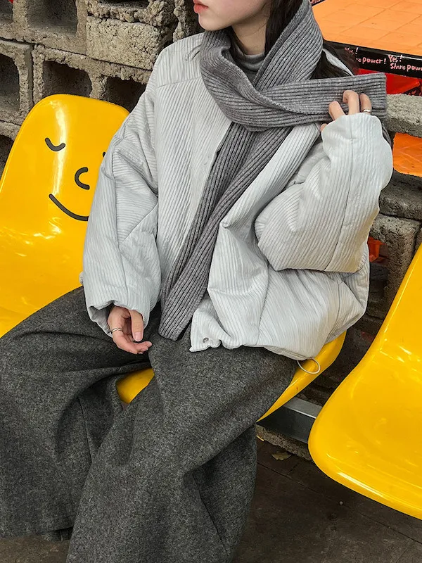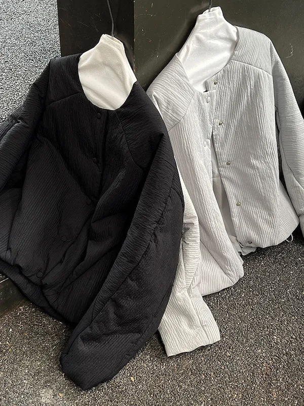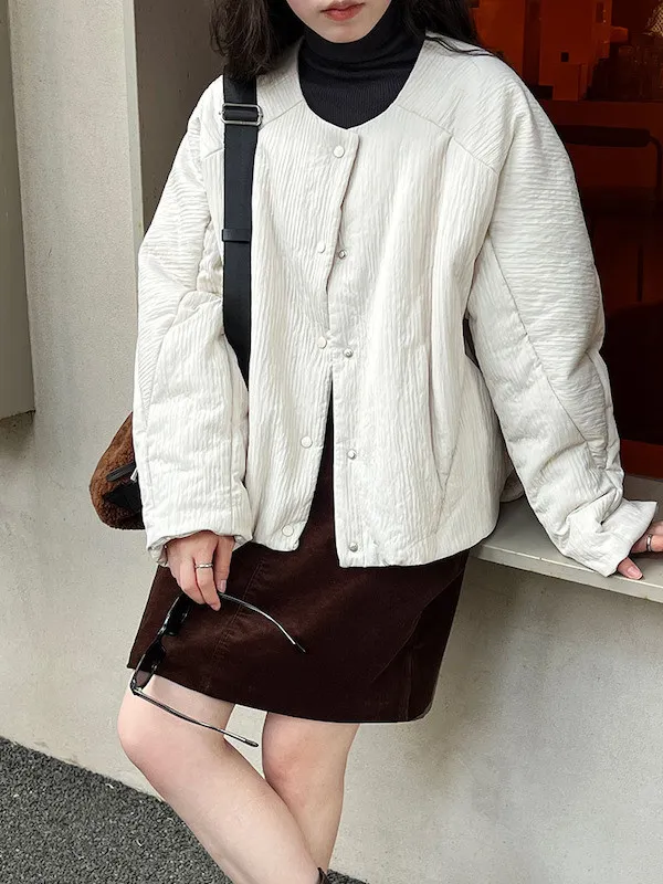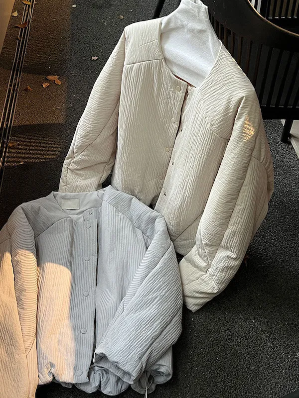 溫柔包覆 圓領抽繩短版鋪棉外套 3色