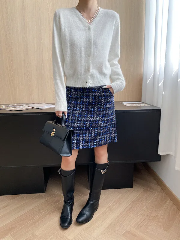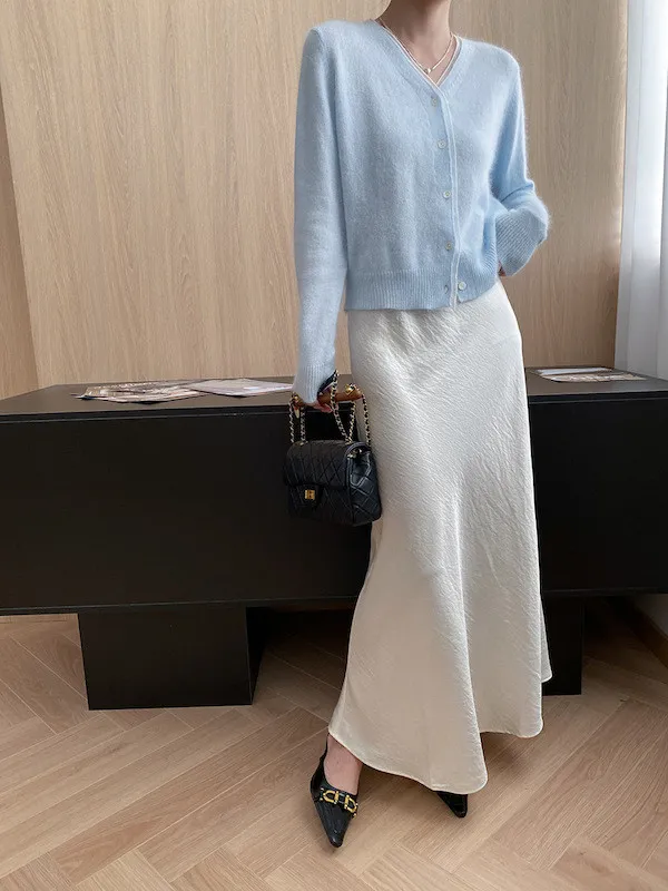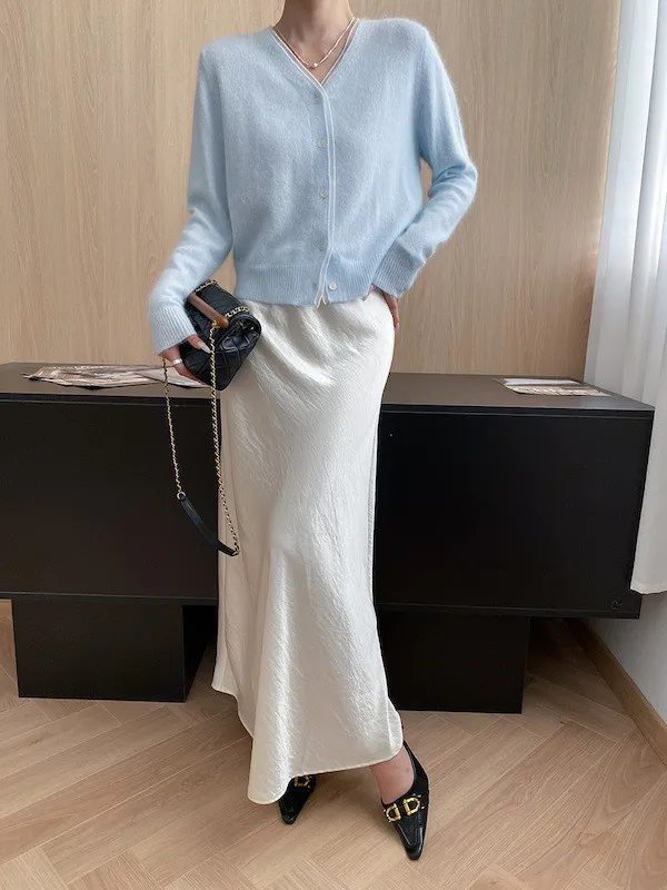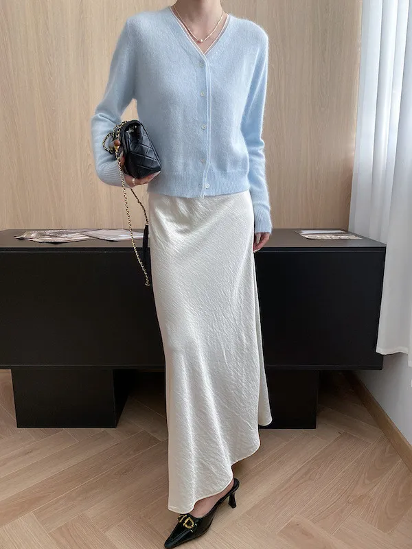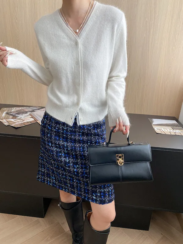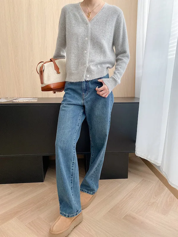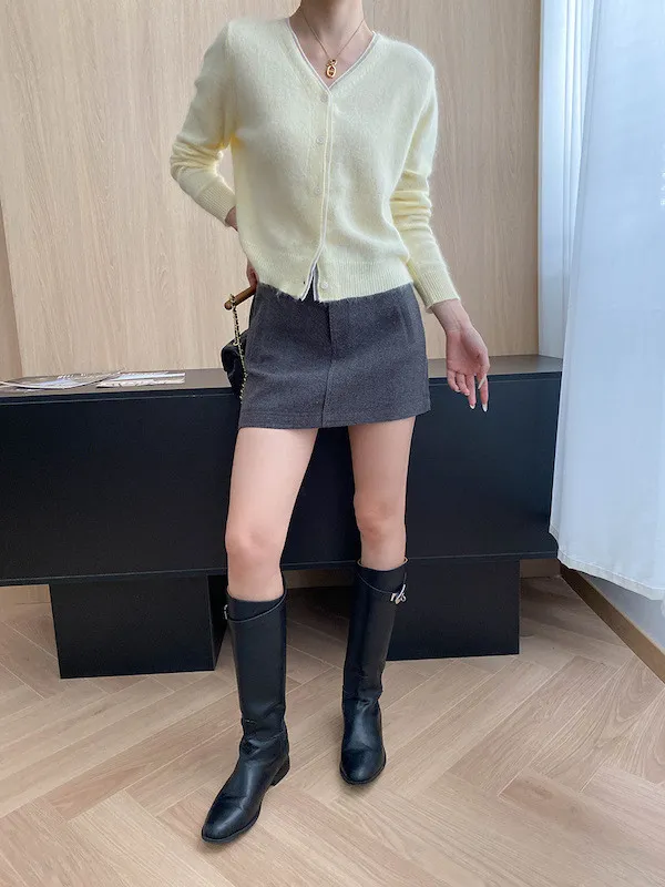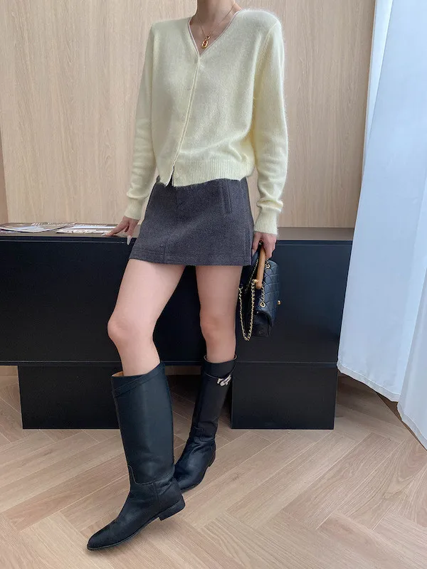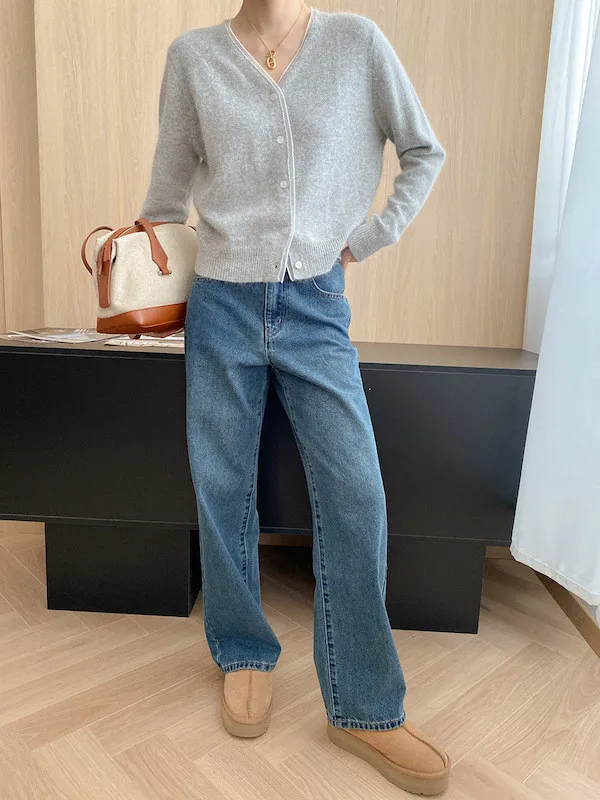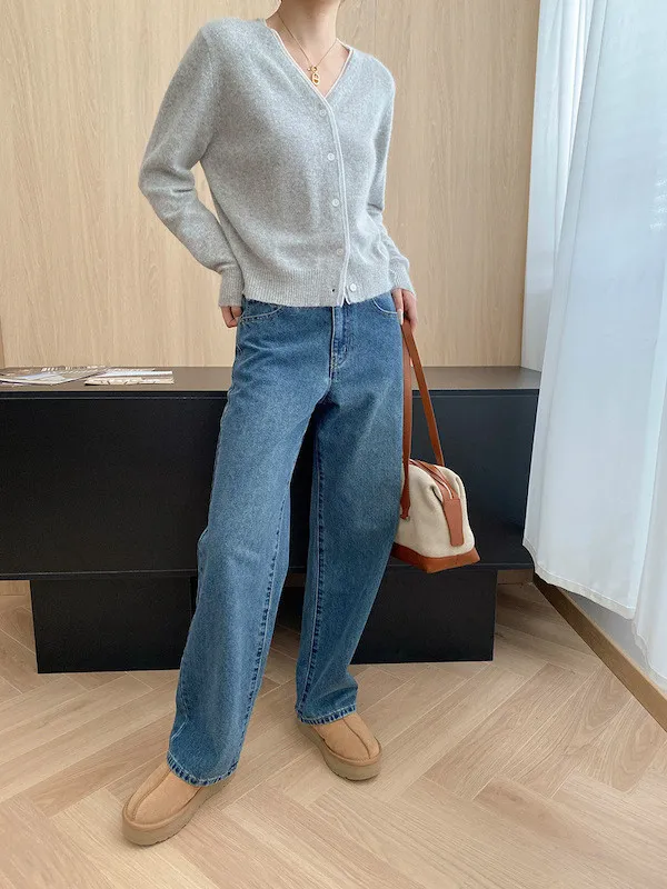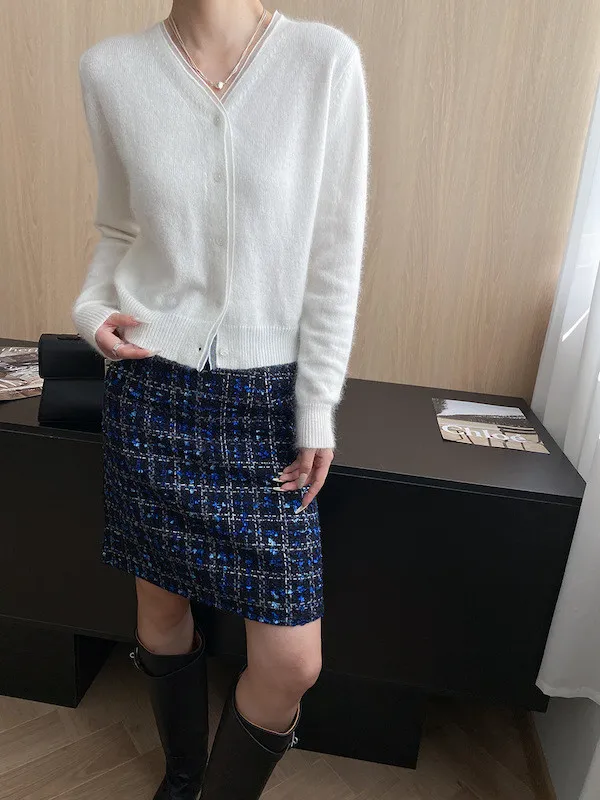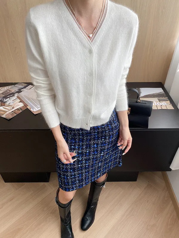 溫柔質感 蕾絲拼接V領浣熊絨針織開衫 5色
