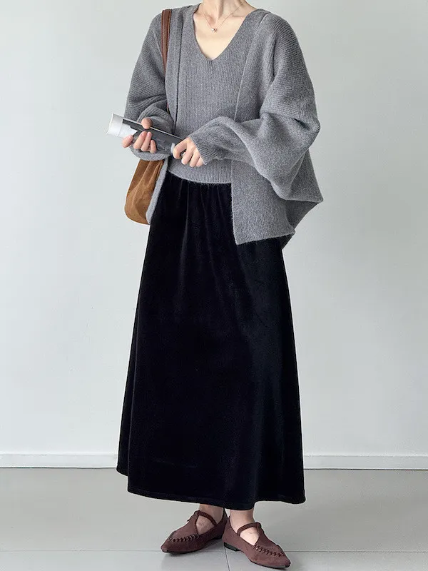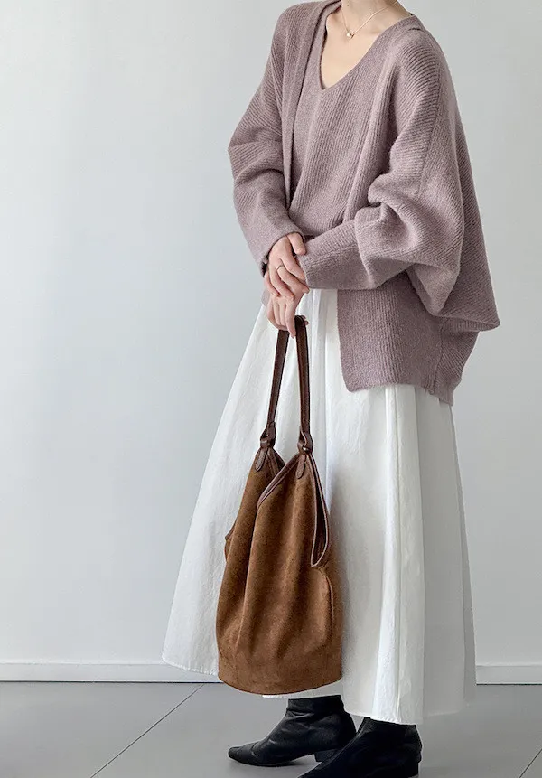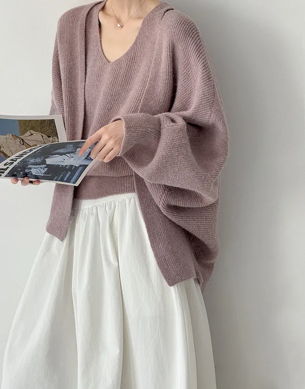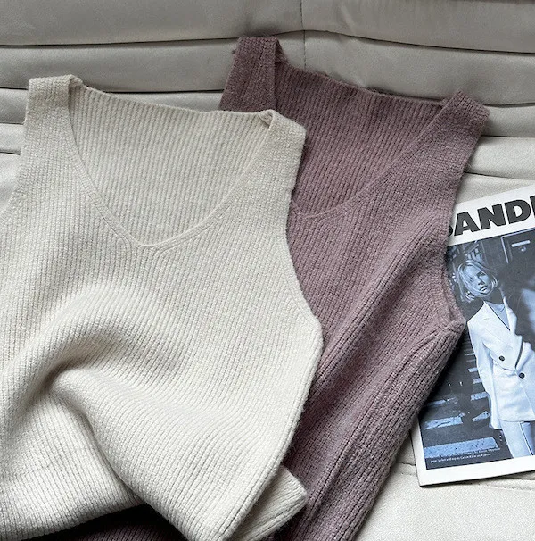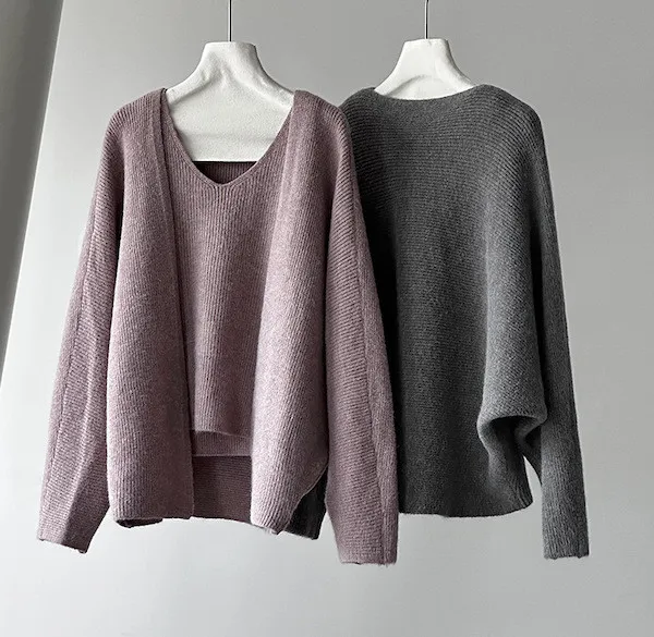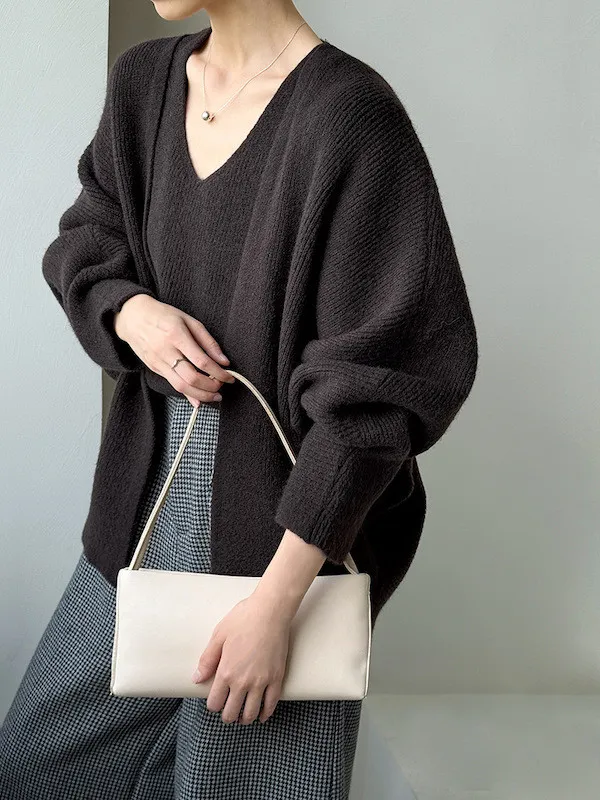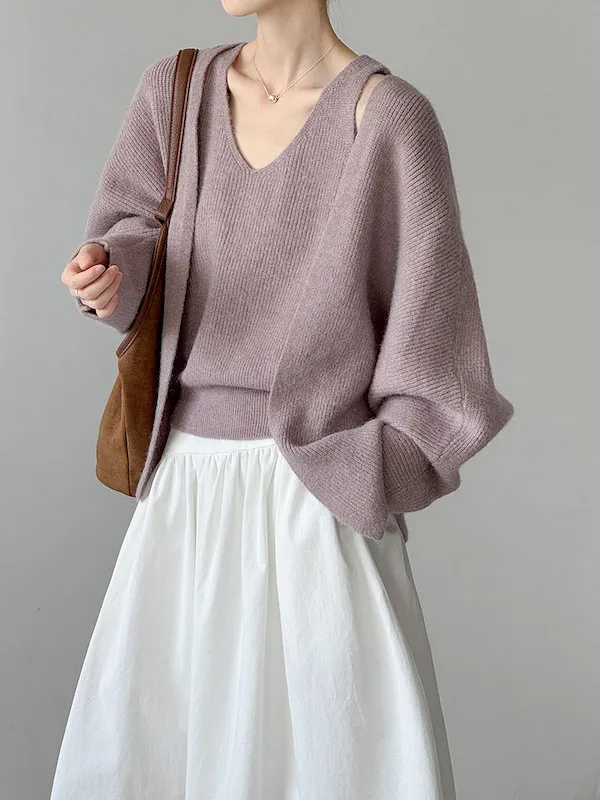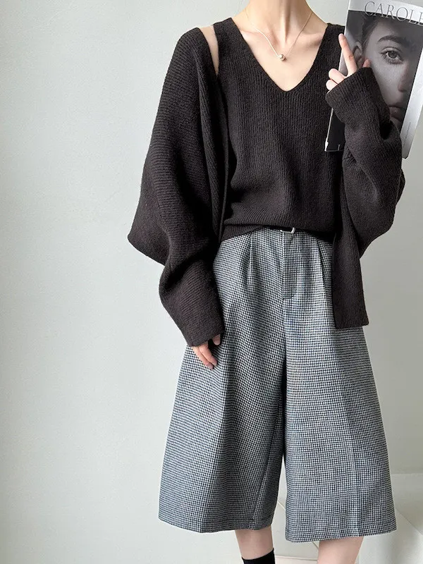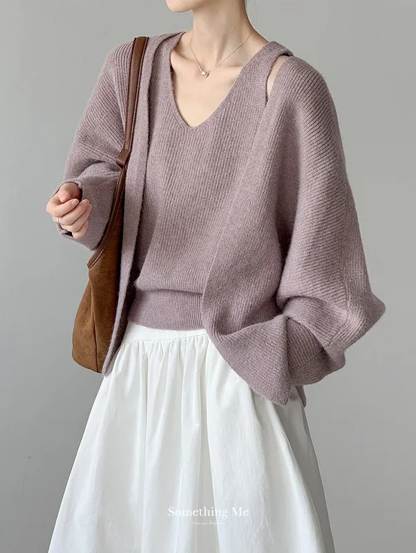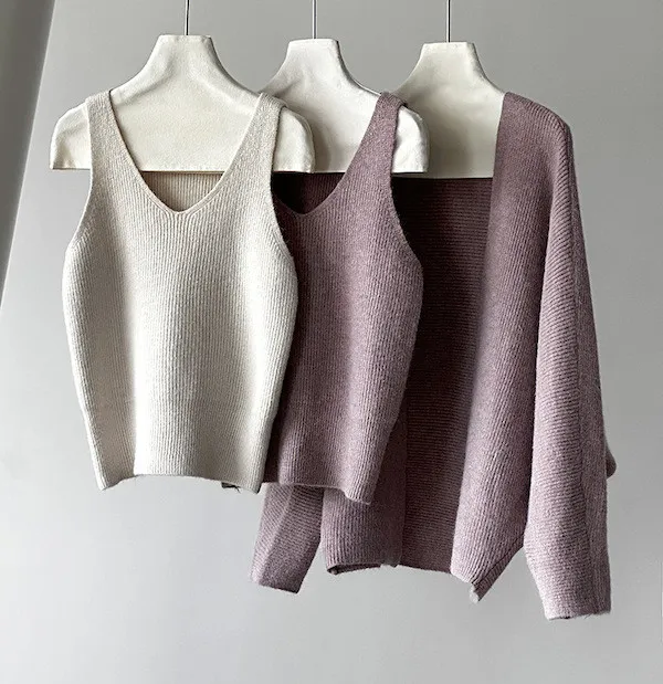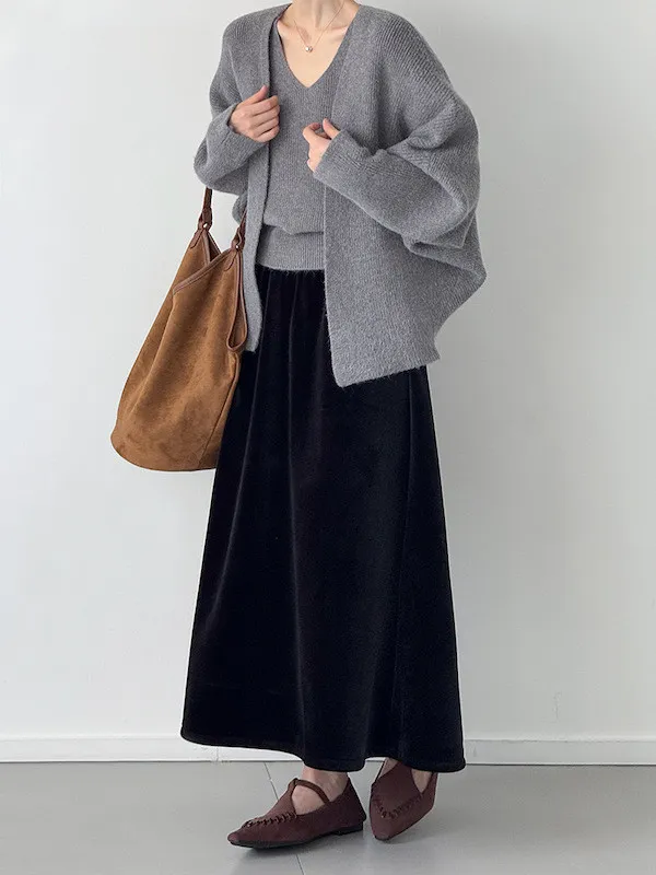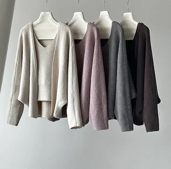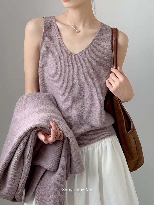 雲朵觸感 慵懶V領針織套組(外套+針織背心) 4色
