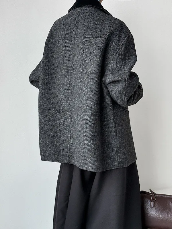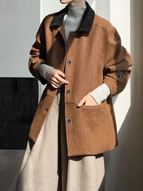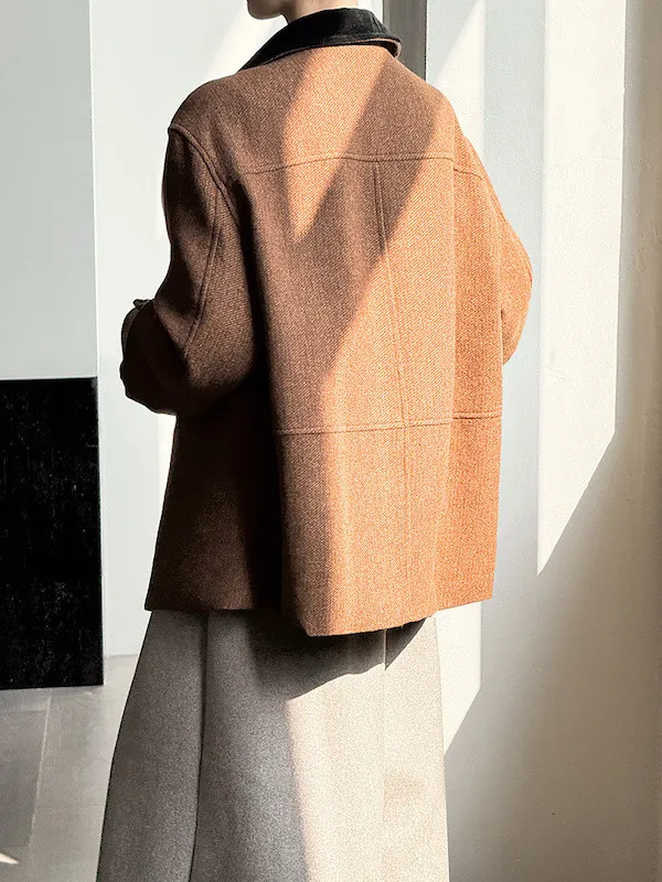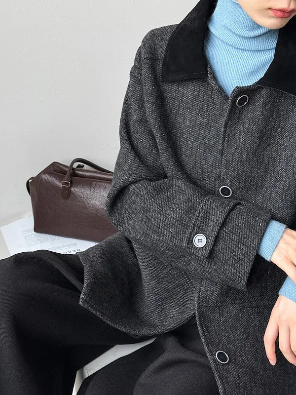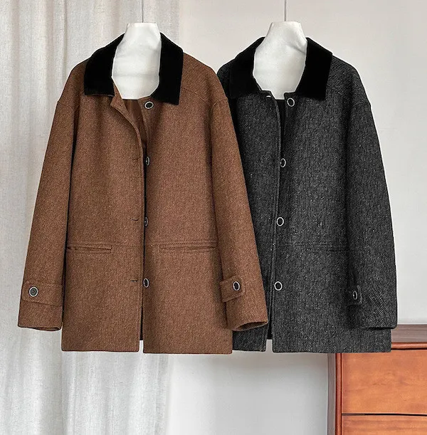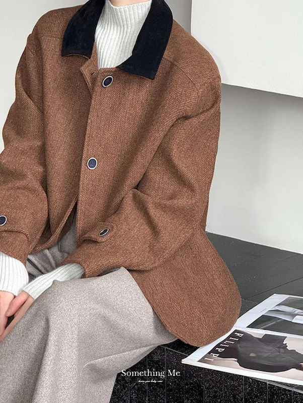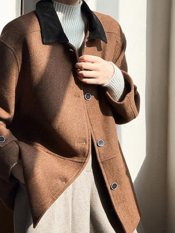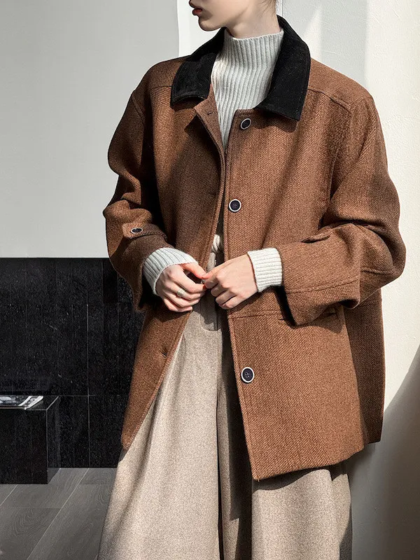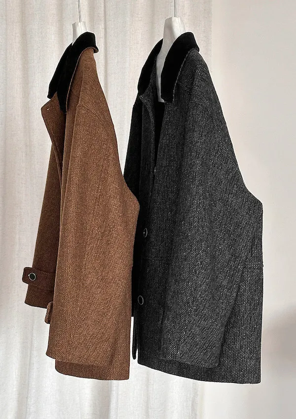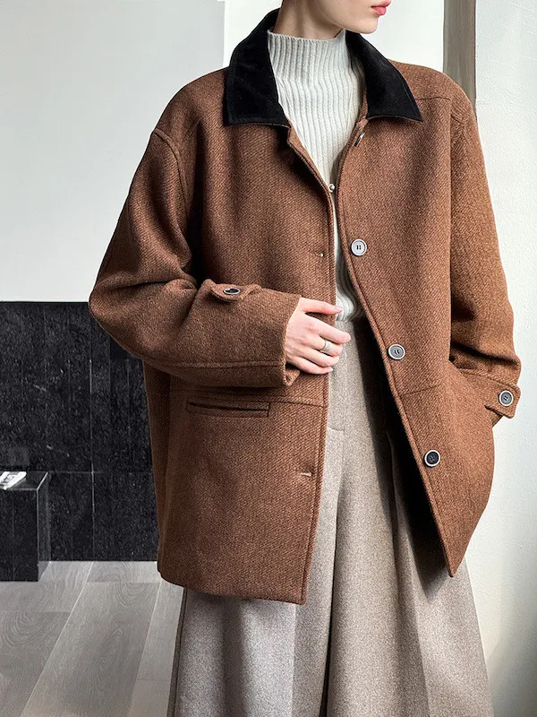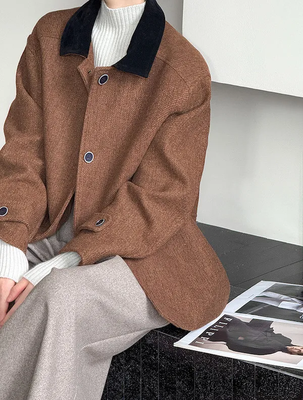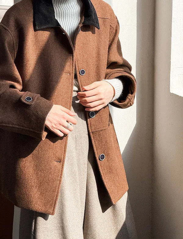 復古巴黎 撞色翻領羊毛布萊森外套 2色