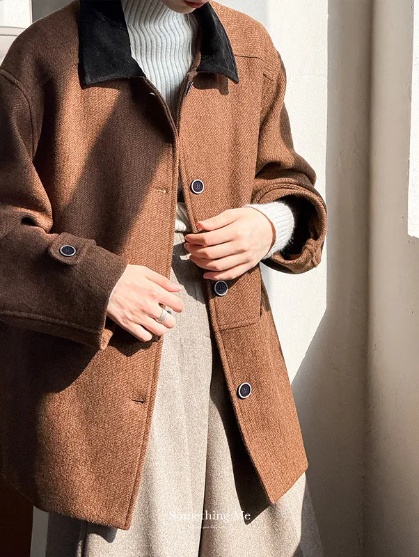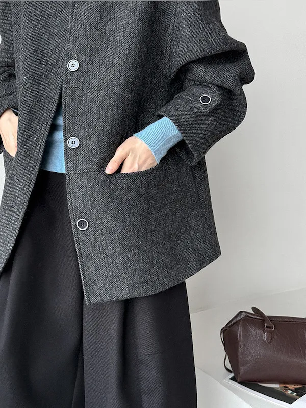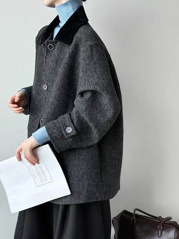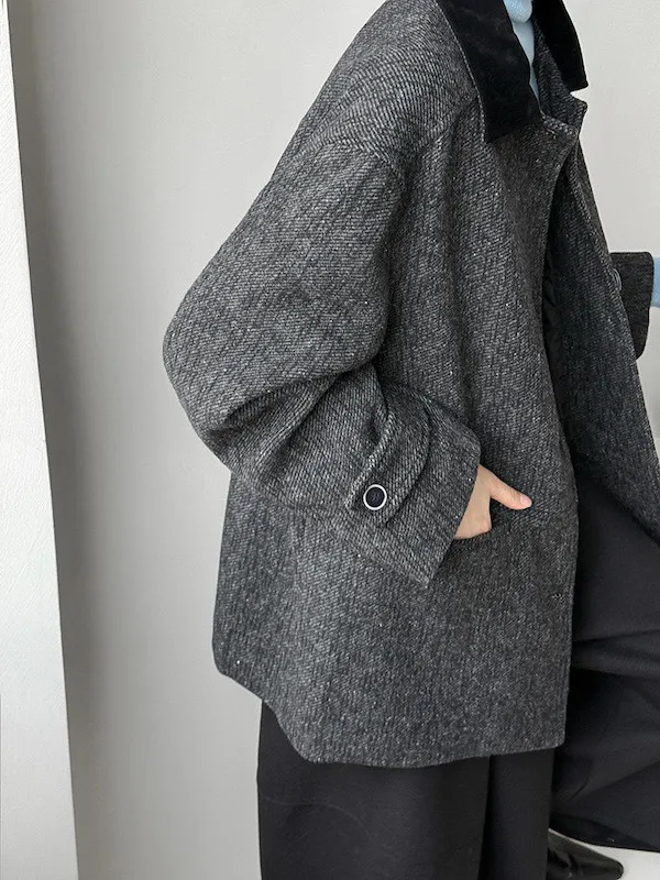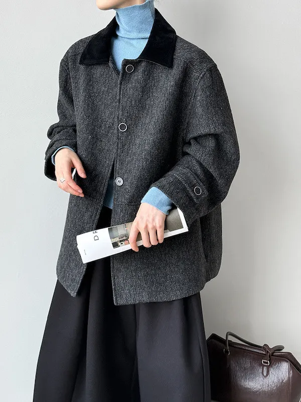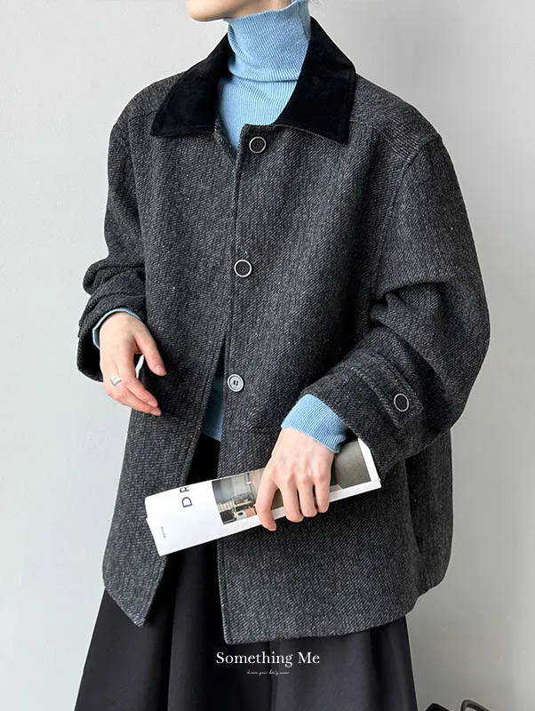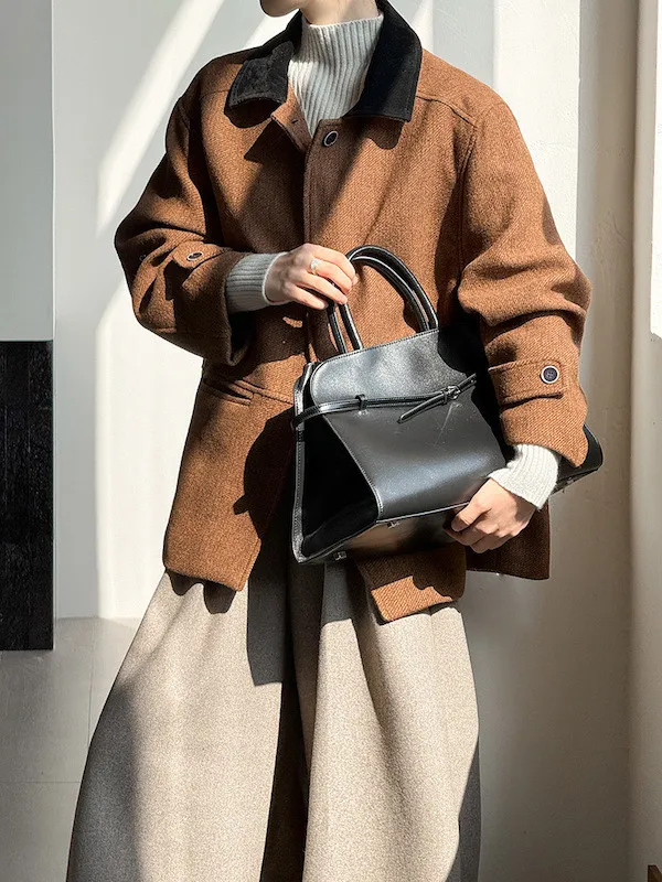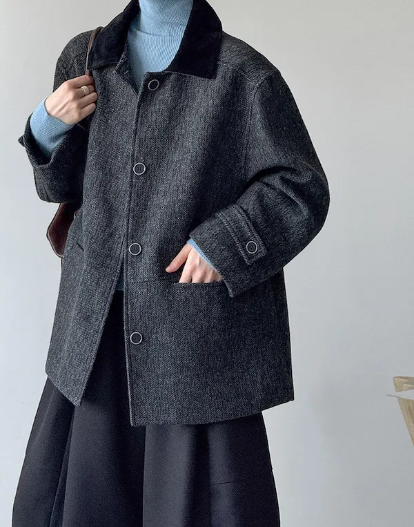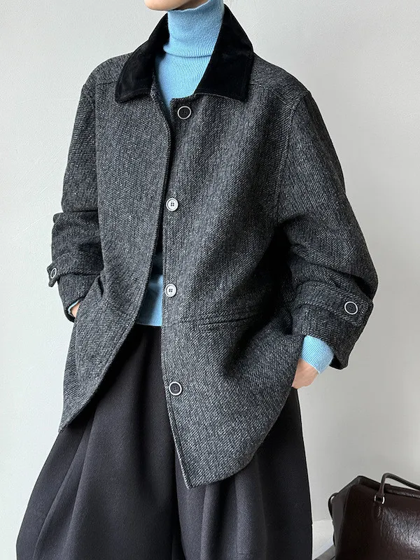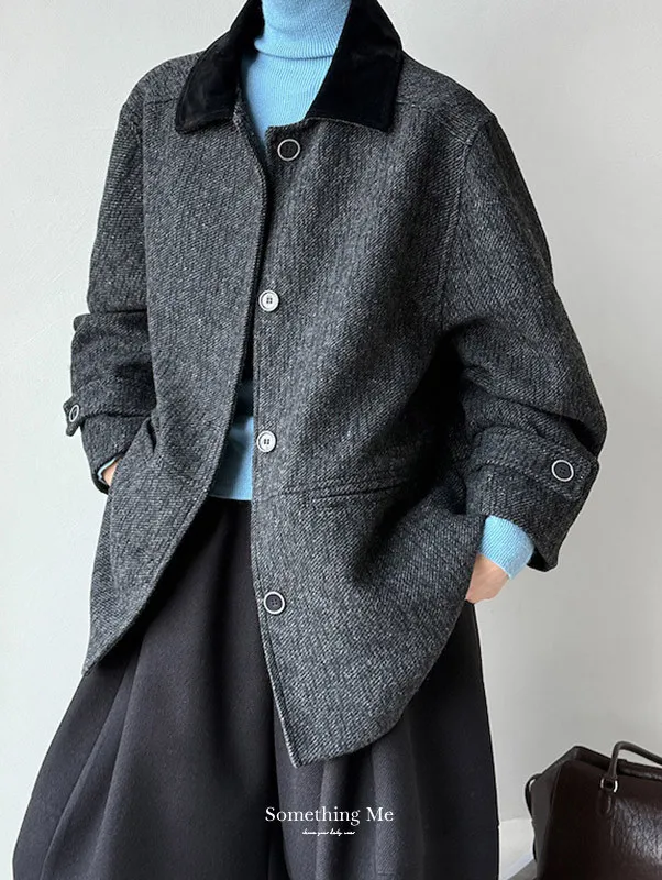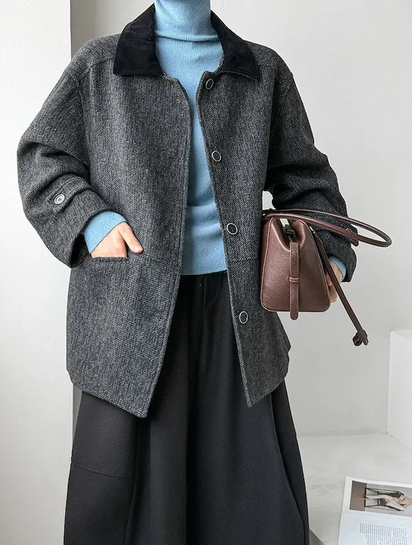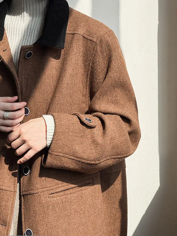 復古巴黎 撞色翻領羊毛布萊森外套 2色