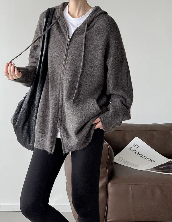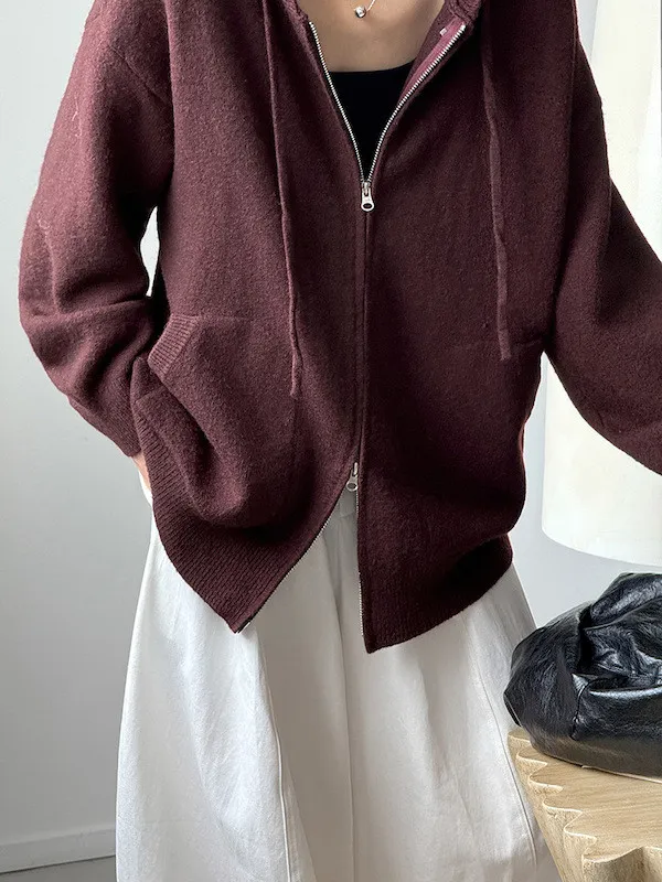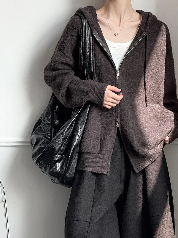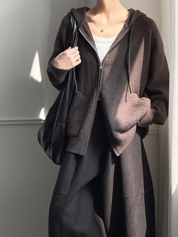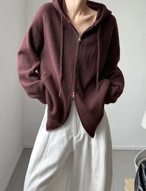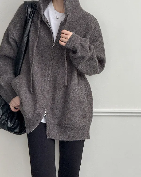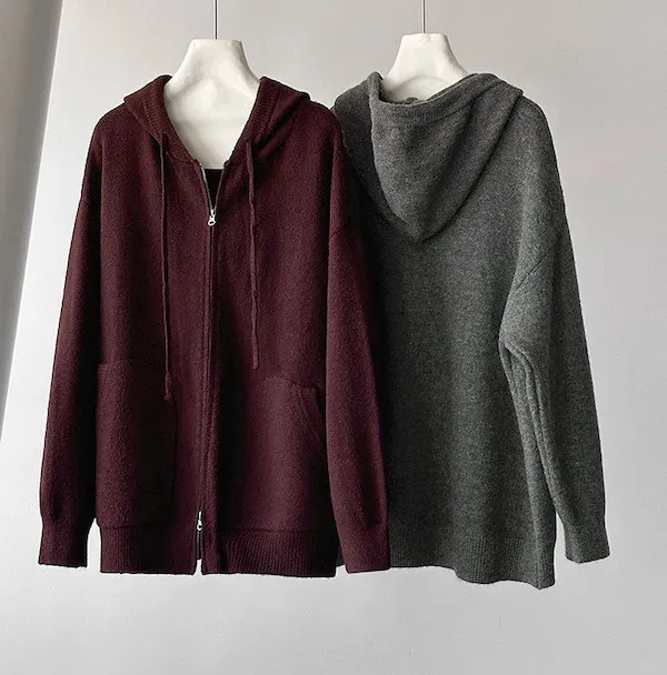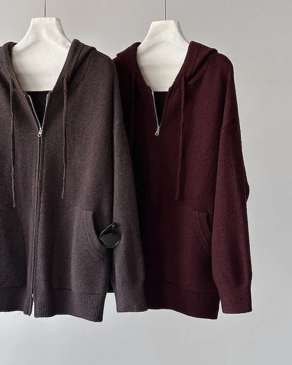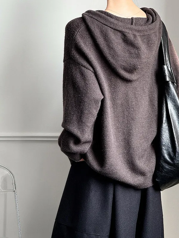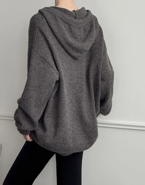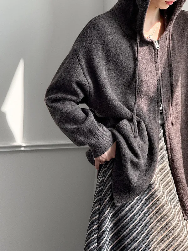 慵懶柔軟綿羊絨針織連帽外套 3色