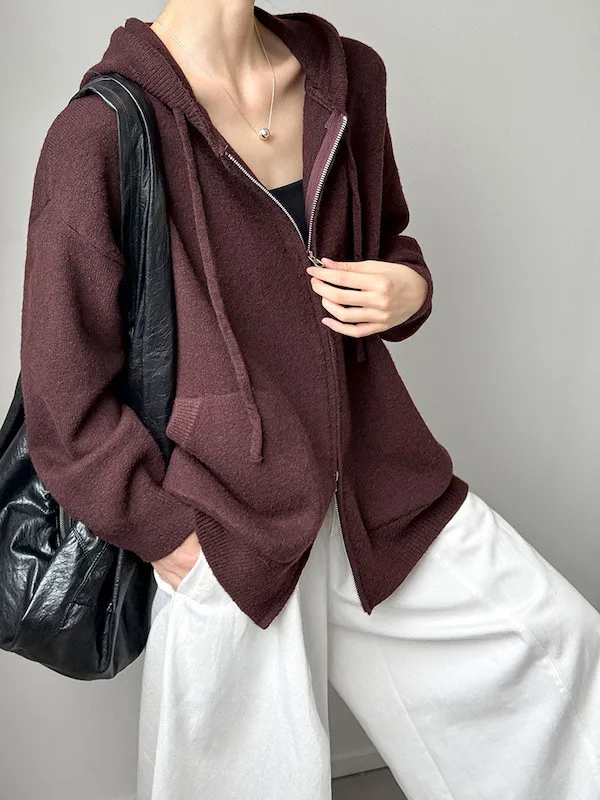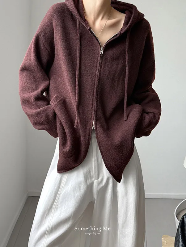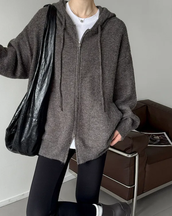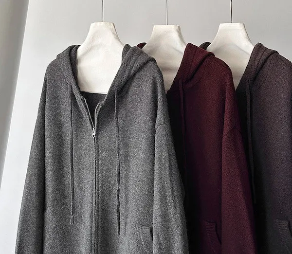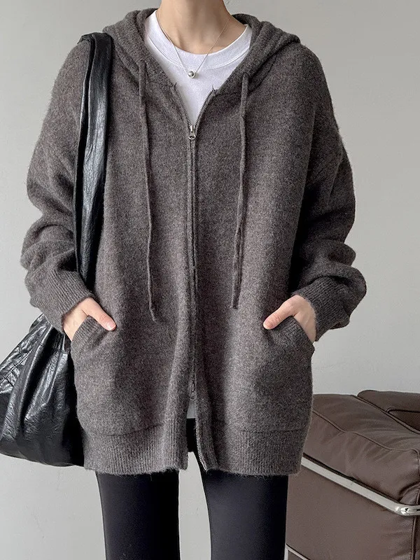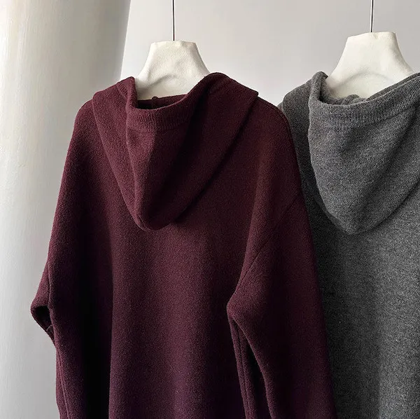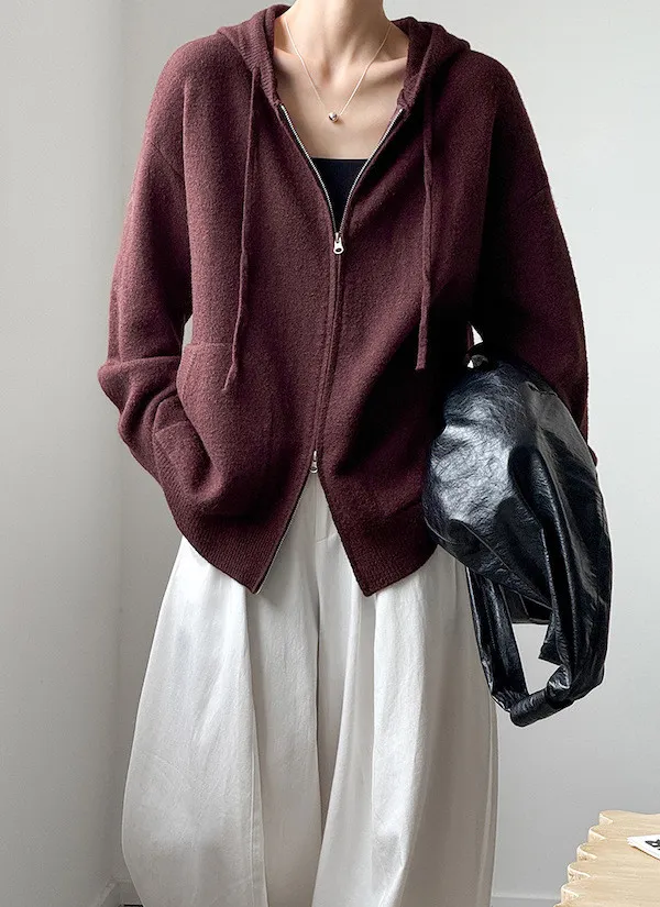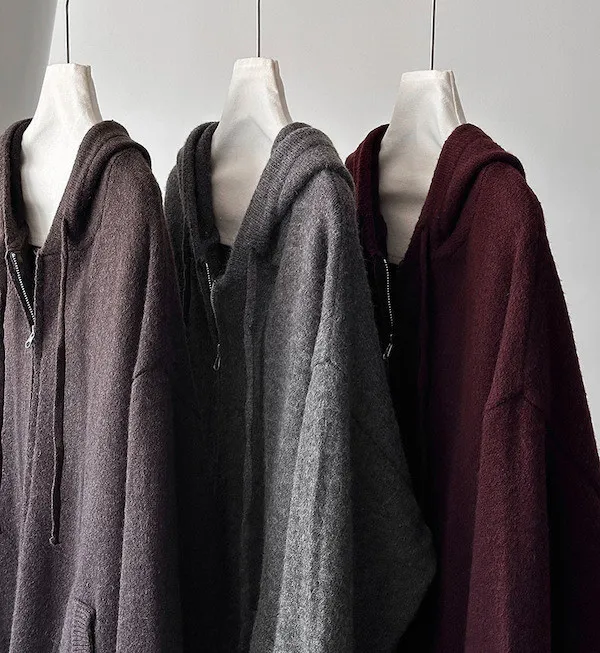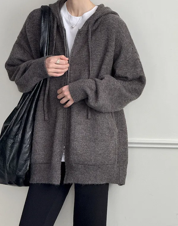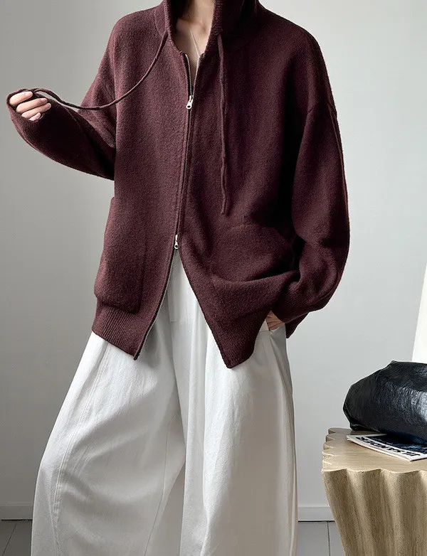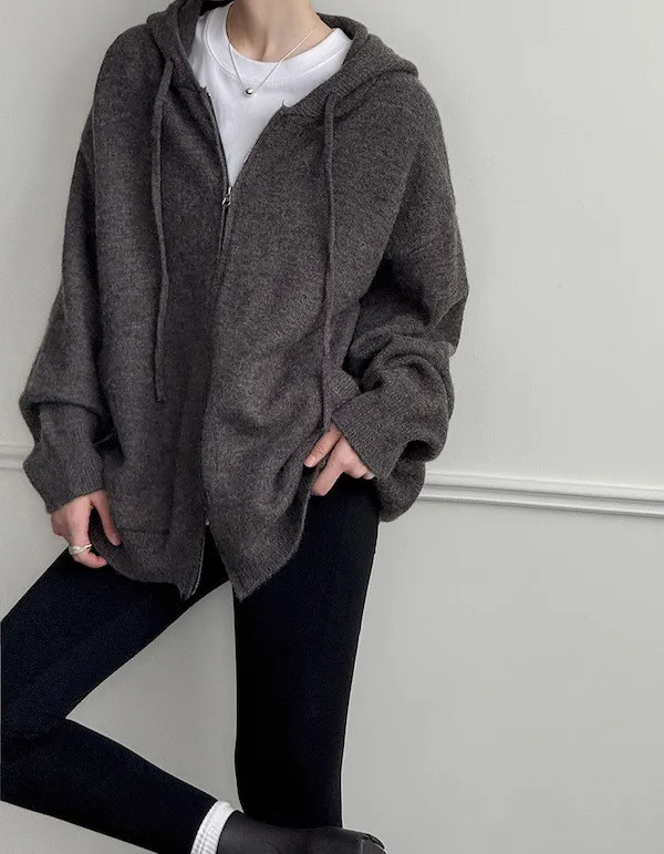 慵懶柔軟綿羊絨針織連帽外套 3色