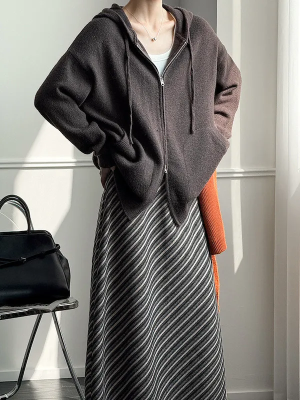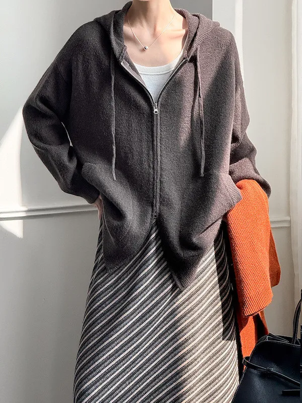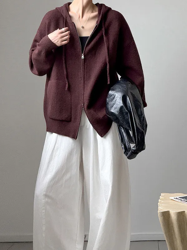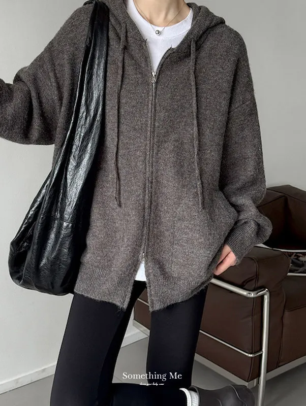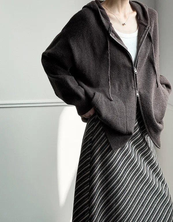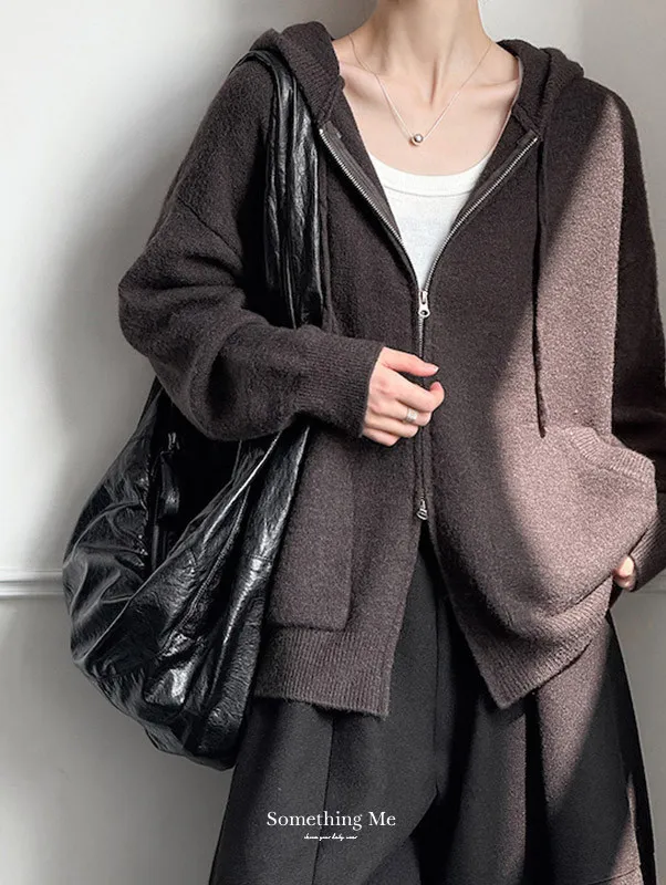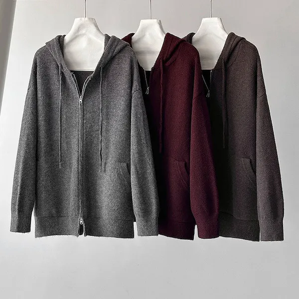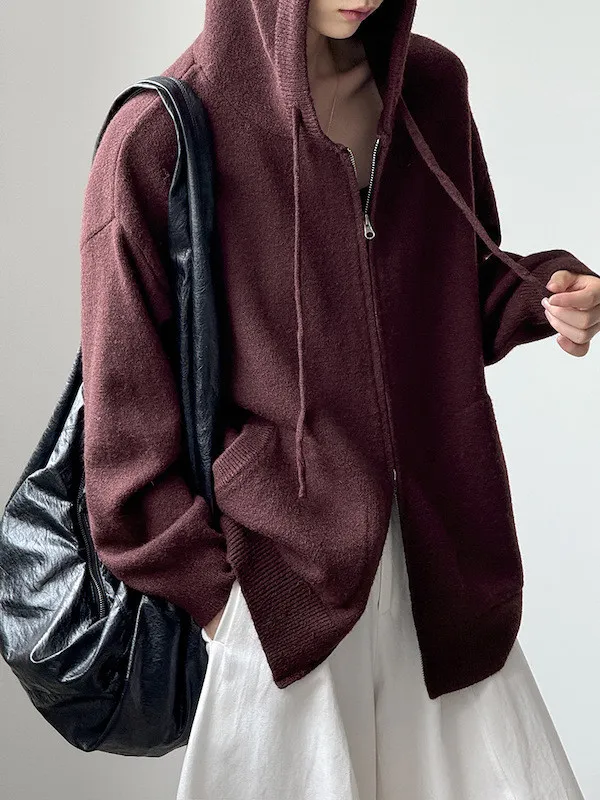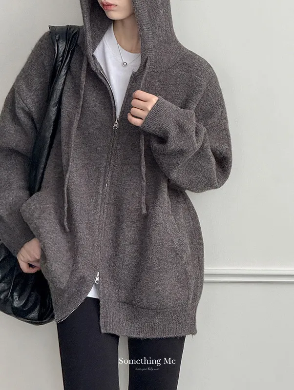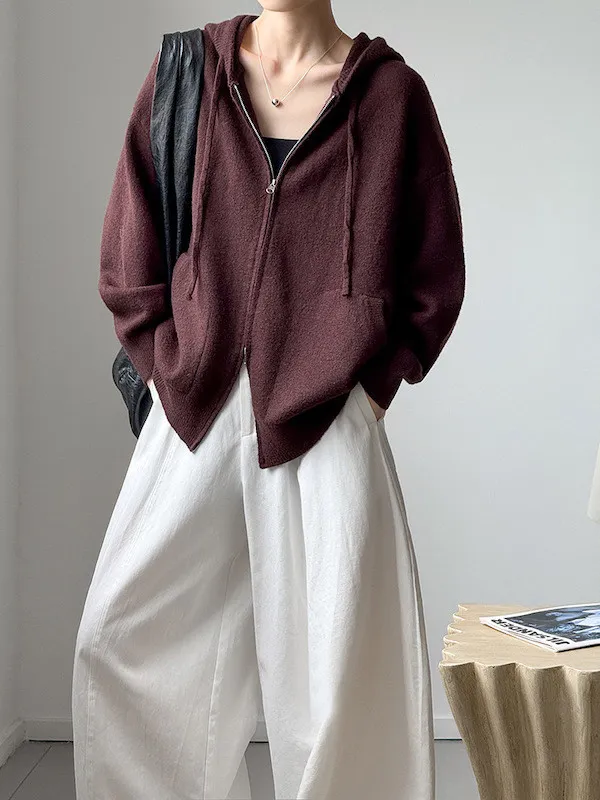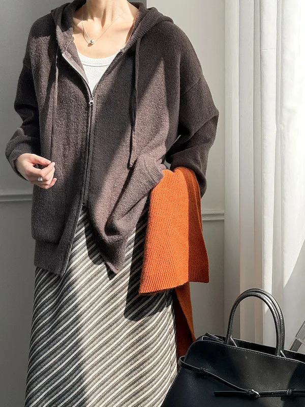 慵懶柔軟綿羊絨針織連帽外套 3色