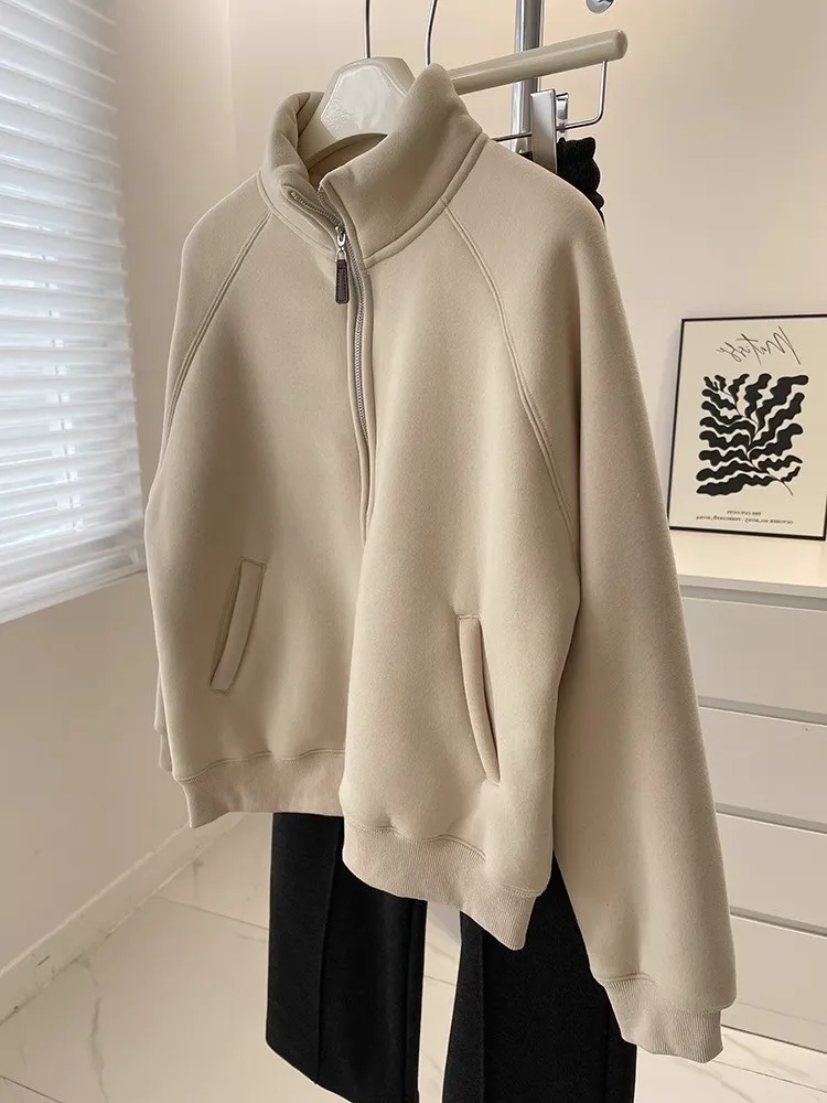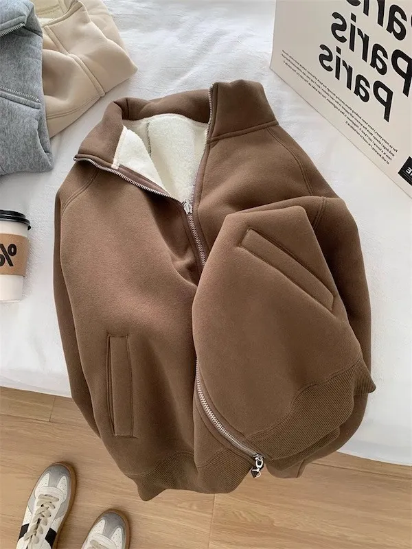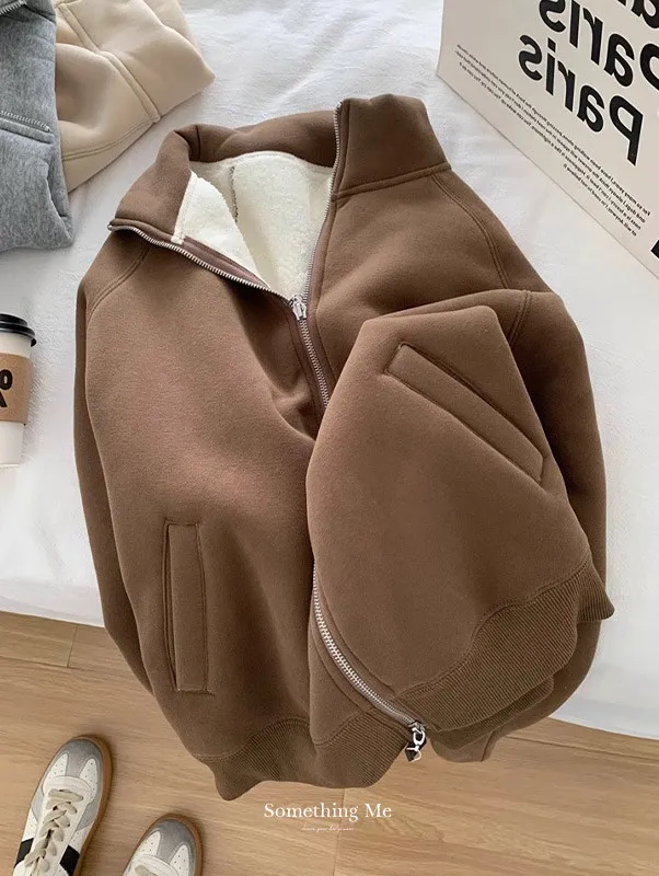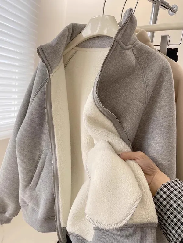 冬季小暖爐!加厚羊羔絨立領拉鍊外套 3色