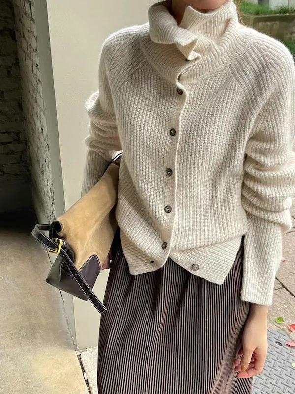 質感靈魂|復古設計感細坑條針織開衫 3色