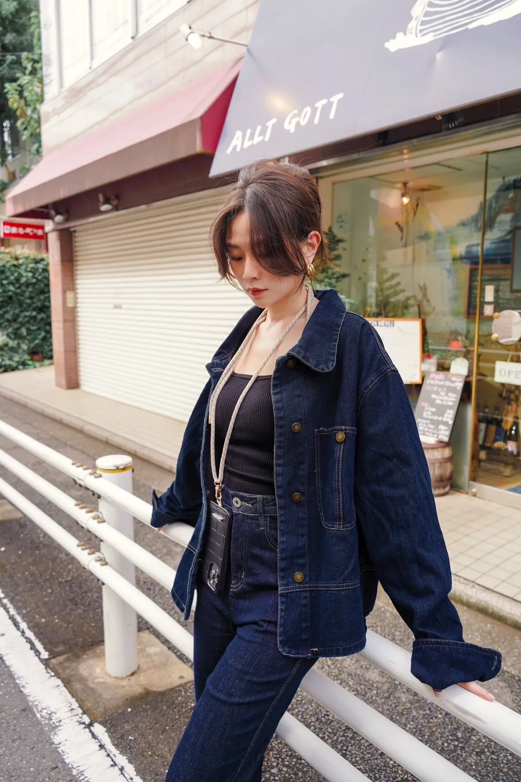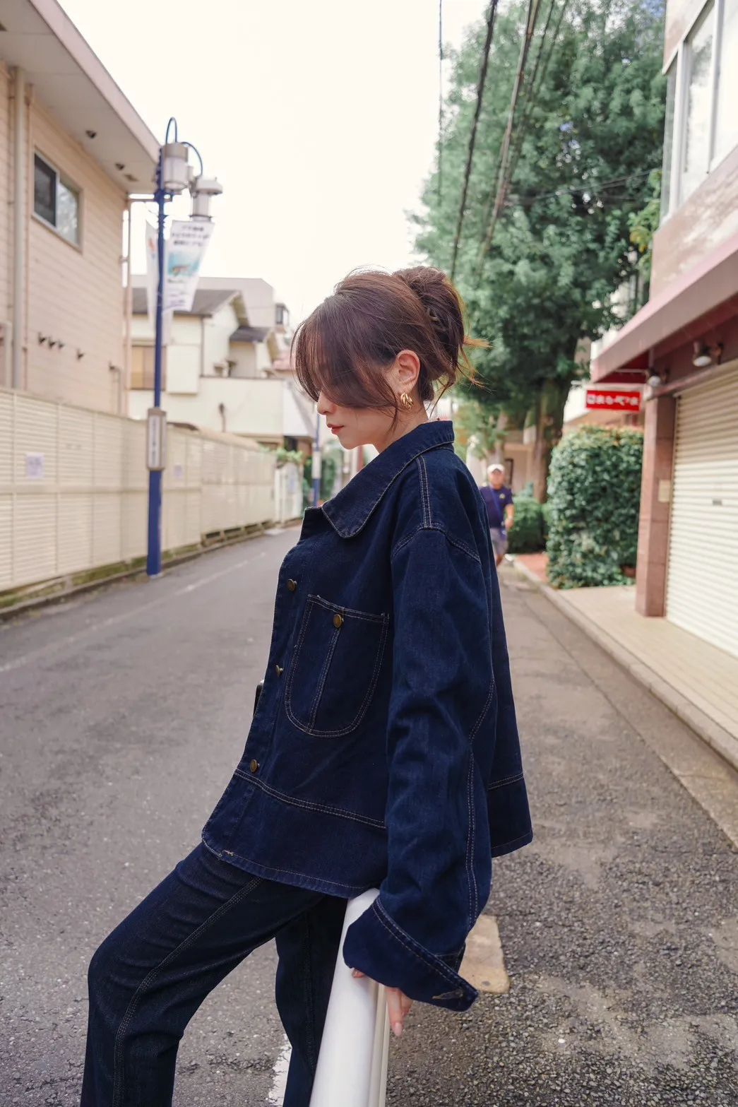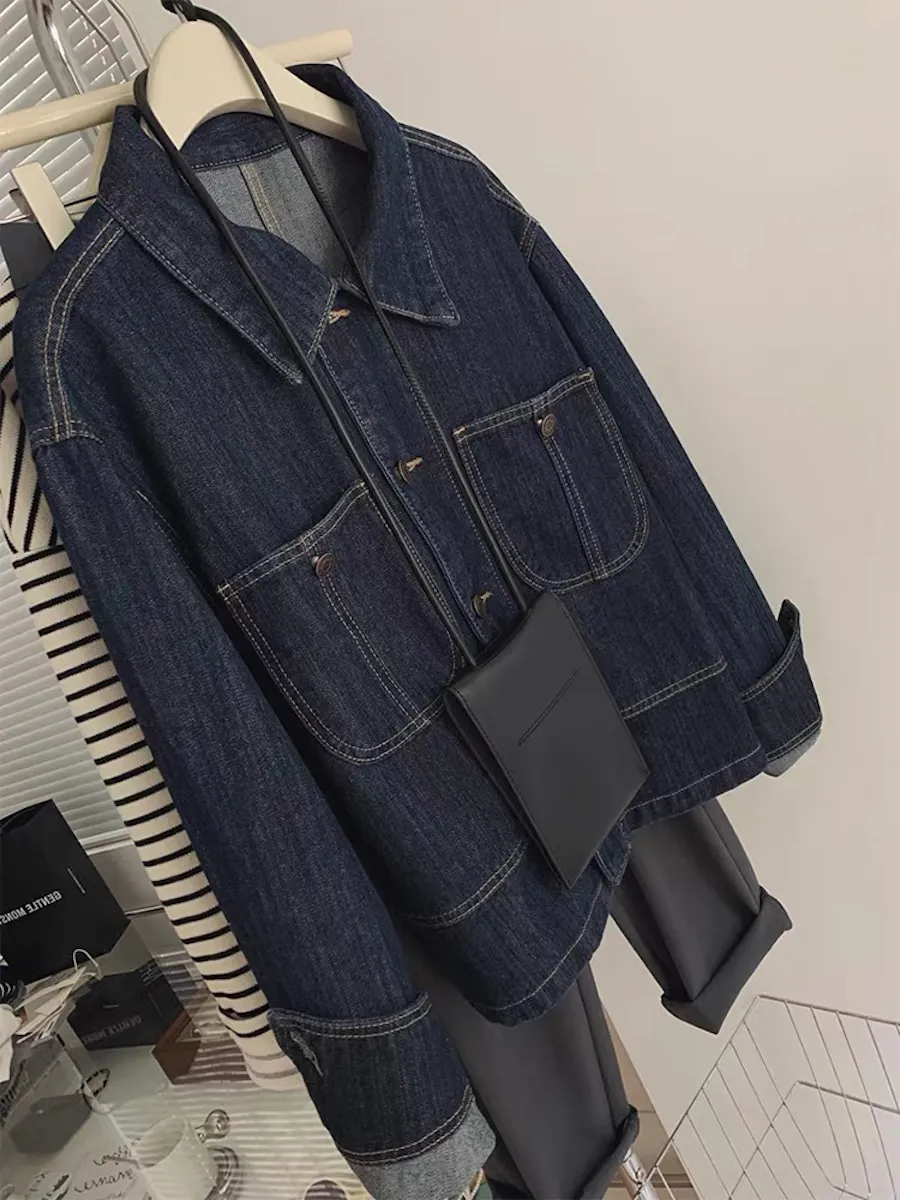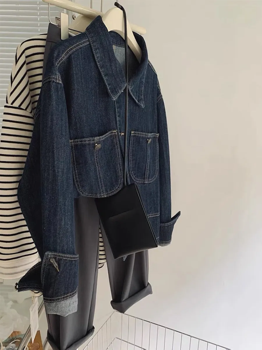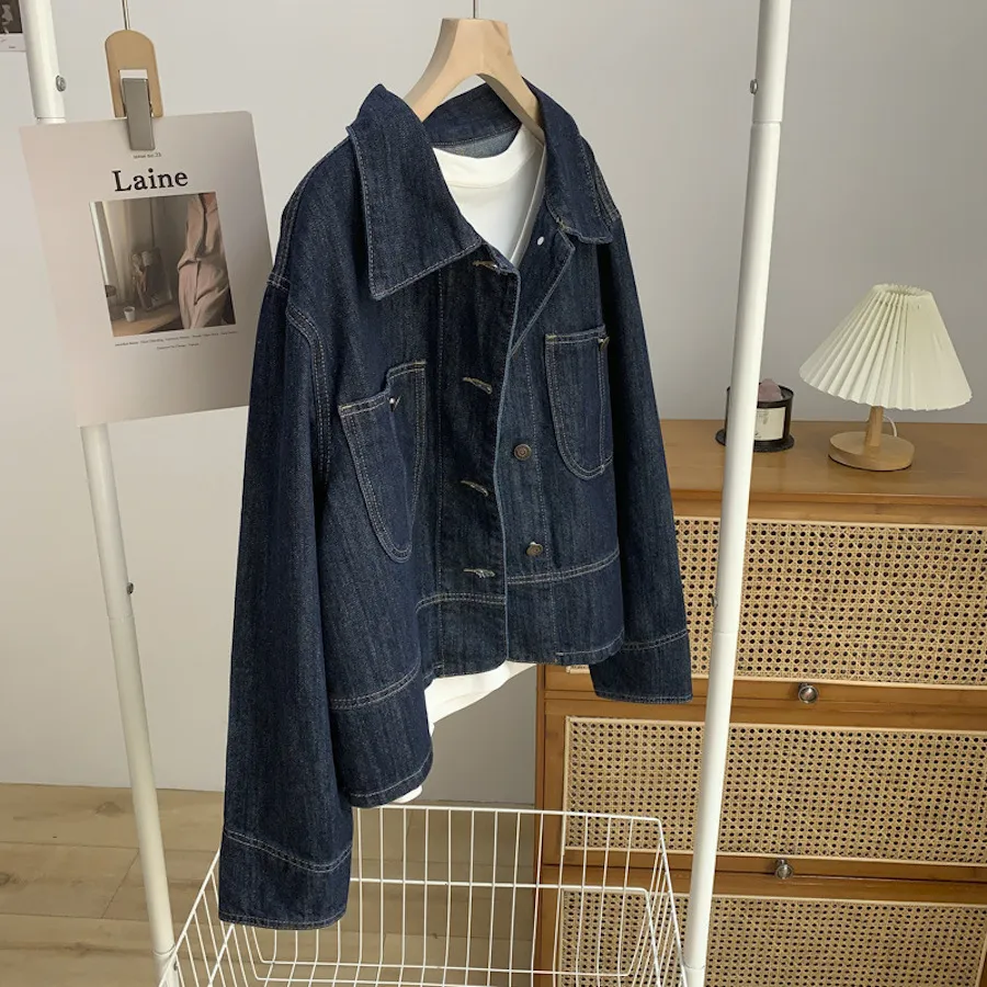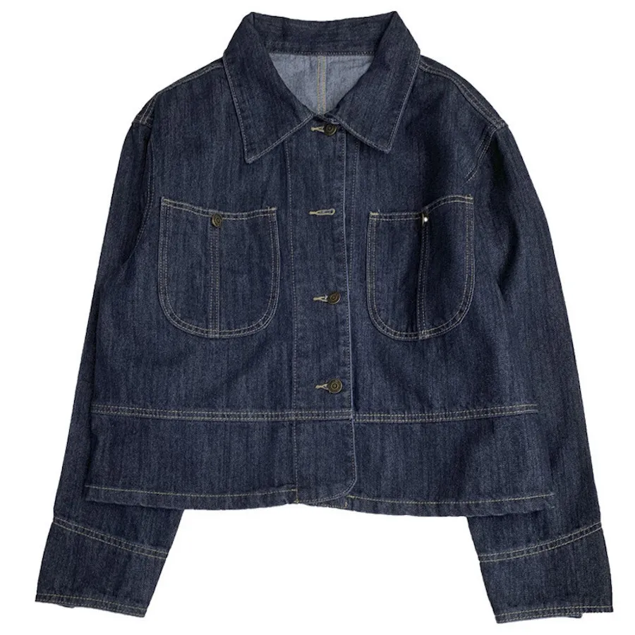 OF240911 車線翻領疊穿牛仔外套
