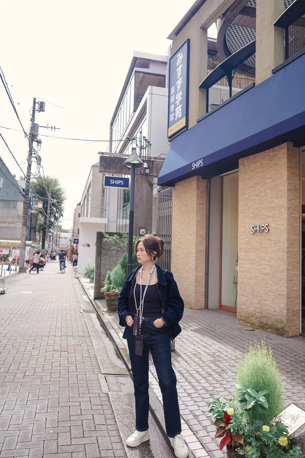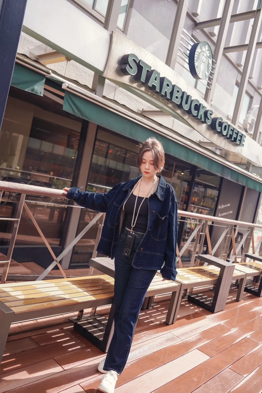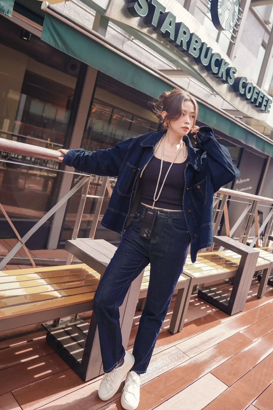 車線翻領疊穿牛仔外套