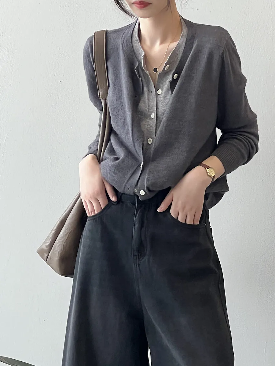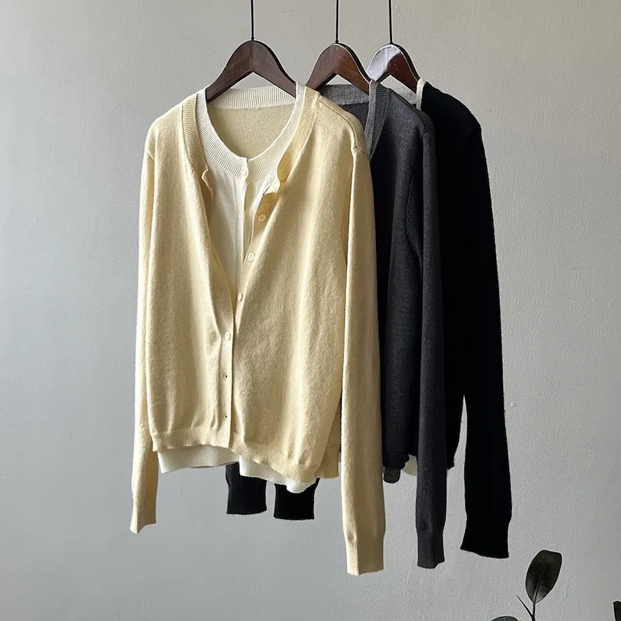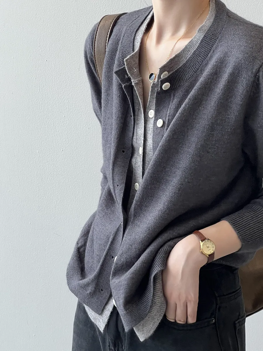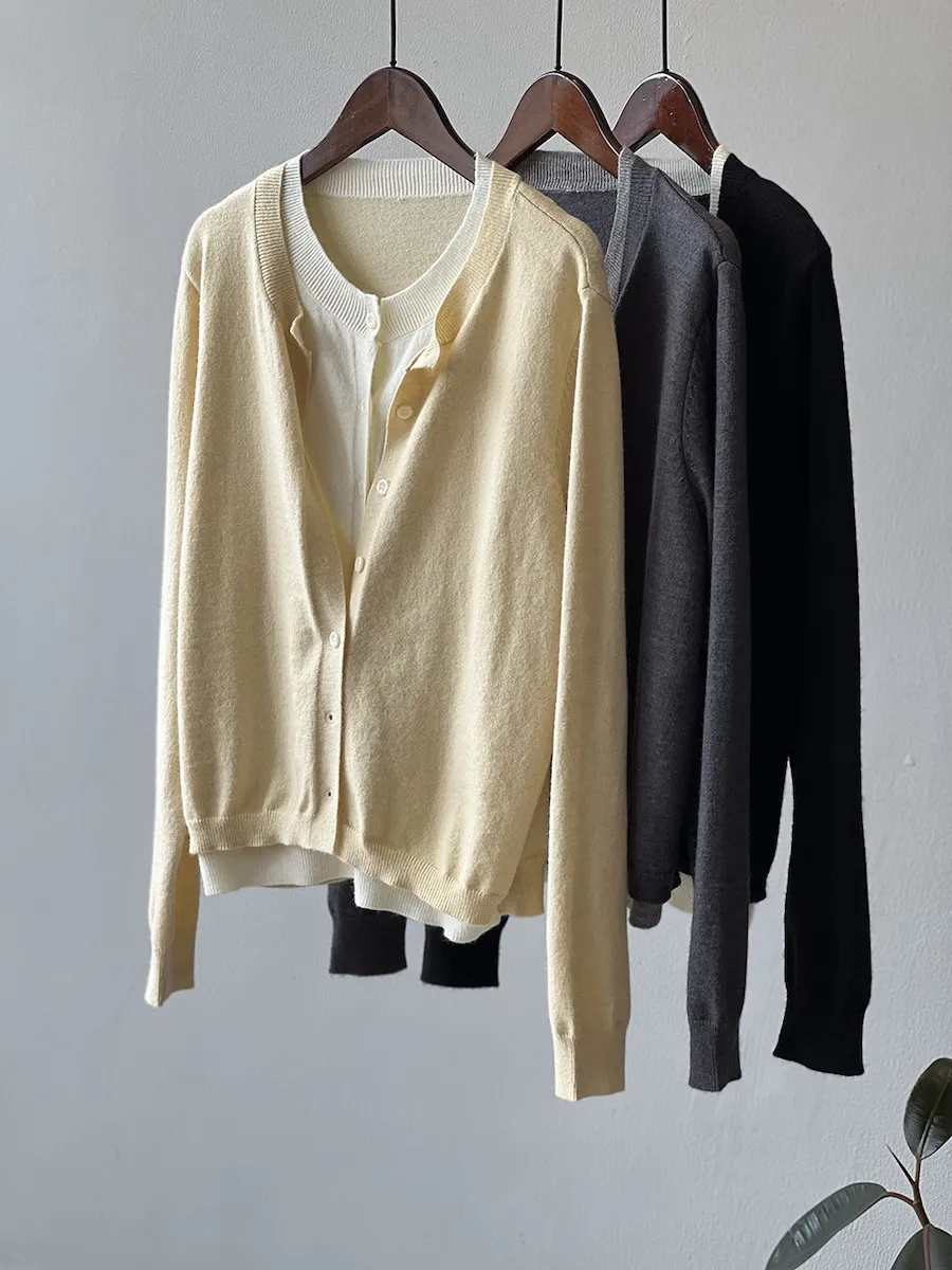 拼色夢境顯瘦針織假兩件式開衫 3色