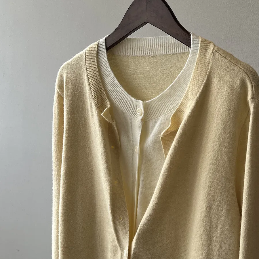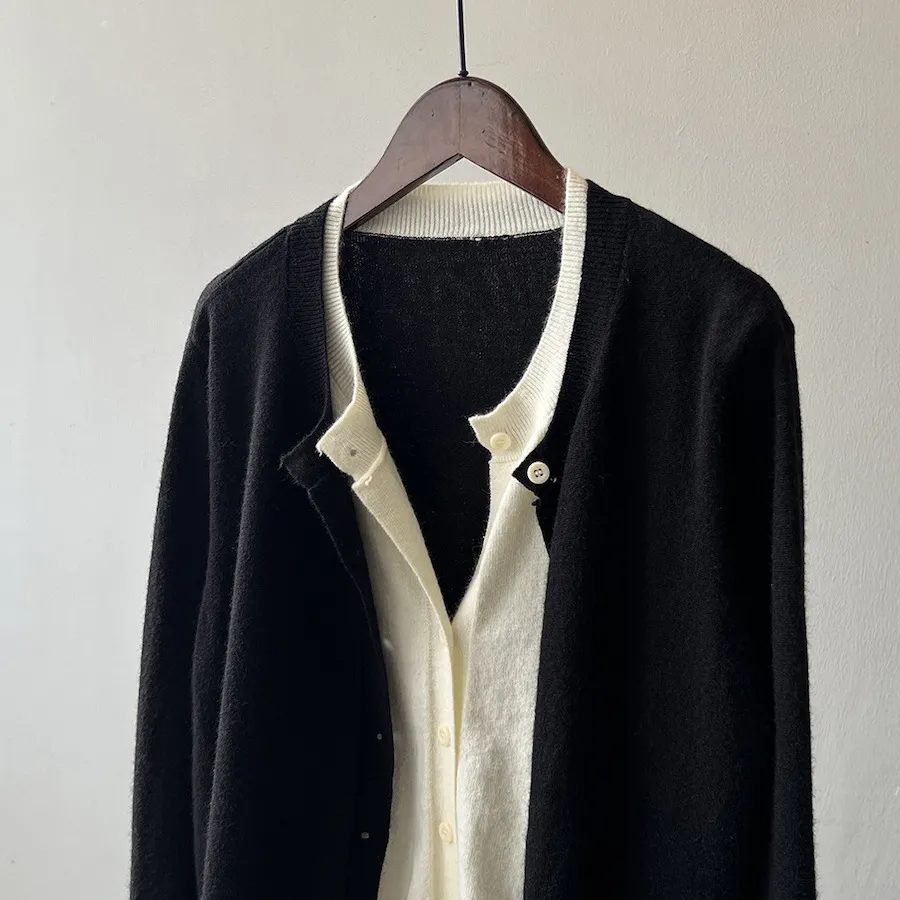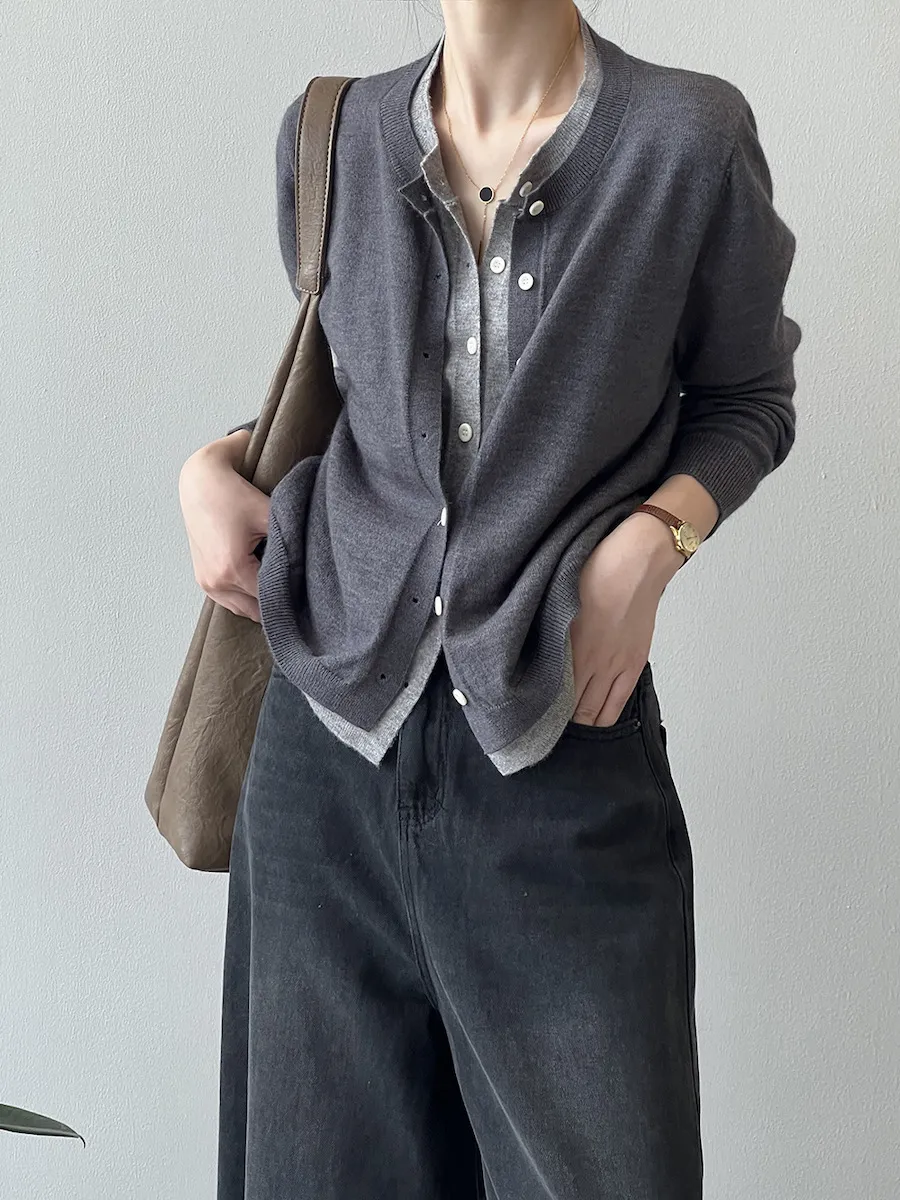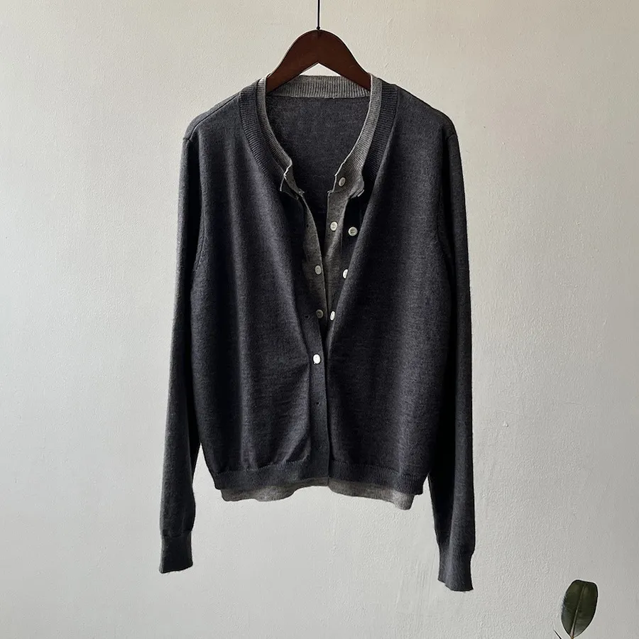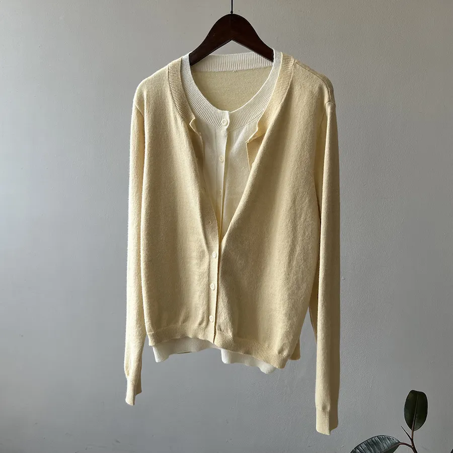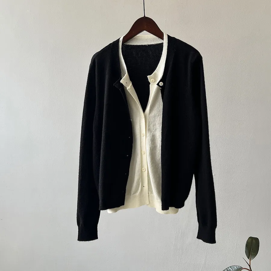 OF241009 拼色夢境顯瘦針織假兩件式開衫