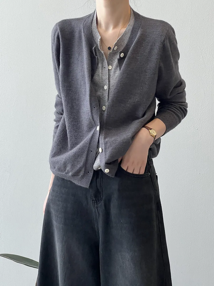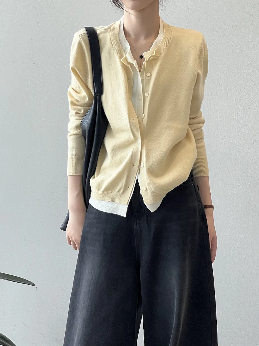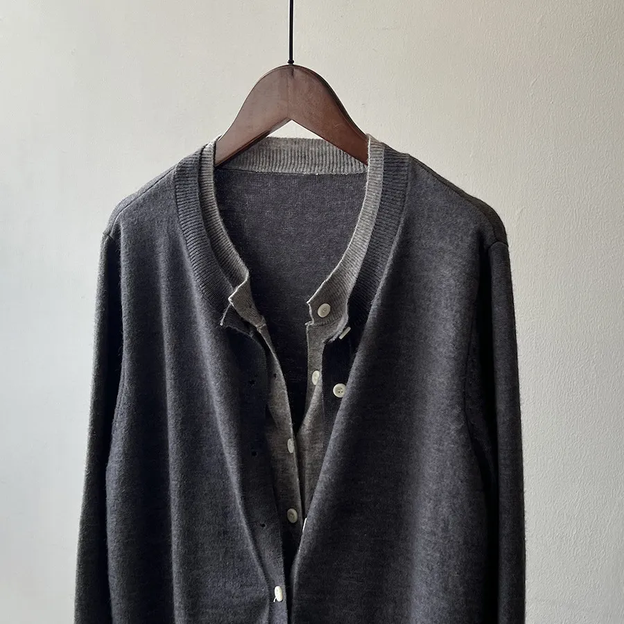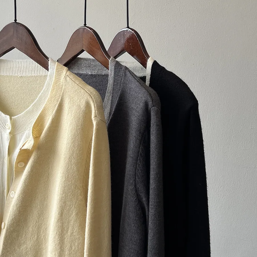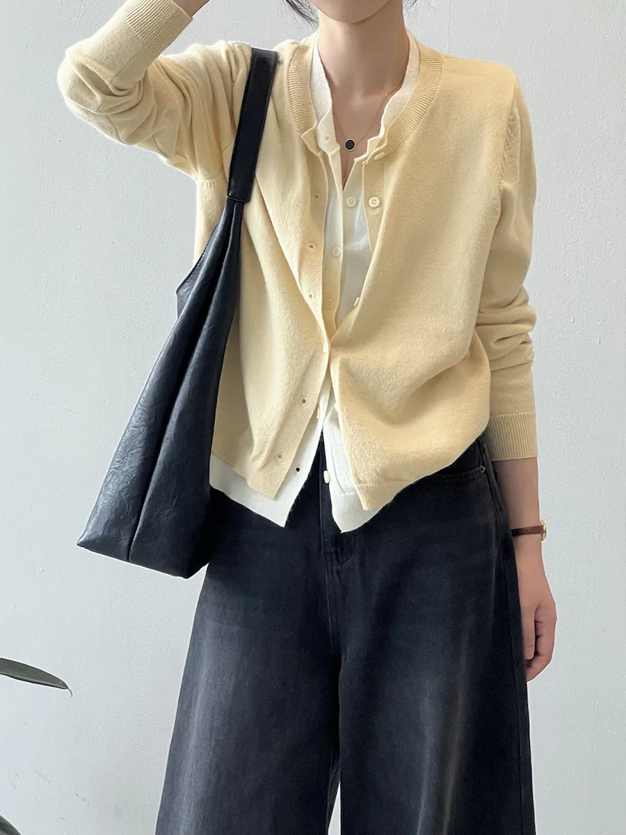 OF241009 拼色夢境顯瘦針織假兩件式開衫