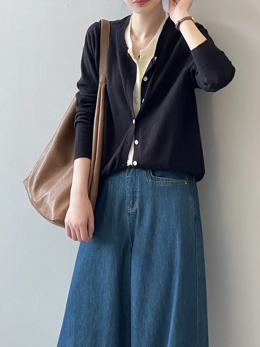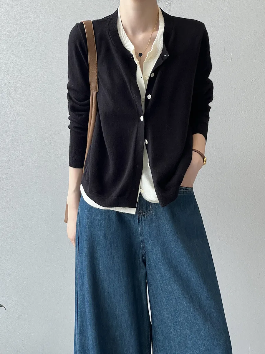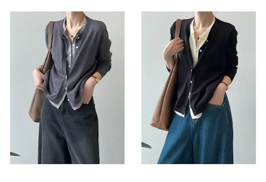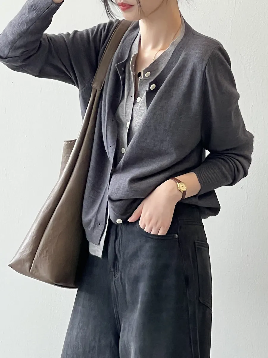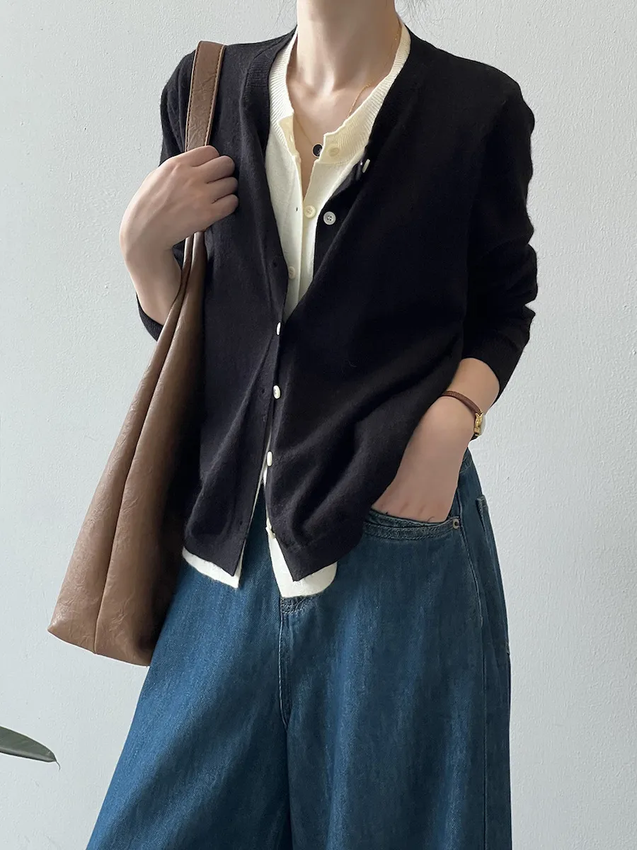 OF241009 拼色夢境顯瘦針織假兩件式開衫