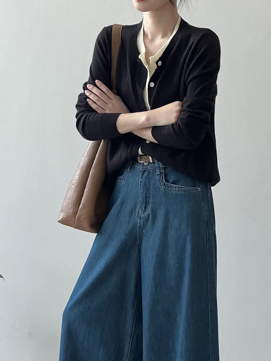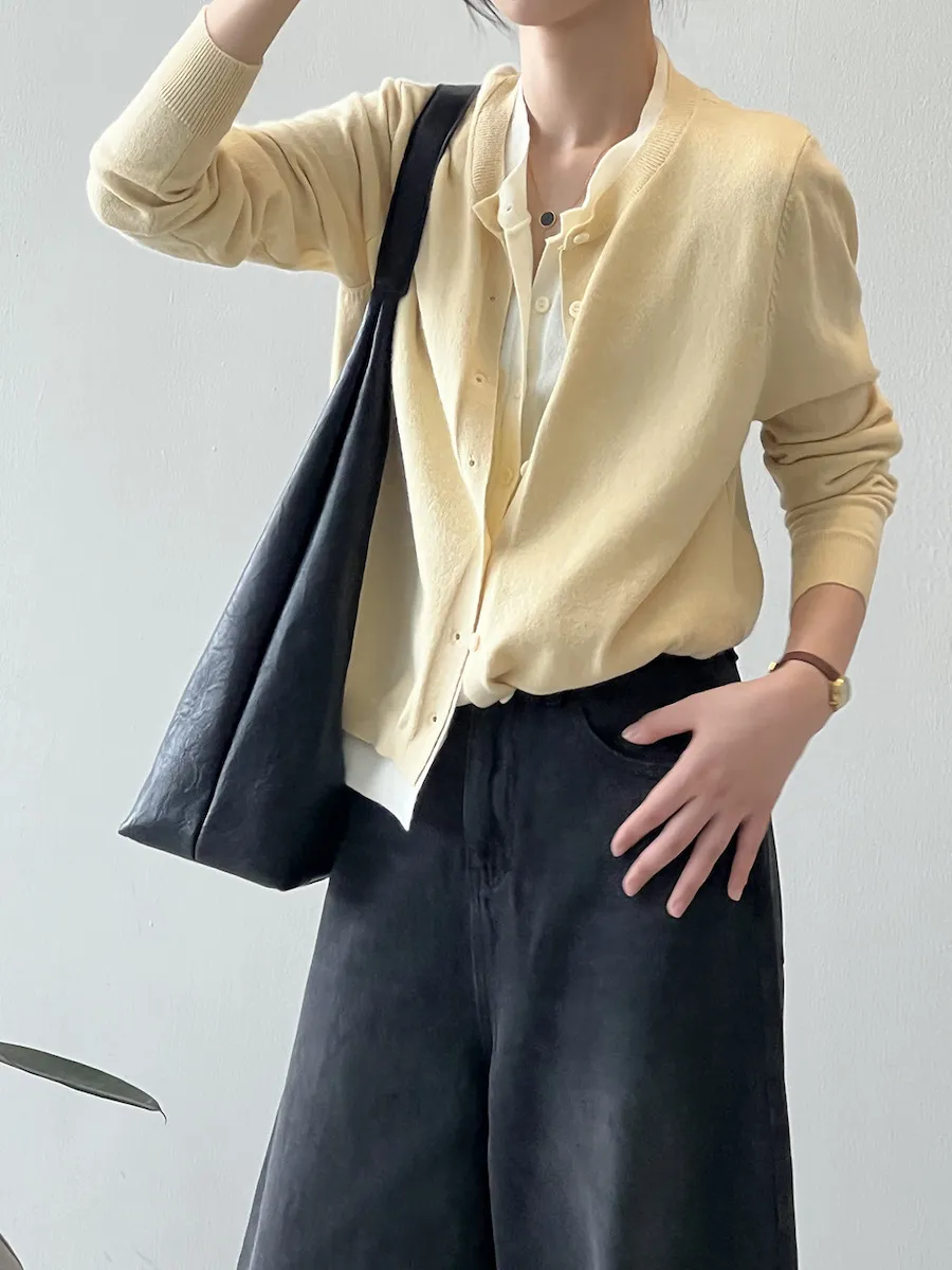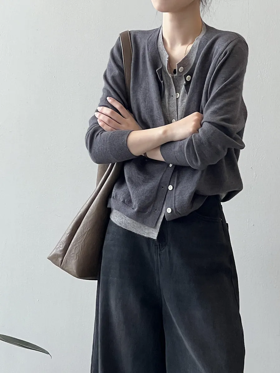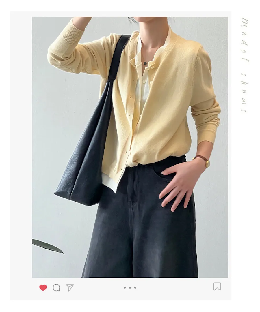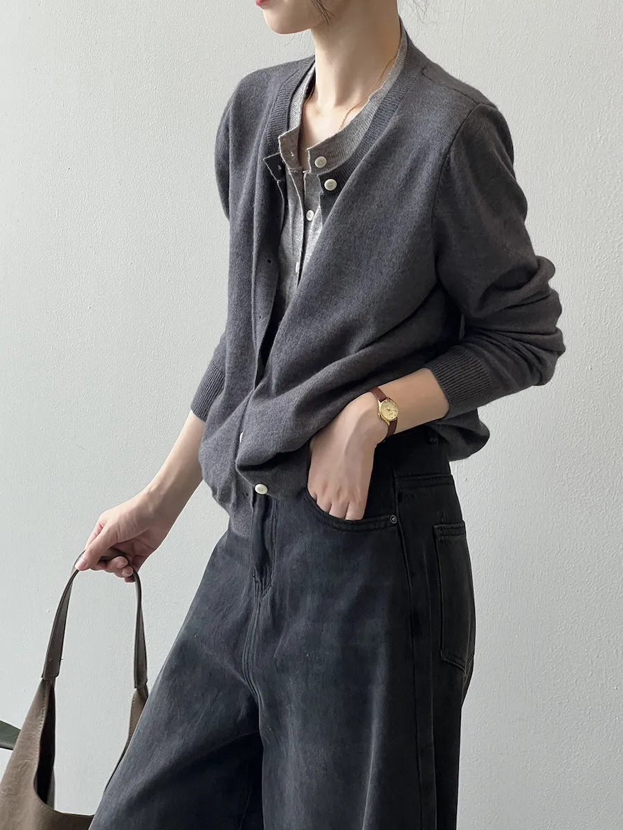 OF241009 拼色夢境顯瘦針織假兩件式開衫