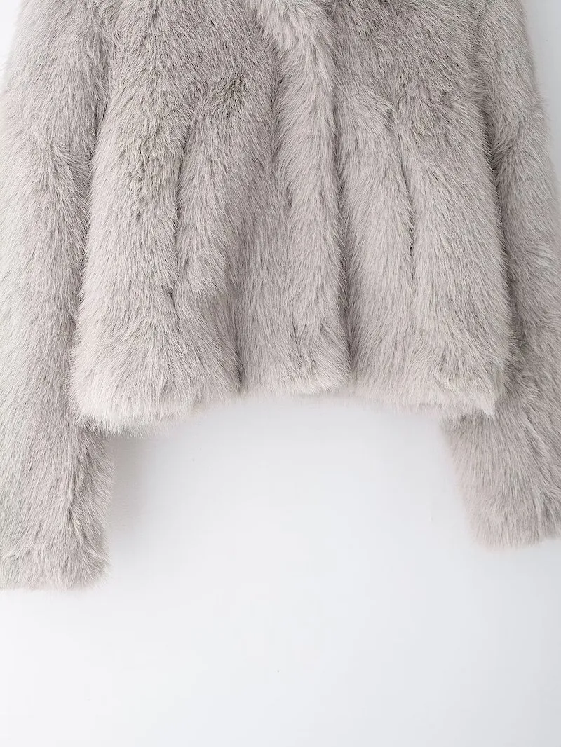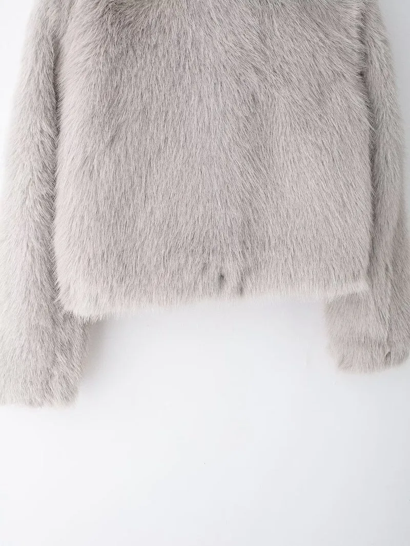 OF241208 巴黎霧語.淡雅灰調毛絨短大衣