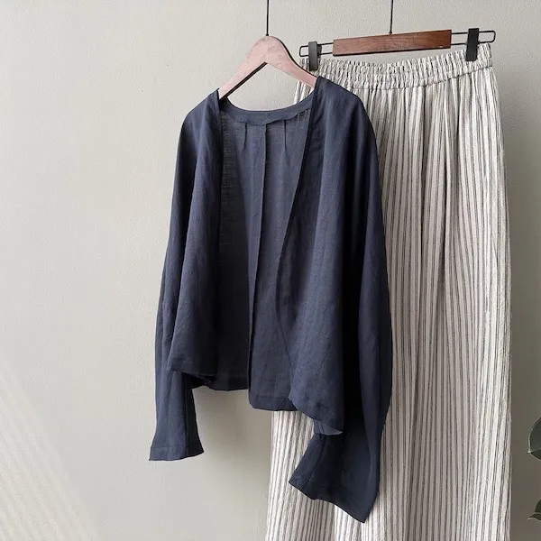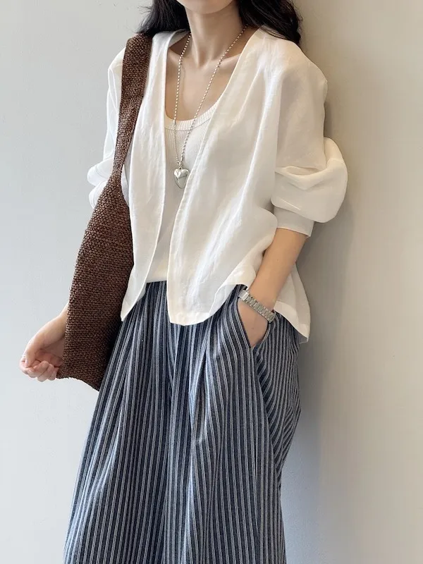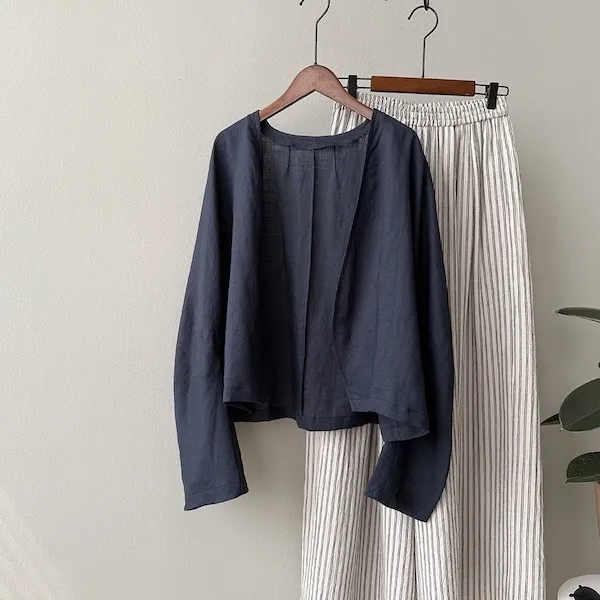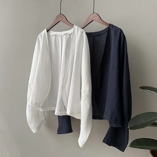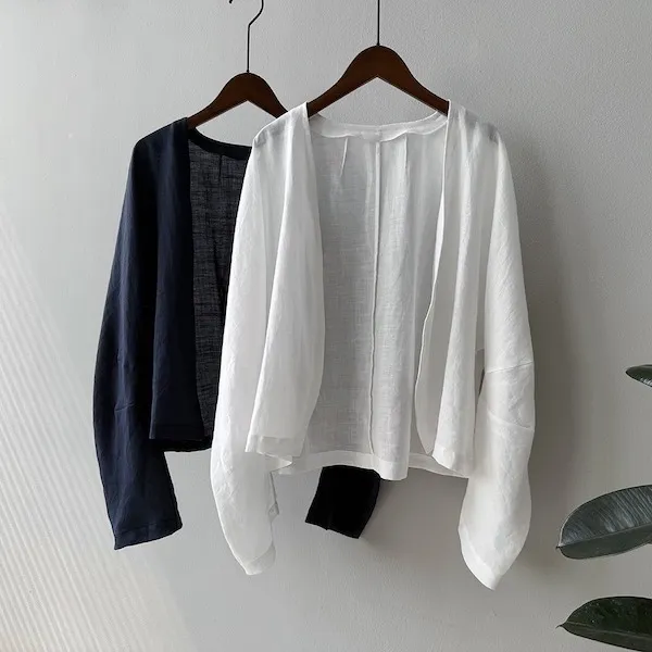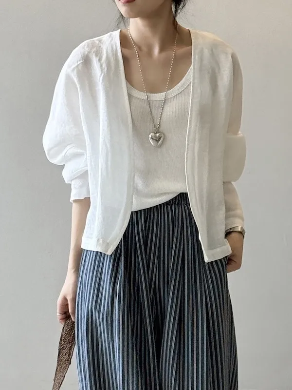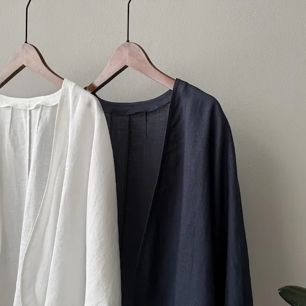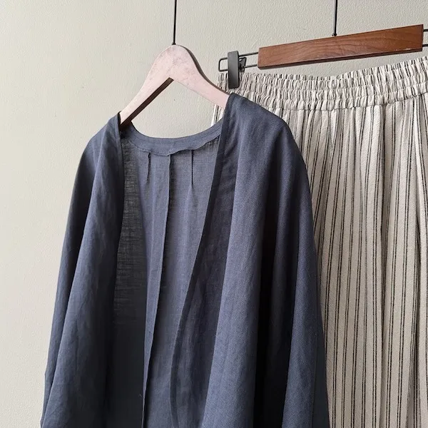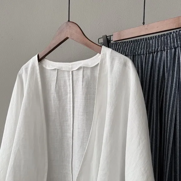 雲朵漫步.輕薄無扣設計苧麻開衫 2色