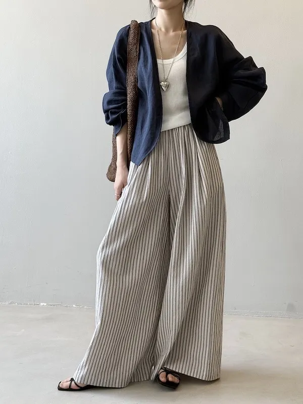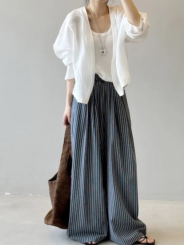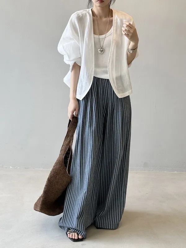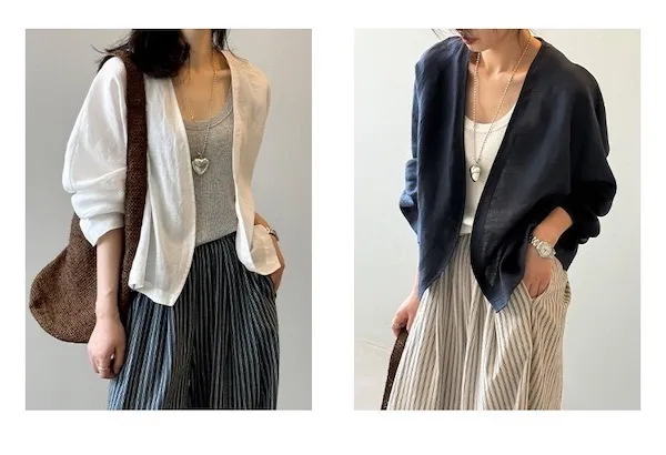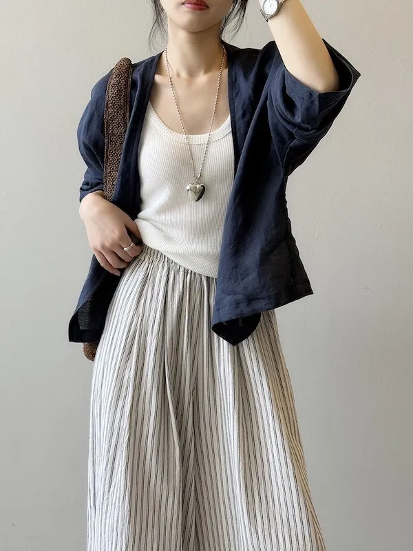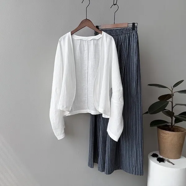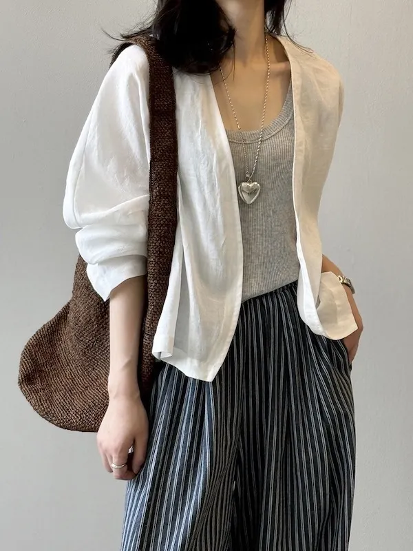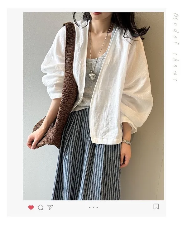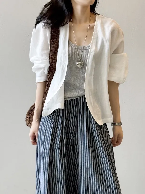 雲朵漫步.輕薄無扣設計苧麻開衫 2色