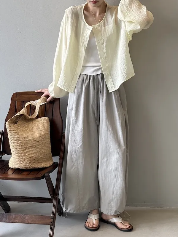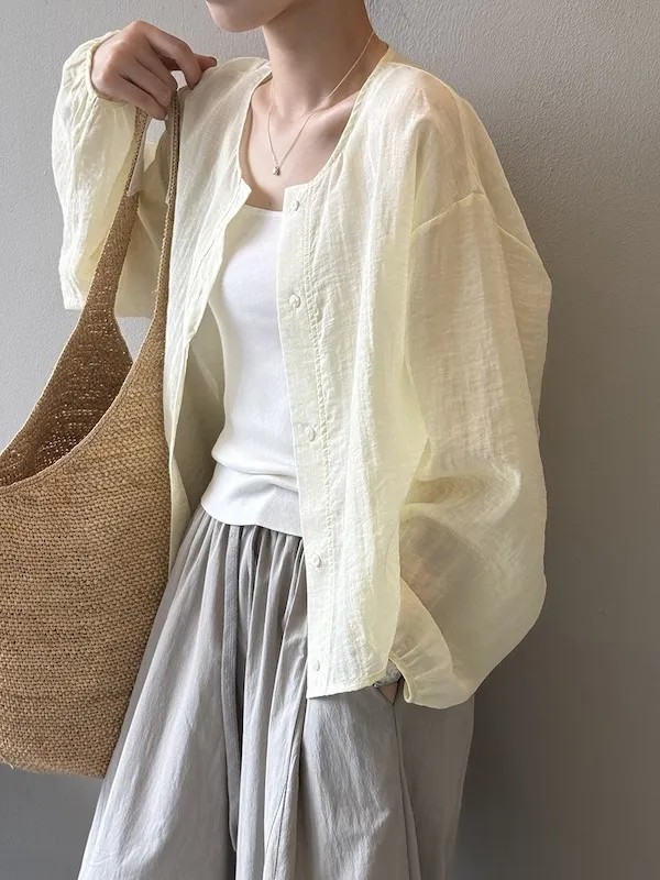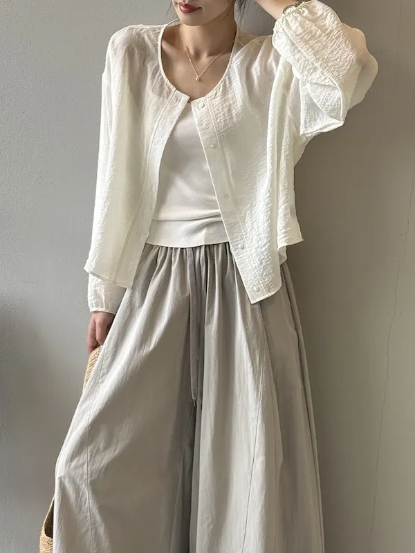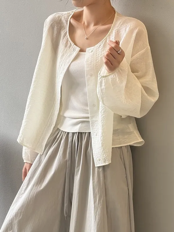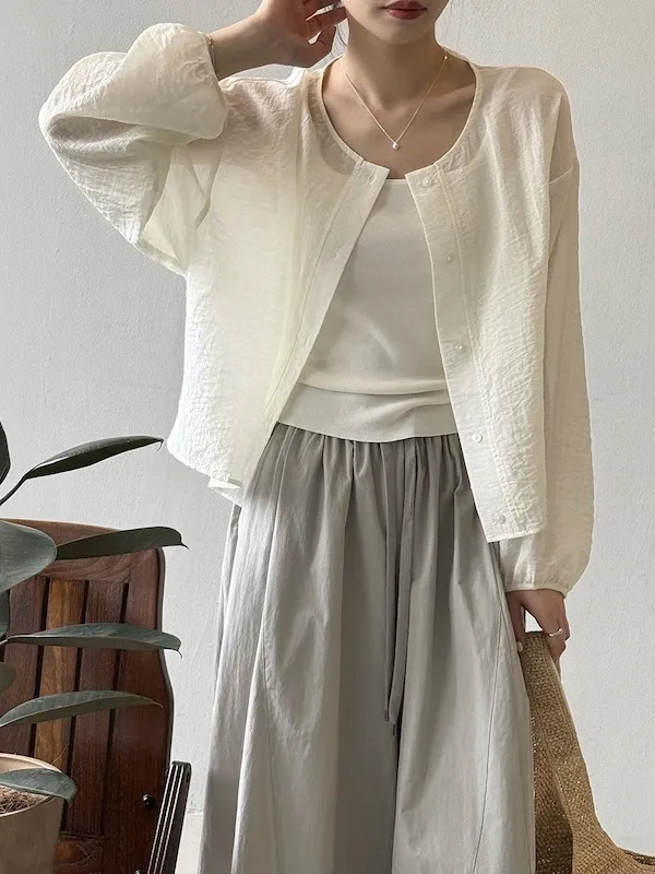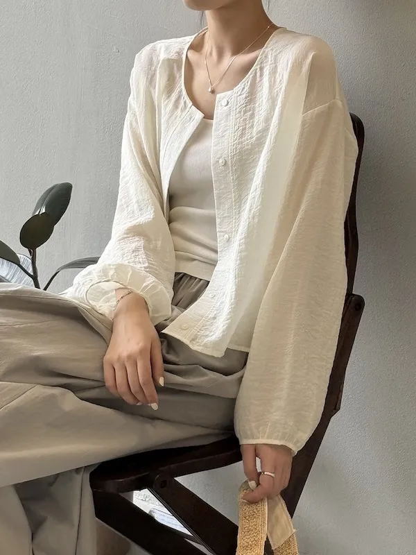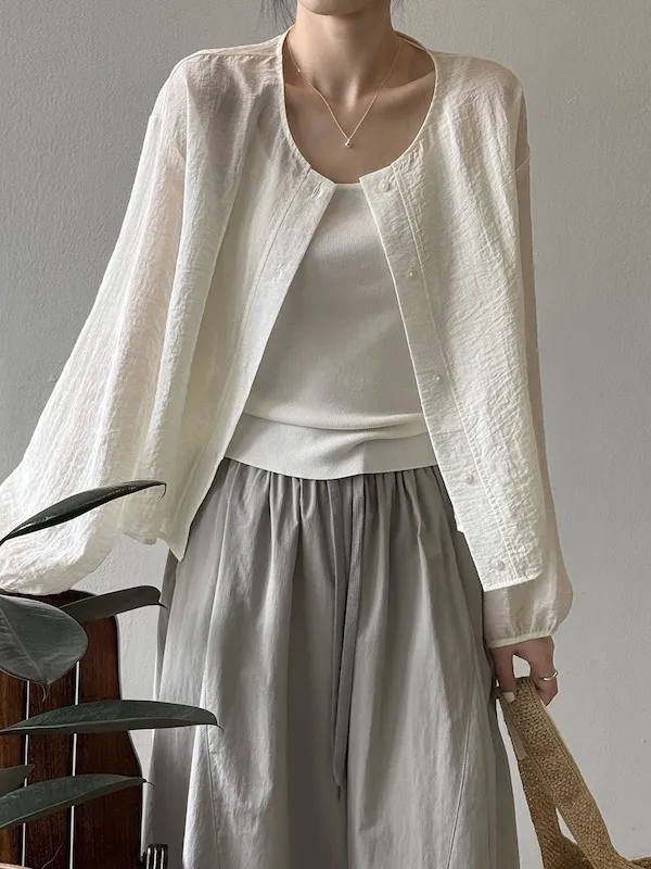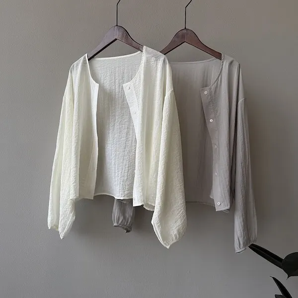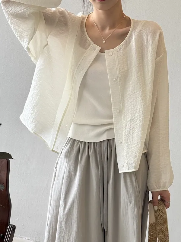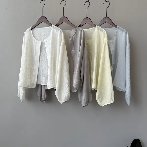 雲朵漫步 輕盈寬鬆圓領罩衫上衣 4色