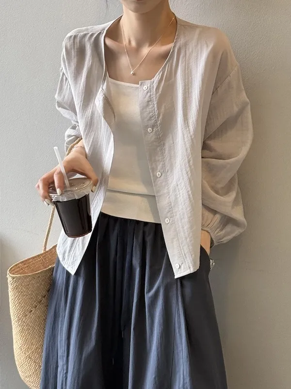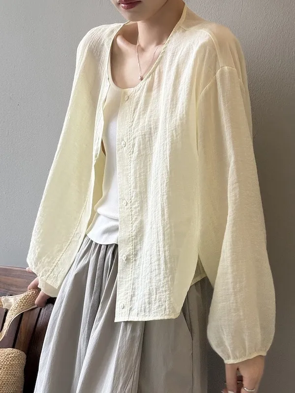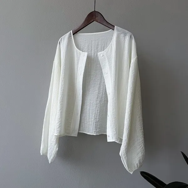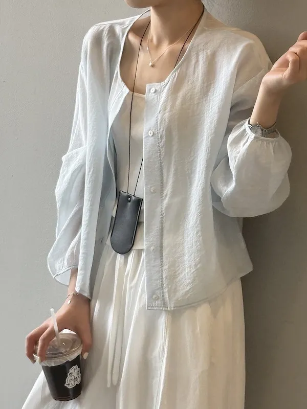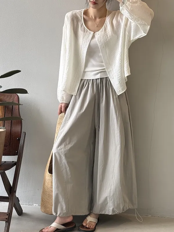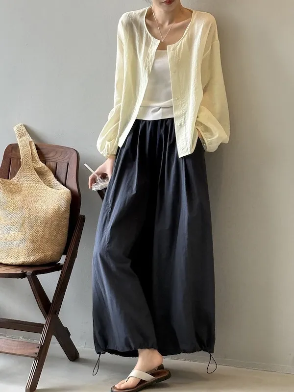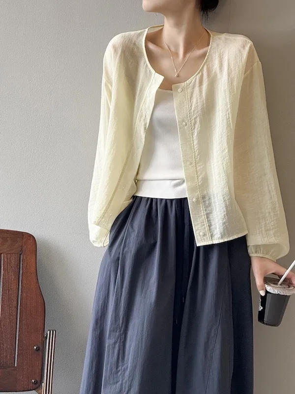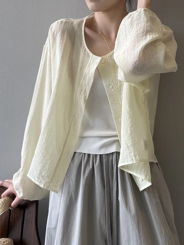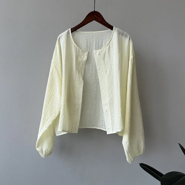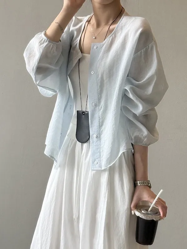 雲朵漫步 輕盈寬鬆圓領罩衫上衣 4色