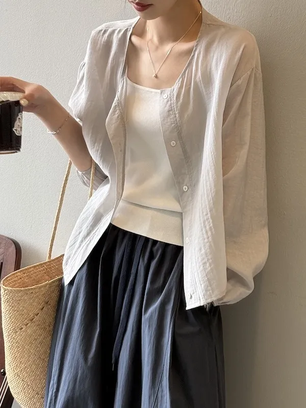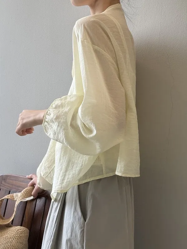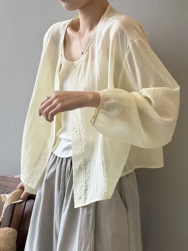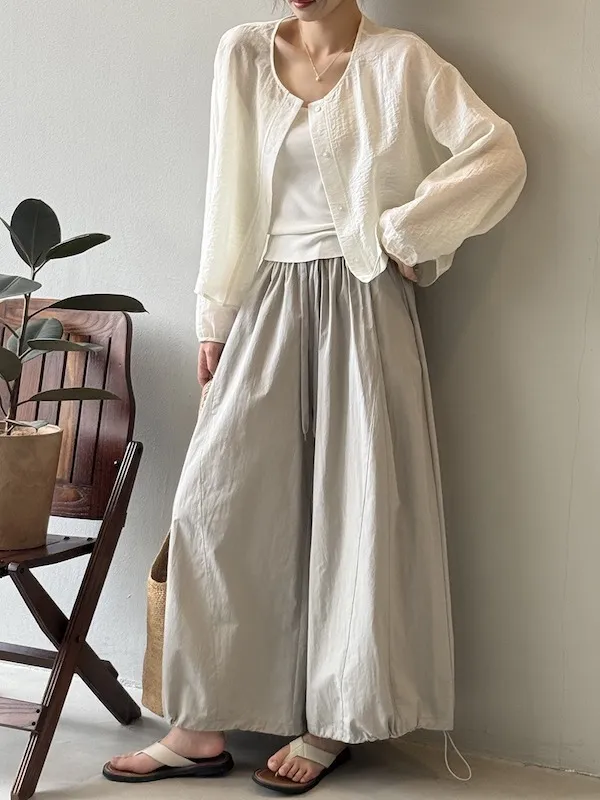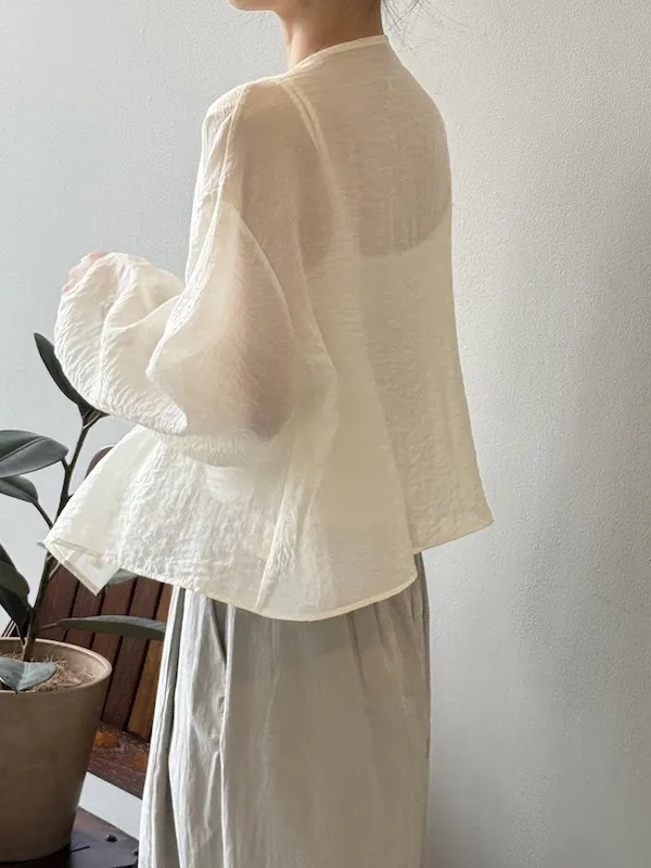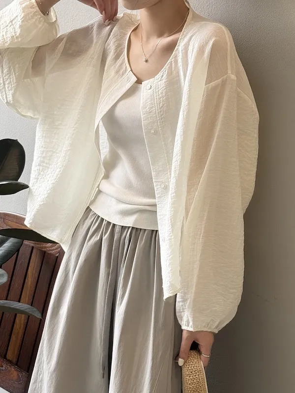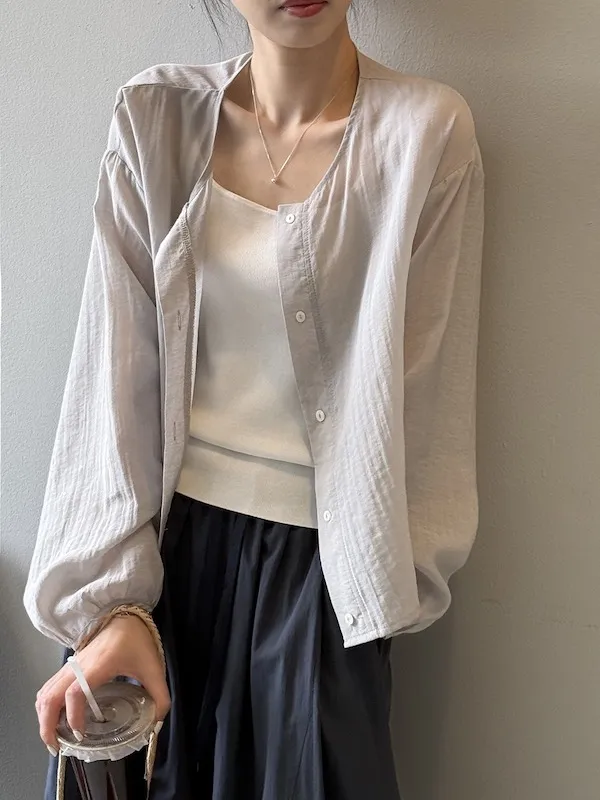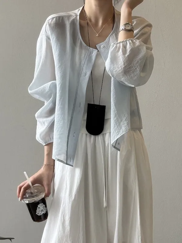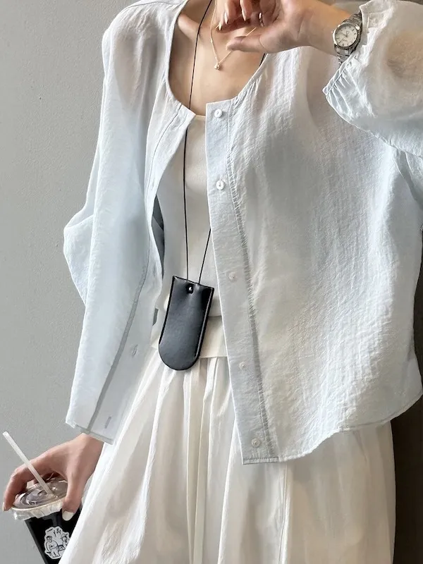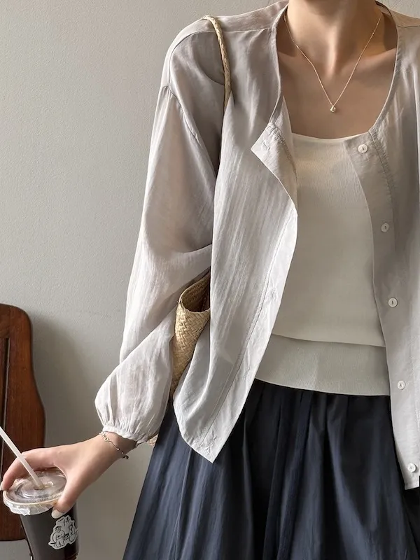雲朵漫步 輕盈寬鬆圓領罩衫上衣 4色