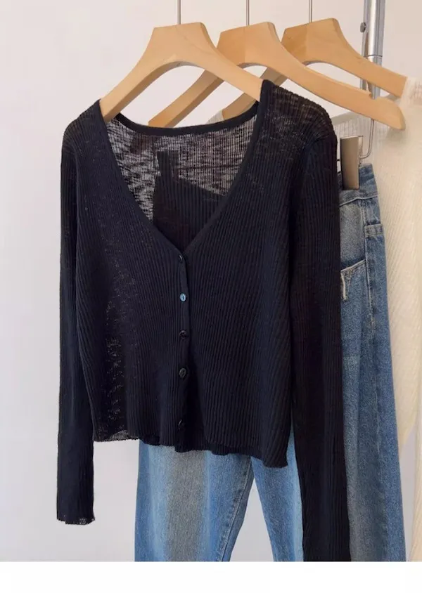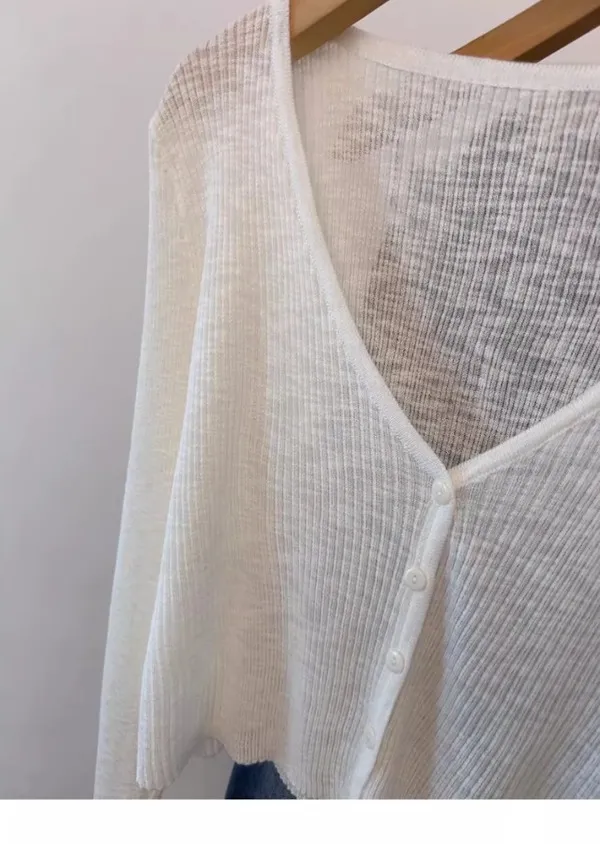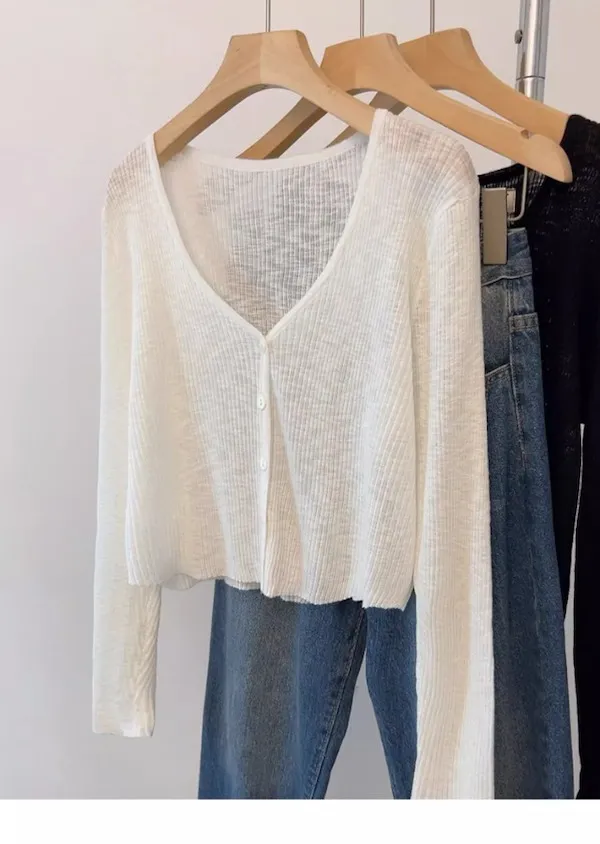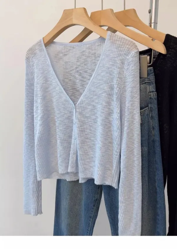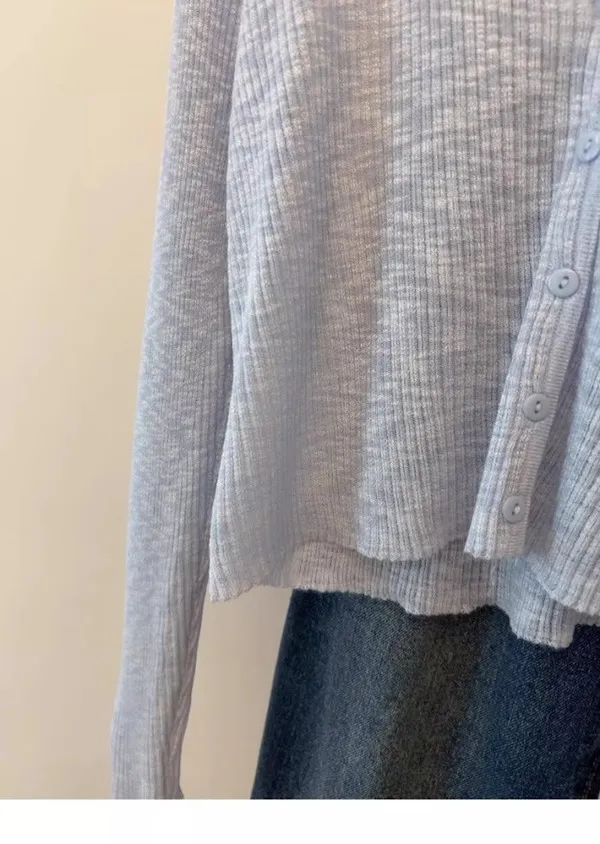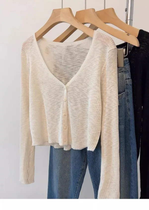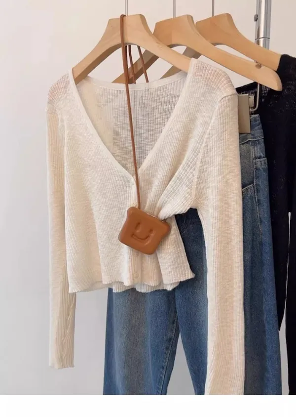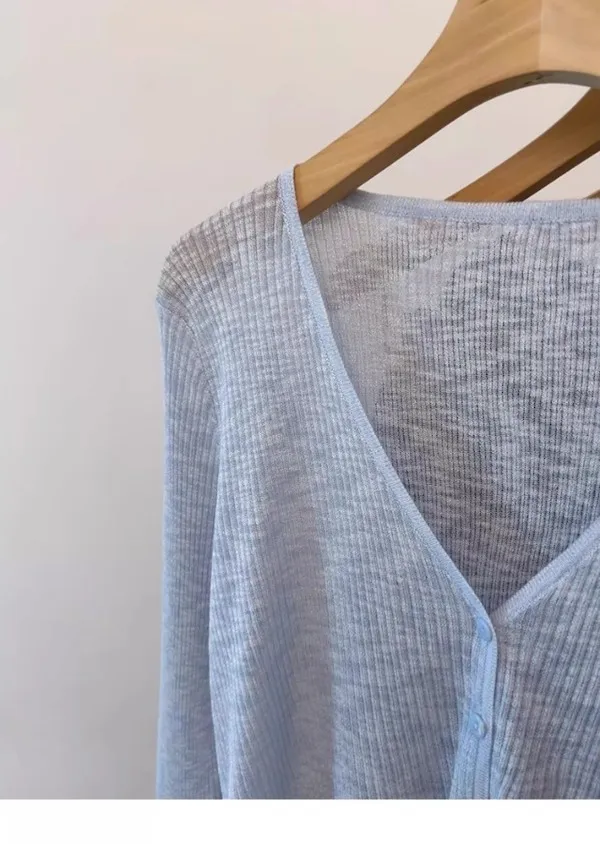 清晨微光 冰絲V領針織小開衫 4色