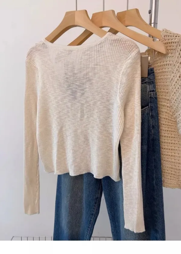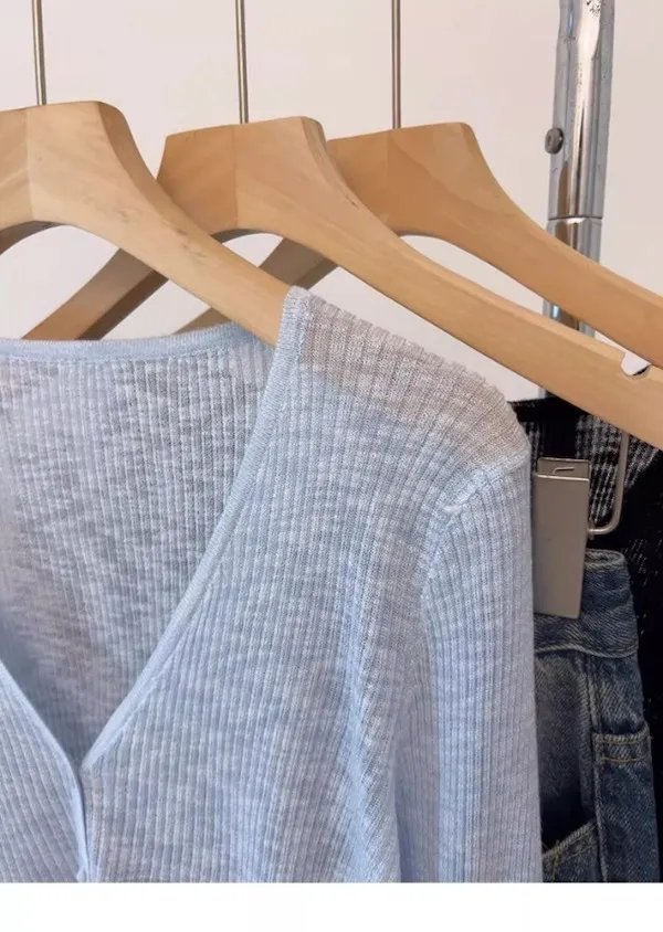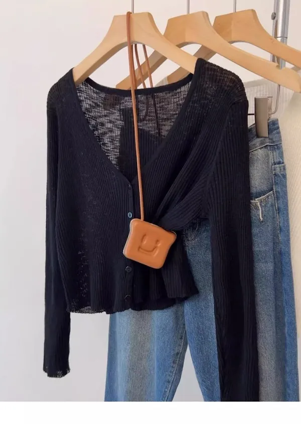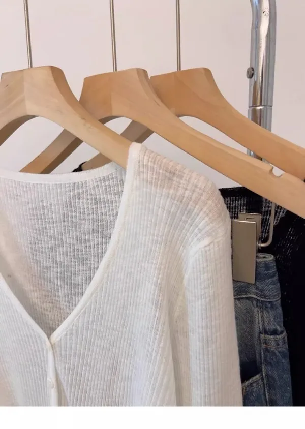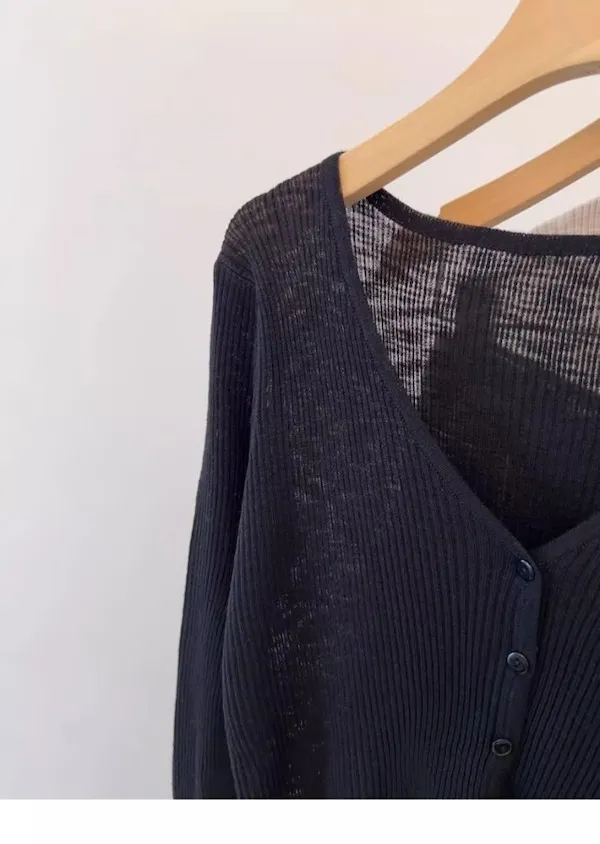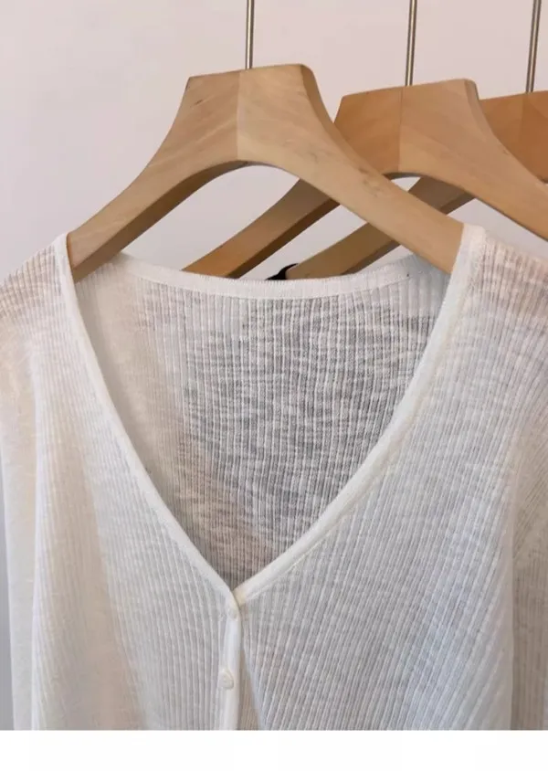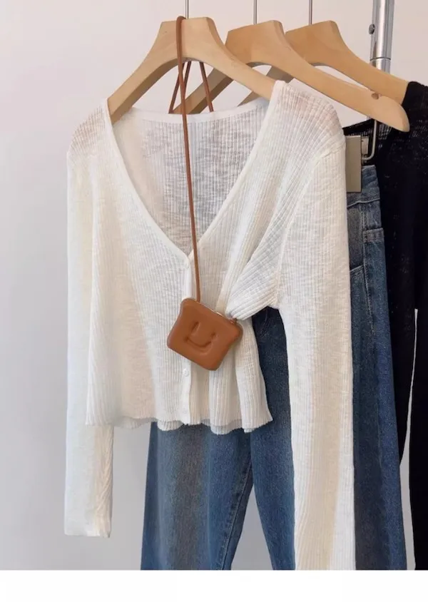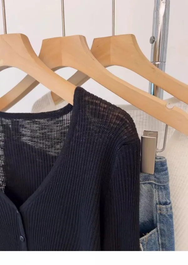 清晨微光 冰絲V領針織小開衫 4色