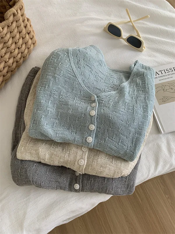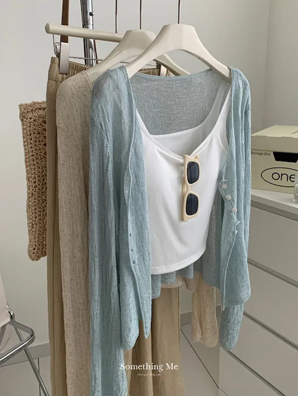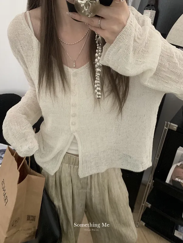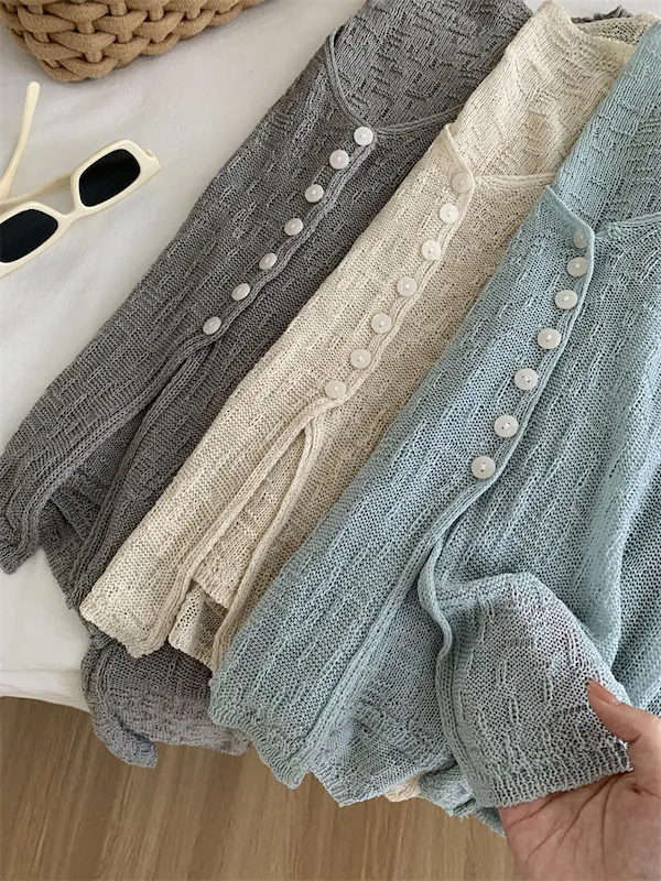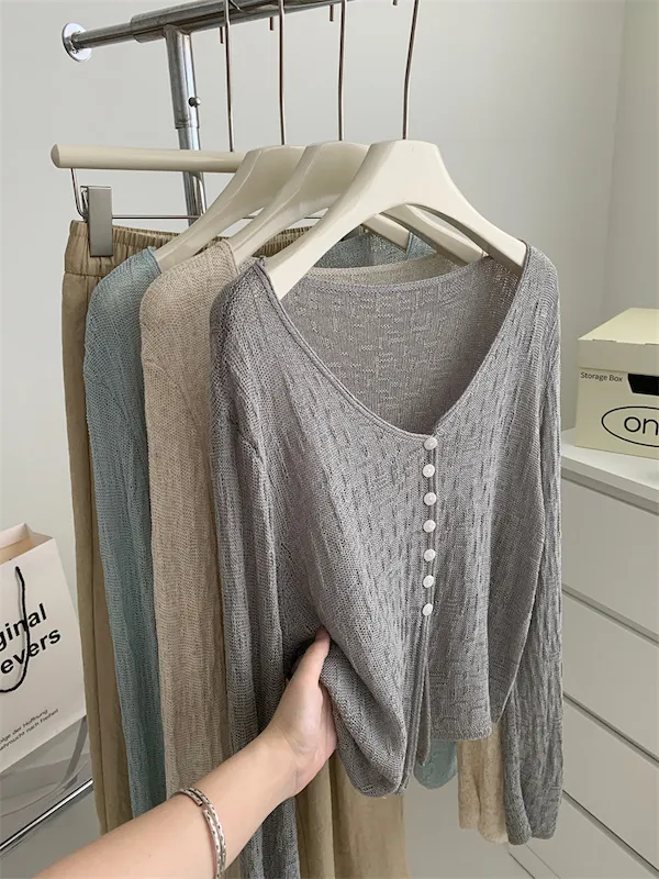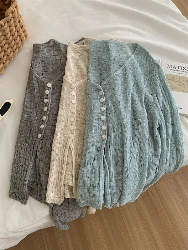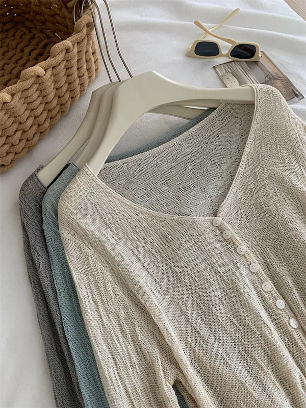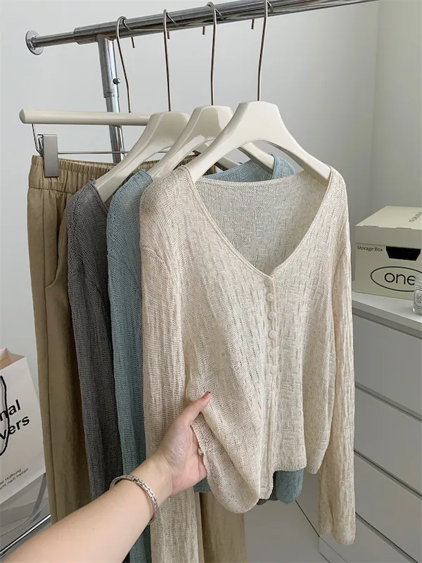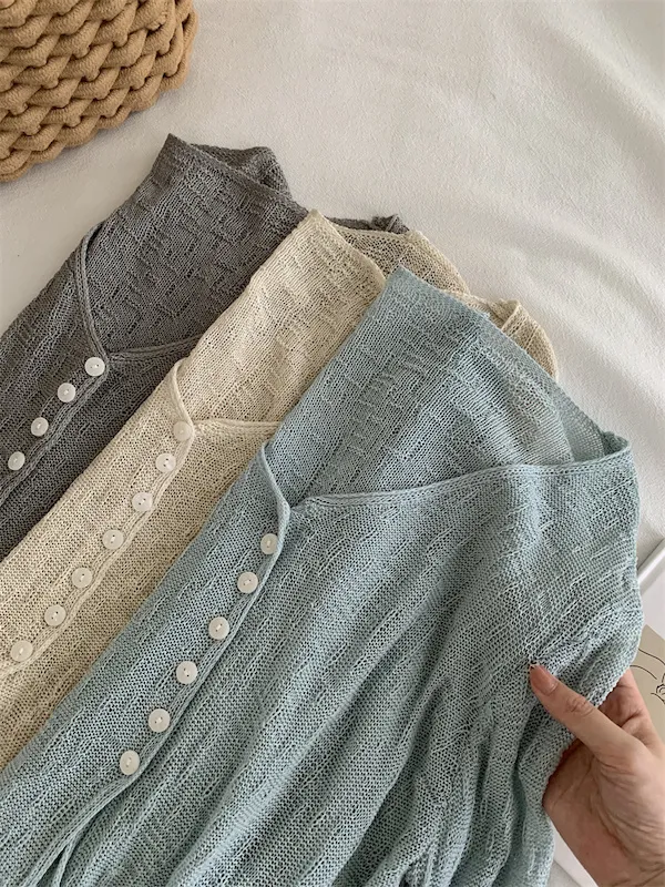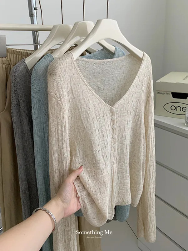 浪漫垂感~溫柔亞麻V領針織開衫 4色