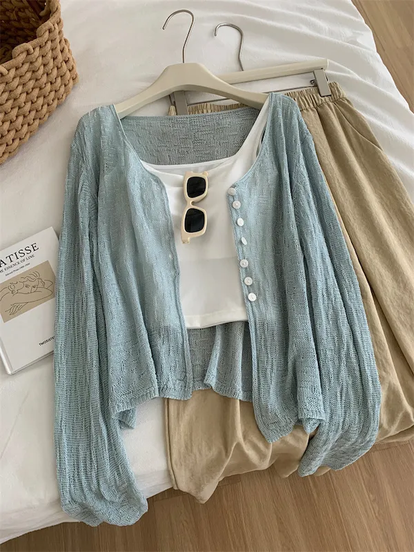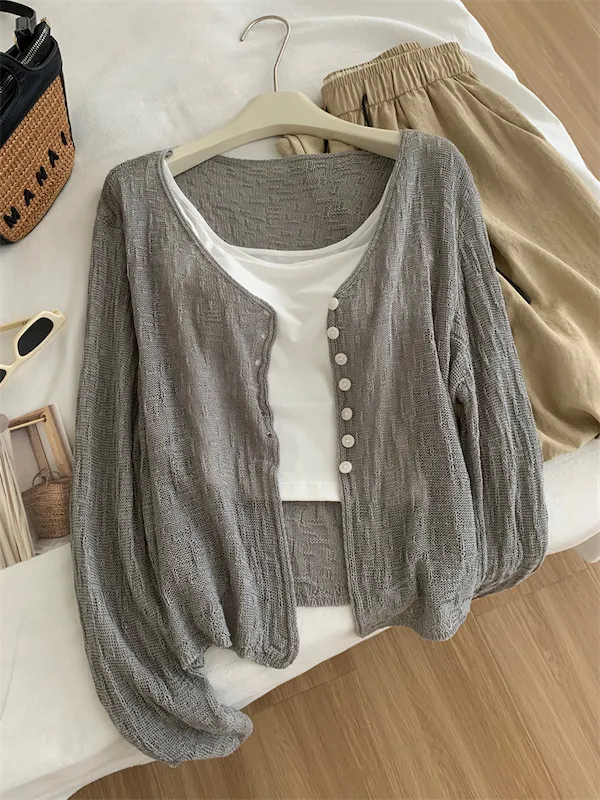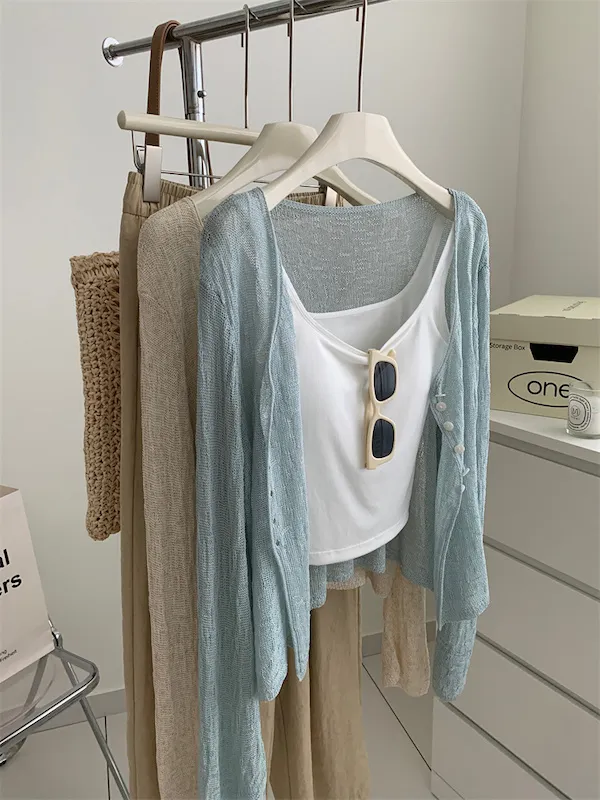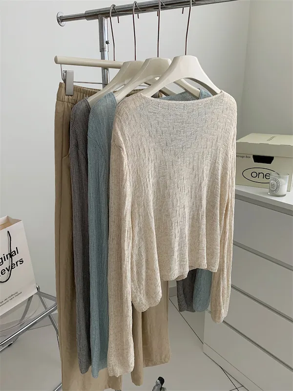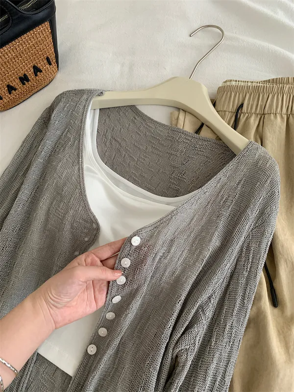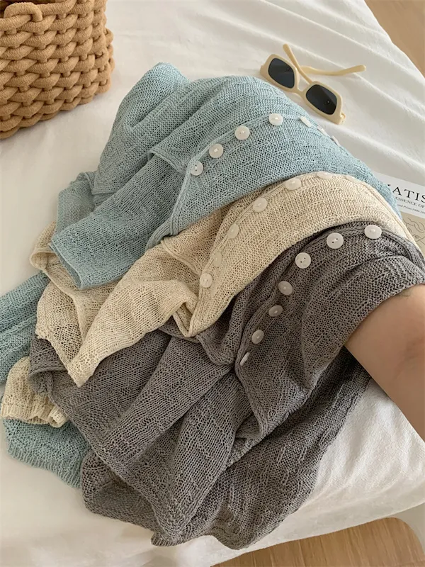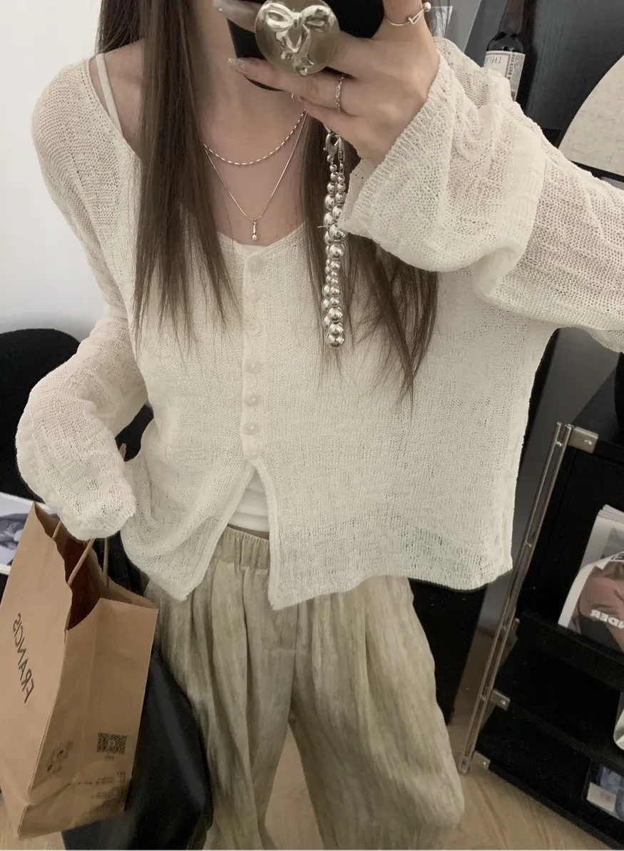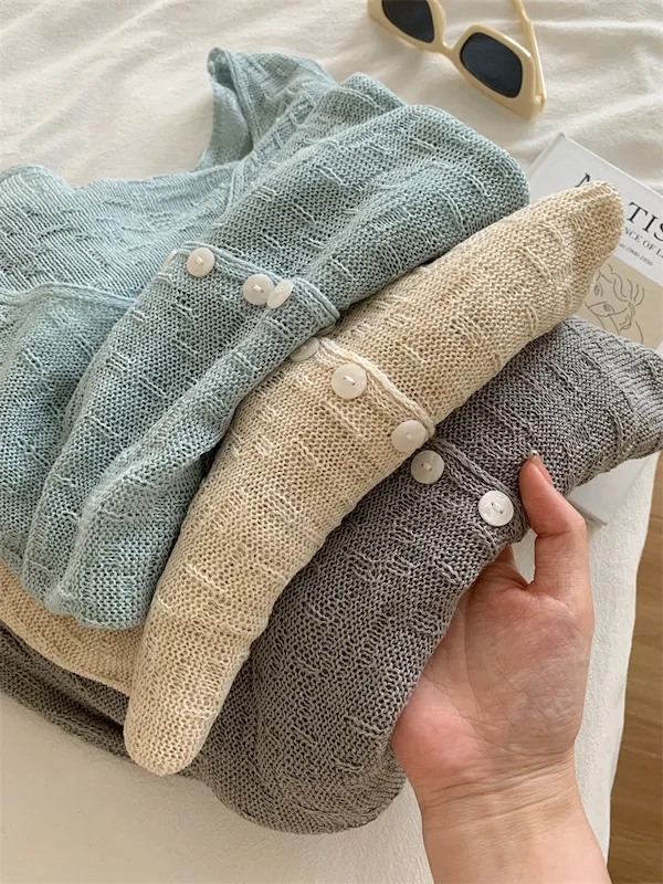浪漫垂感~溫柔亞麻V領針織開衫 4色
