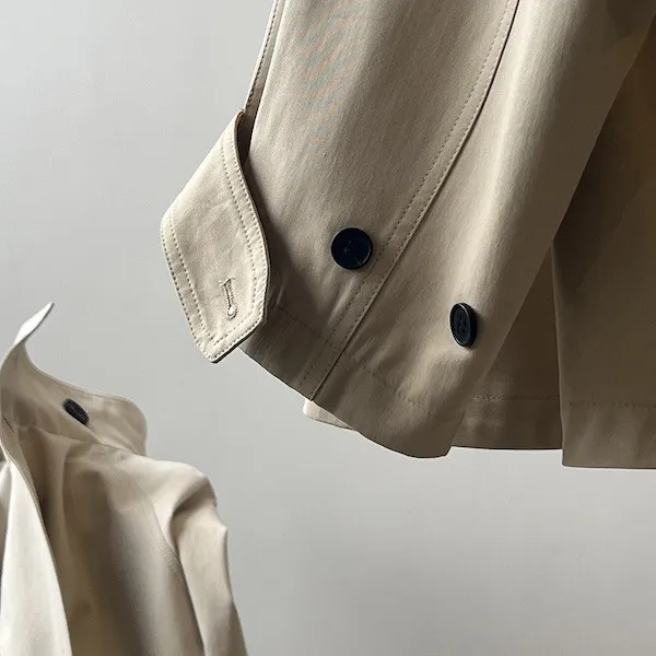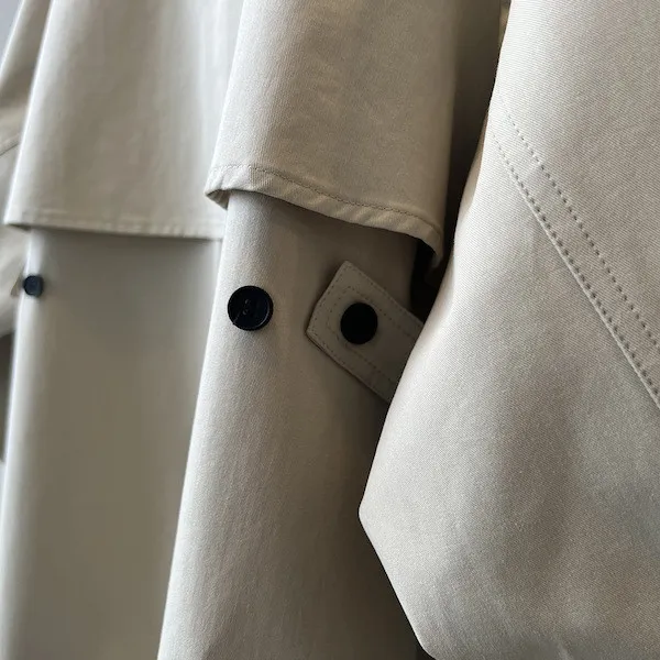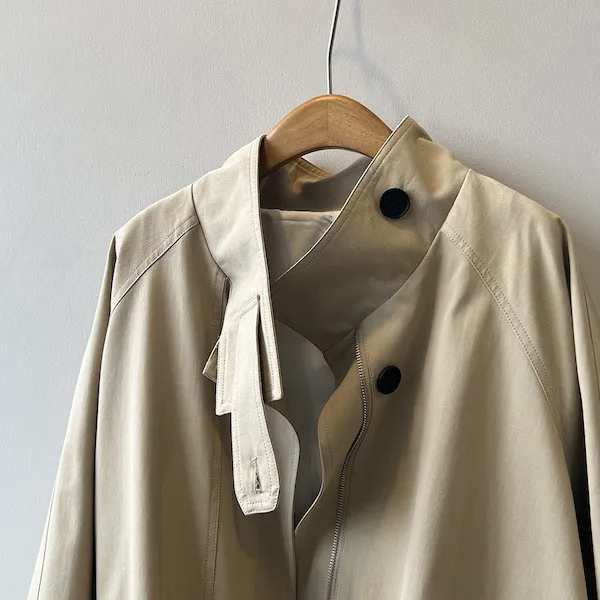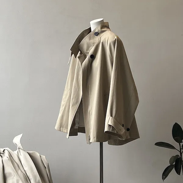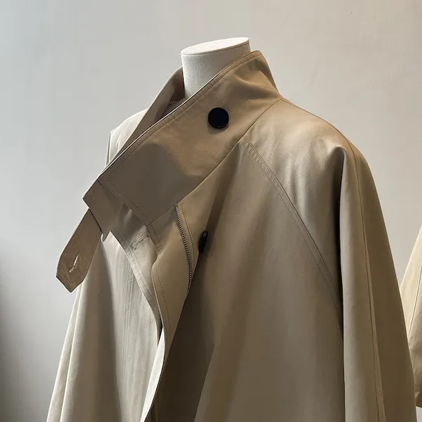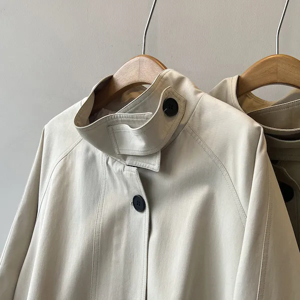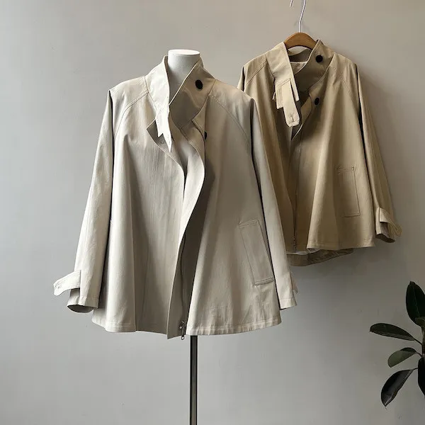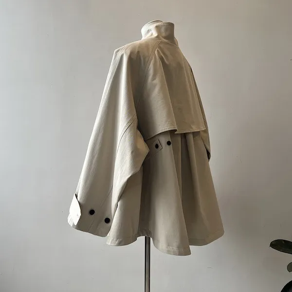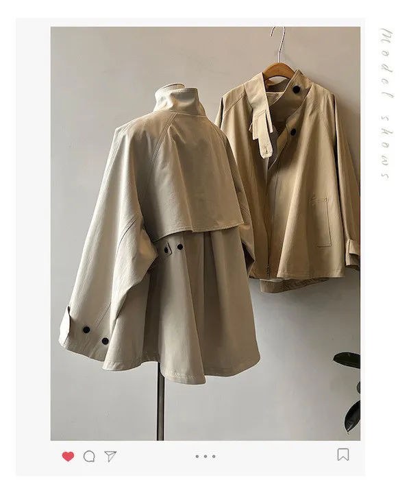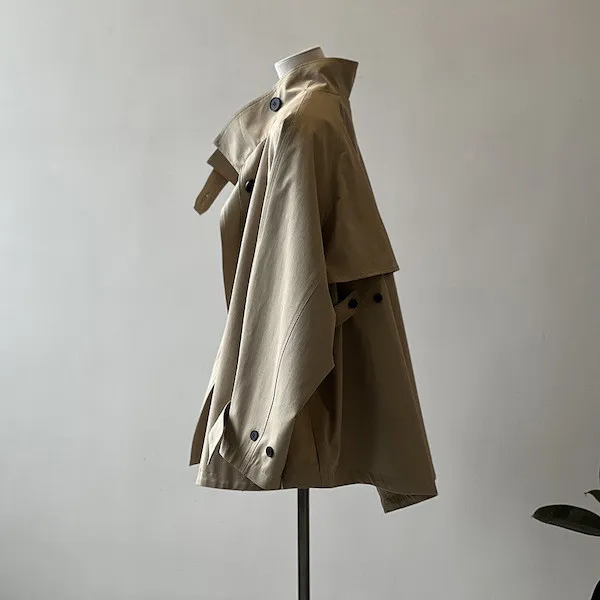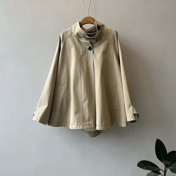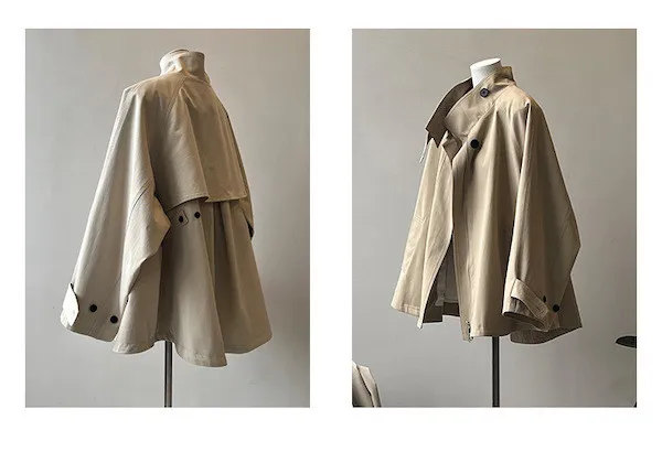 英倫風格 斗篷剪裁立領卡其大衣 2色
