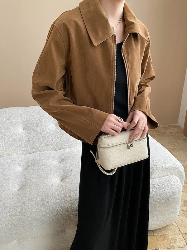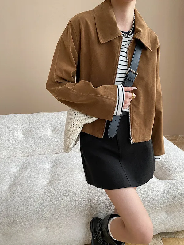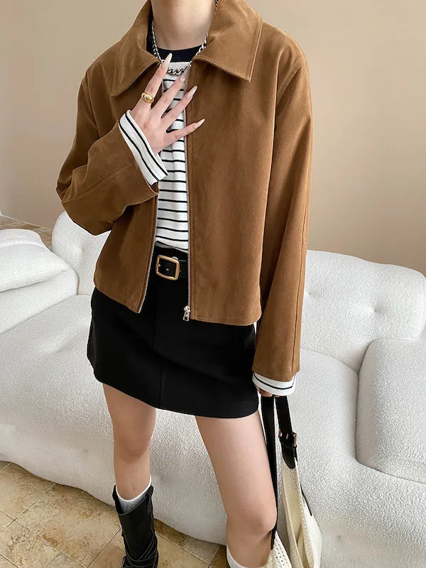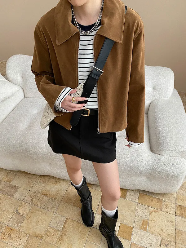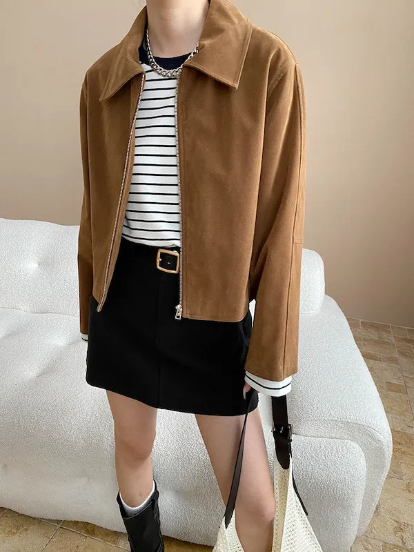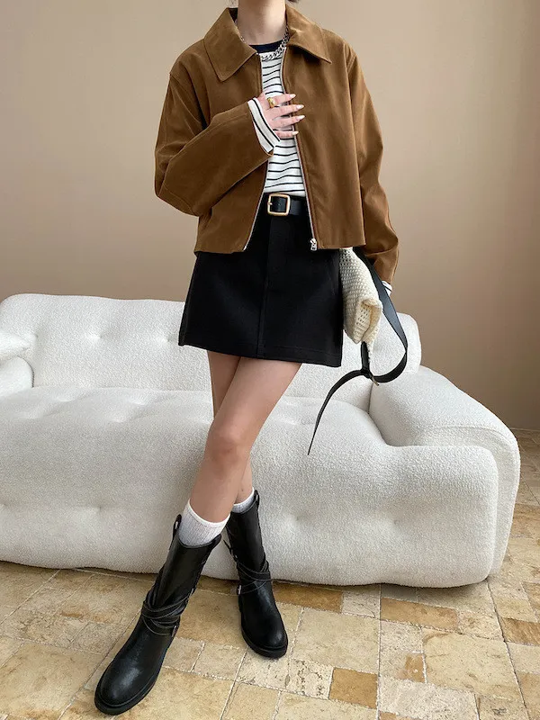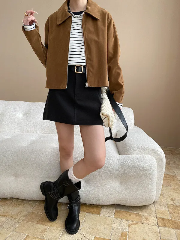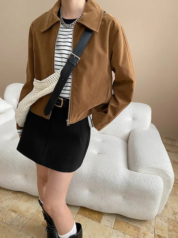 復古時髦美拉德翻領短版夾克