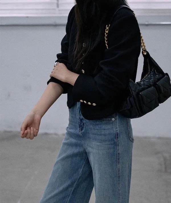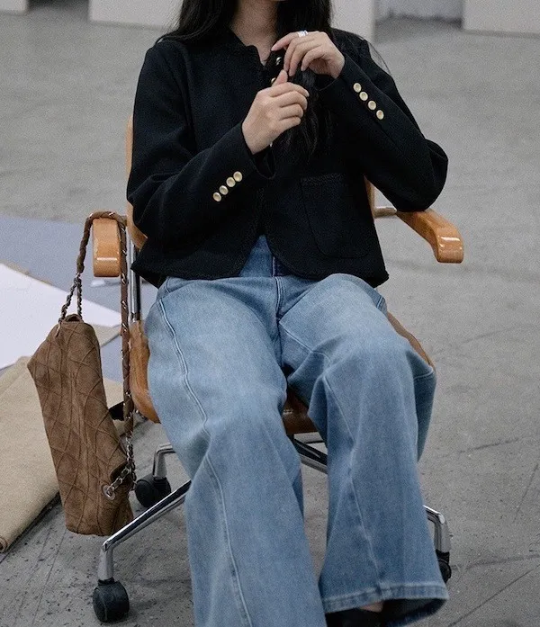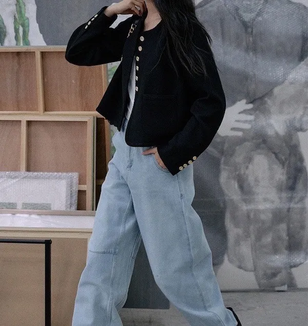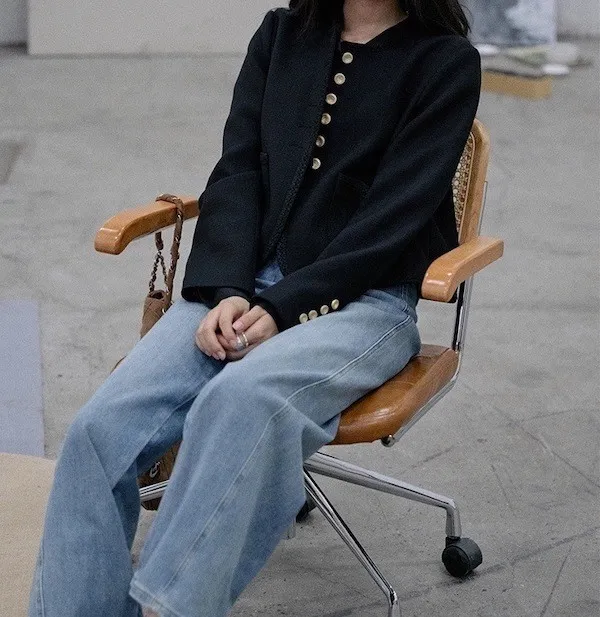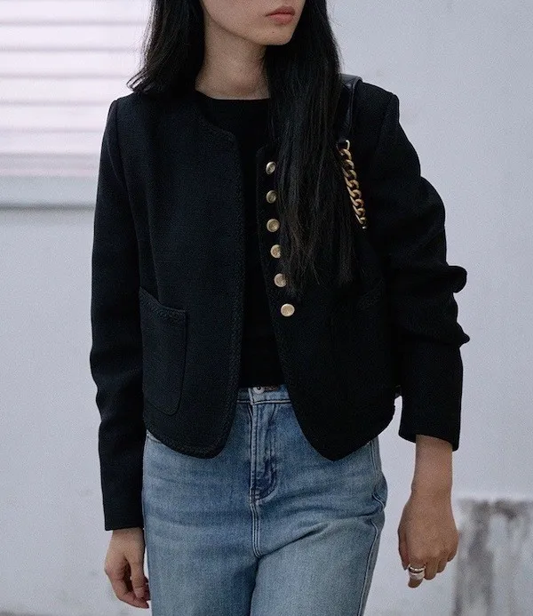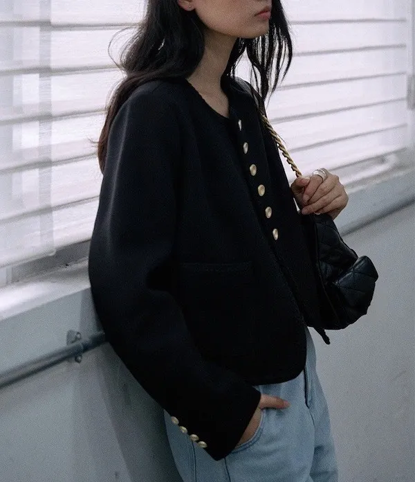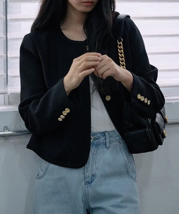 金色釦子排列在胸前跟袖口很有法式優雅的感覺