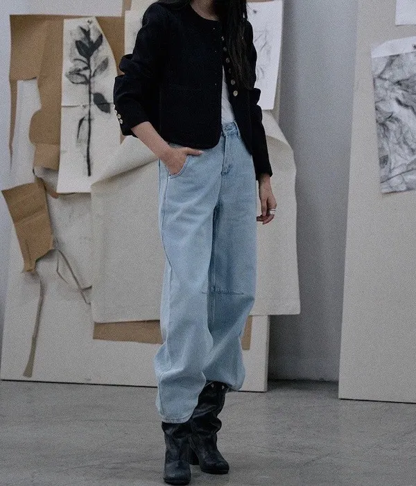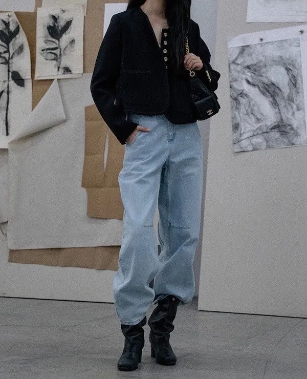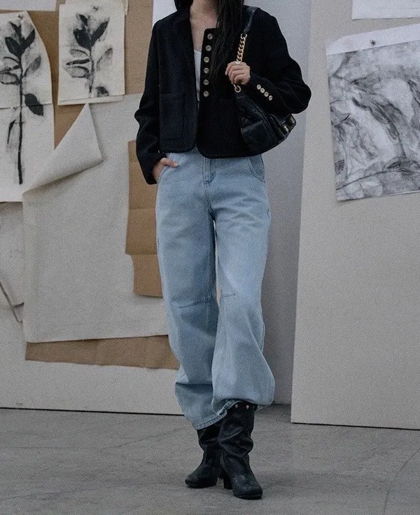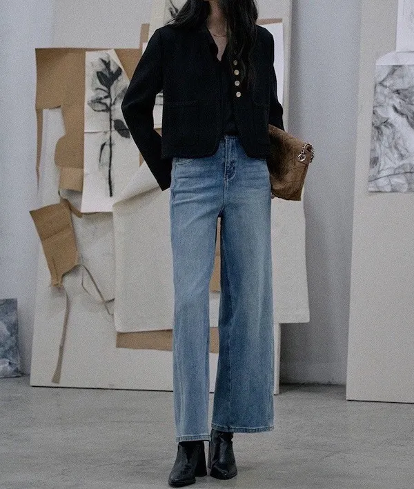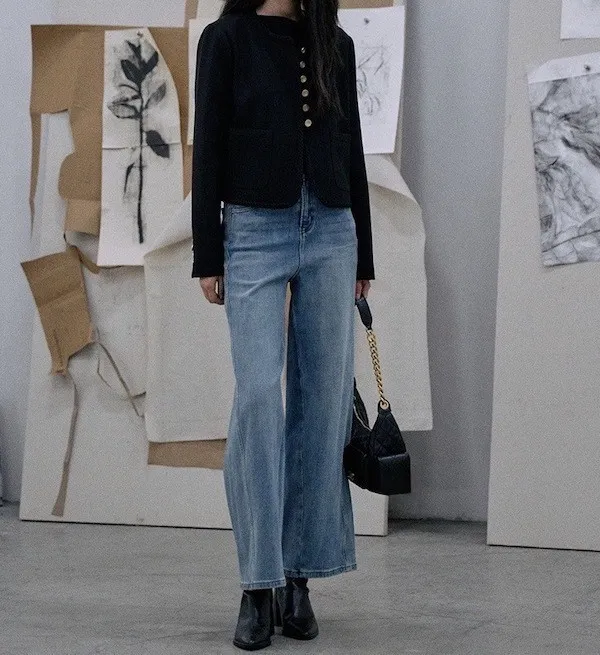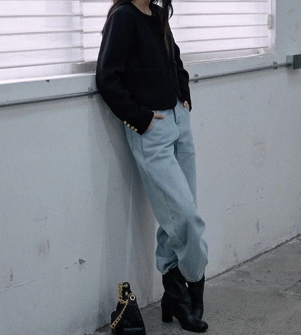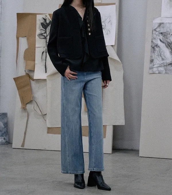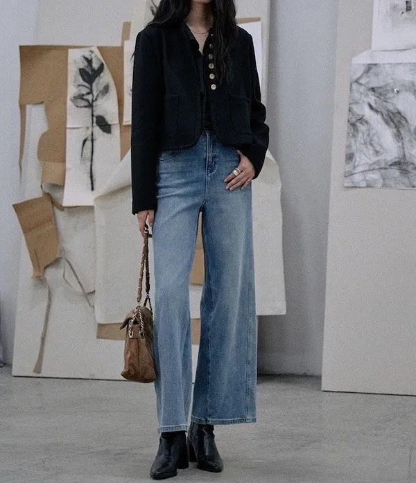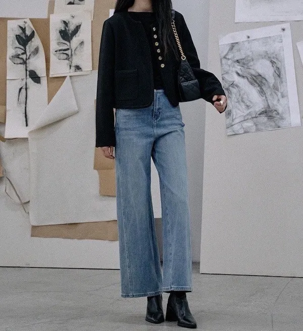 短版長度剛好落在腰線上,搭高腰褲或裙子比例超好