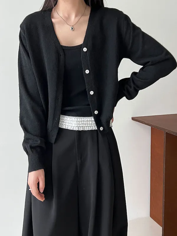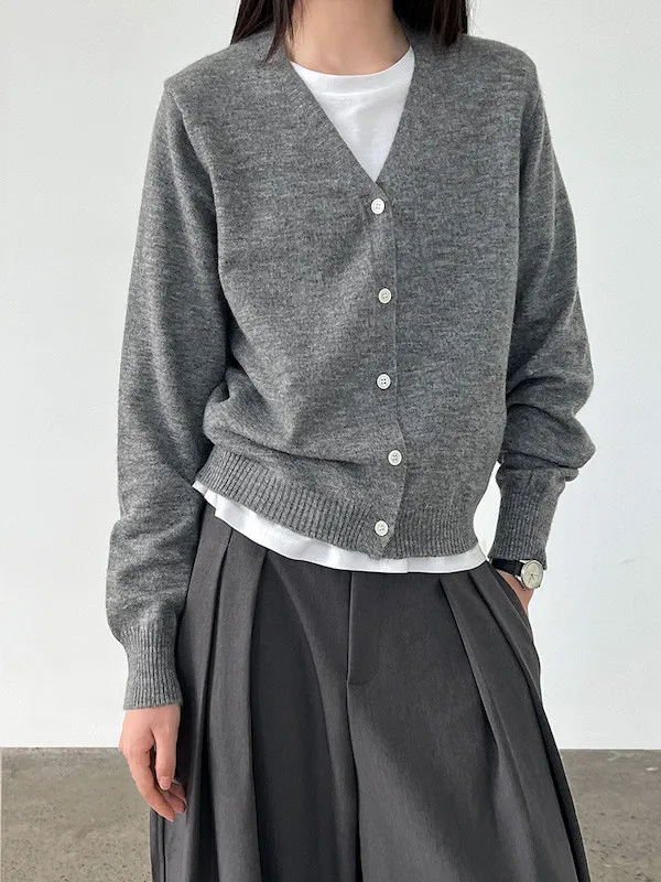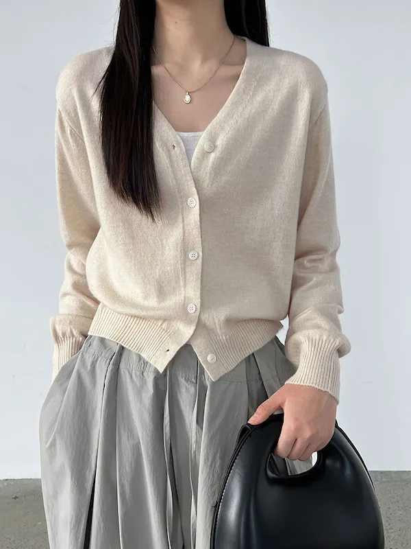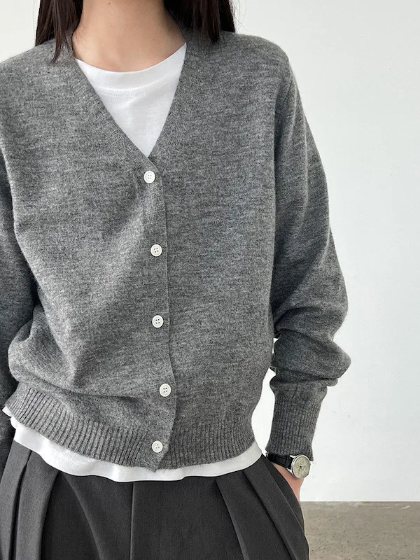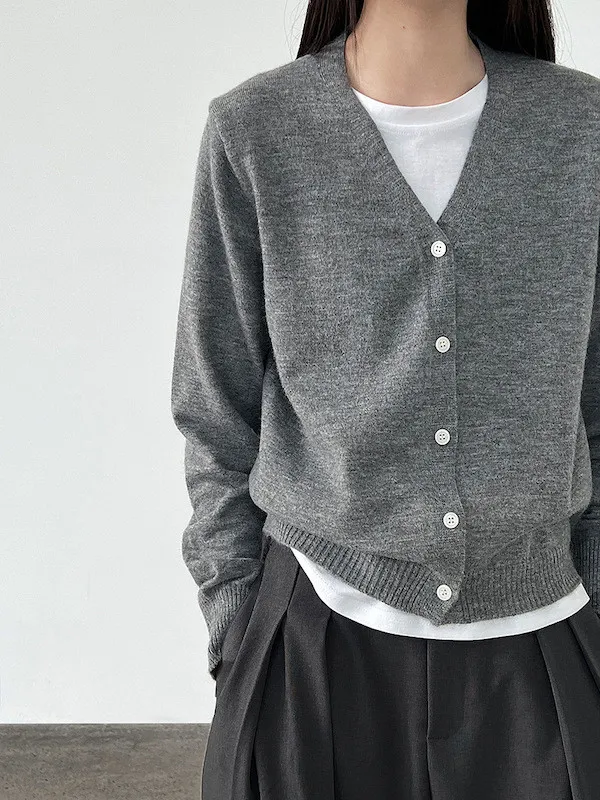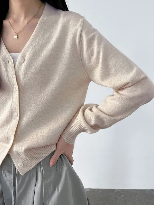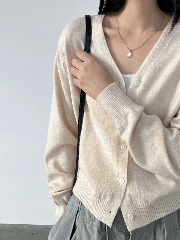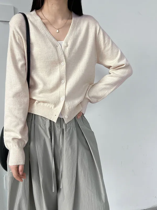 溫柔日常 V領簡約收腰羊毛針織開衫 3色