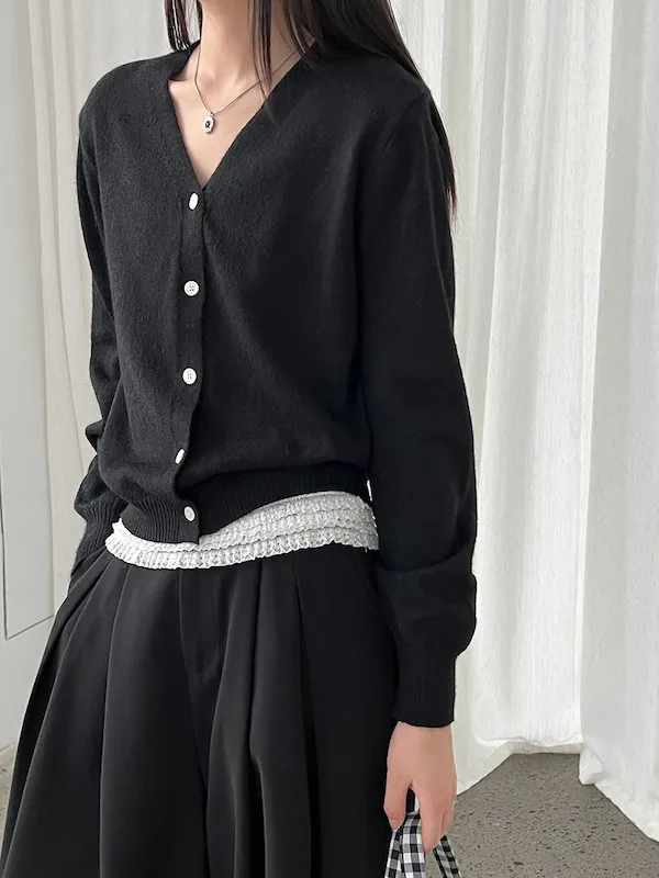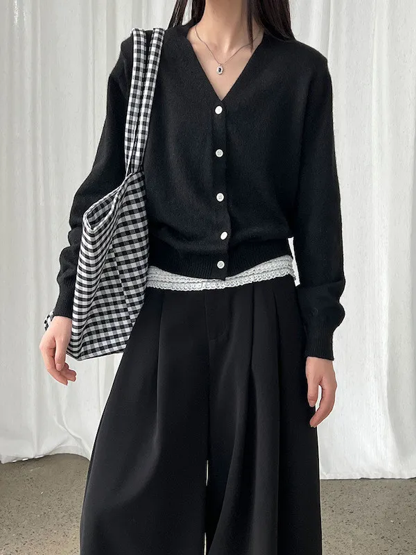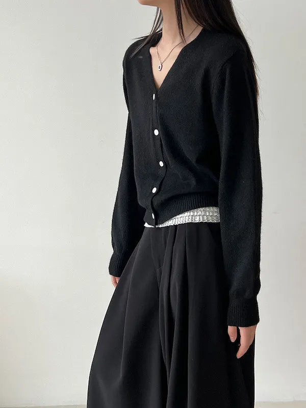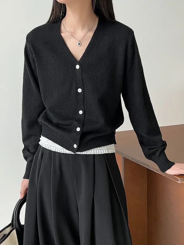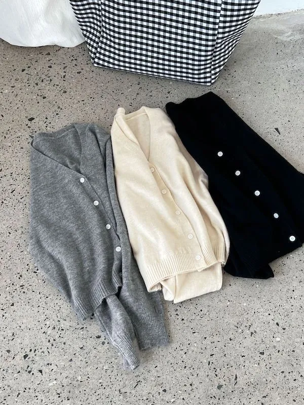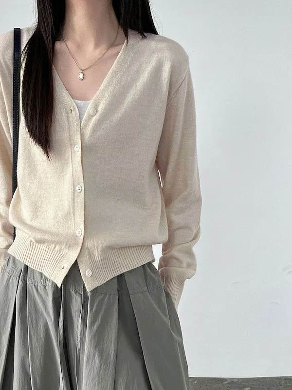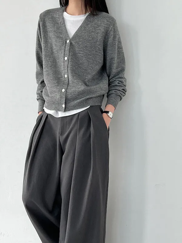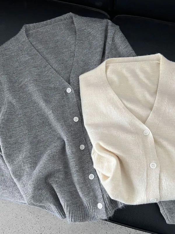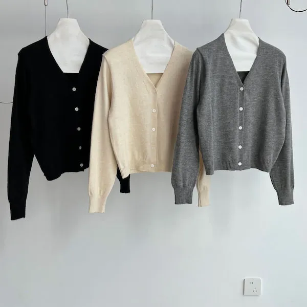溫柔日常 V領簡約收腰羊毛針織開衫 3色