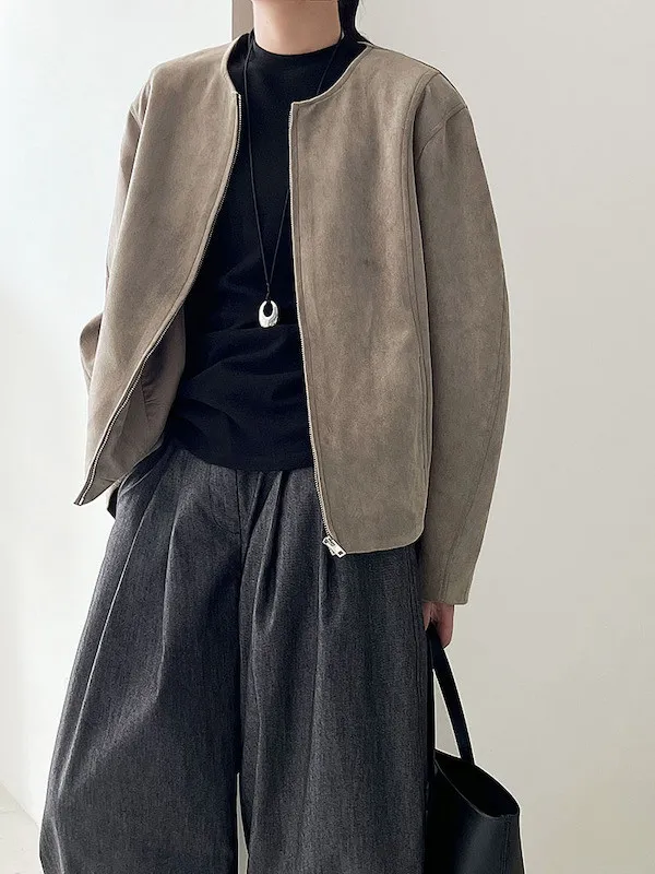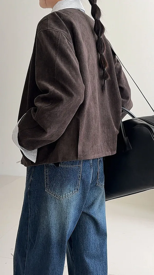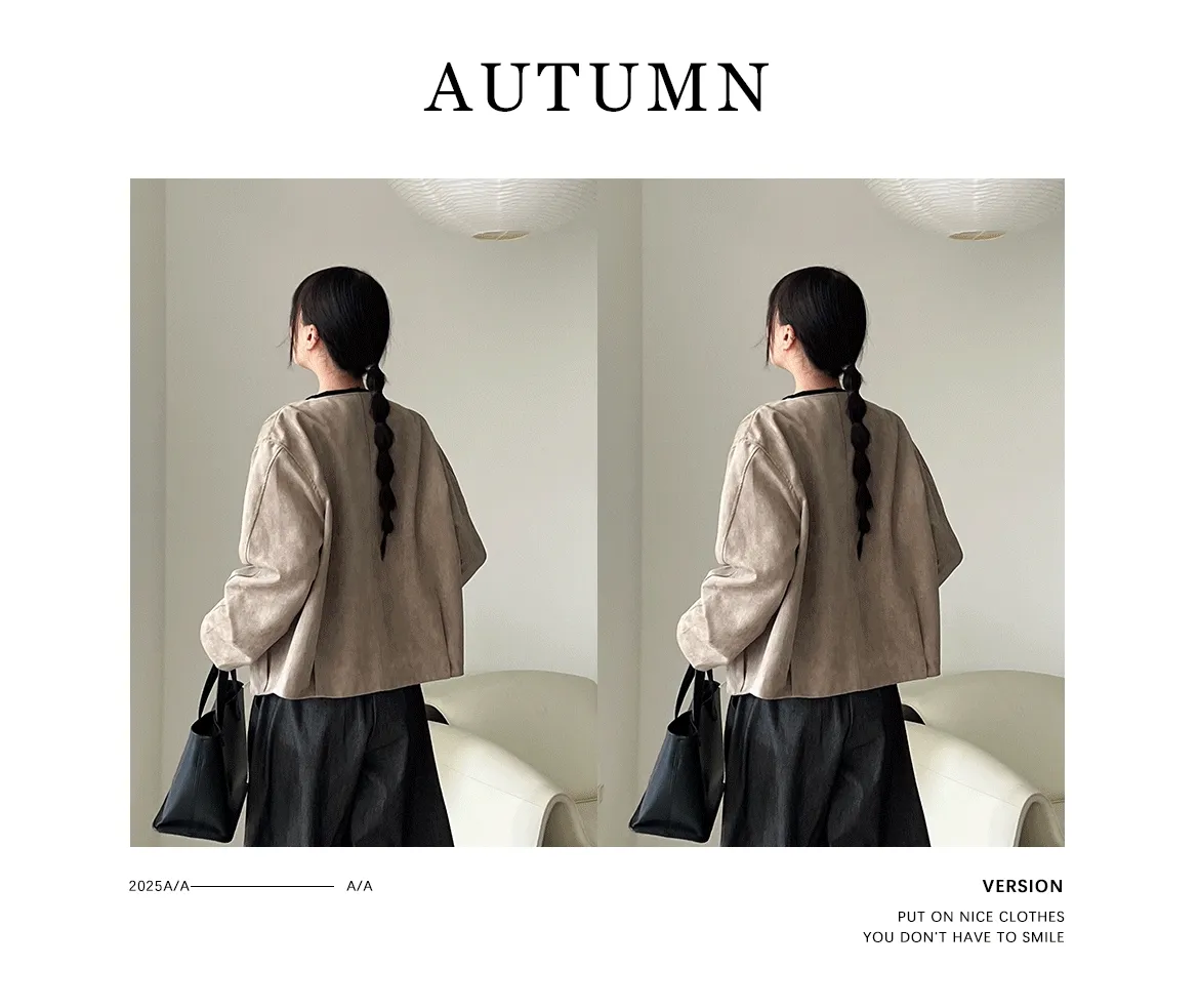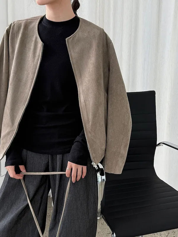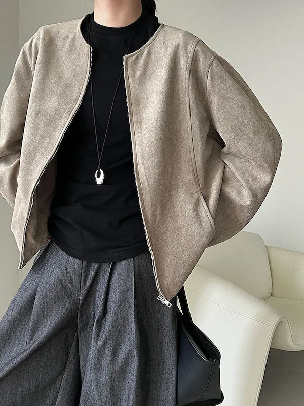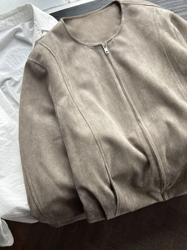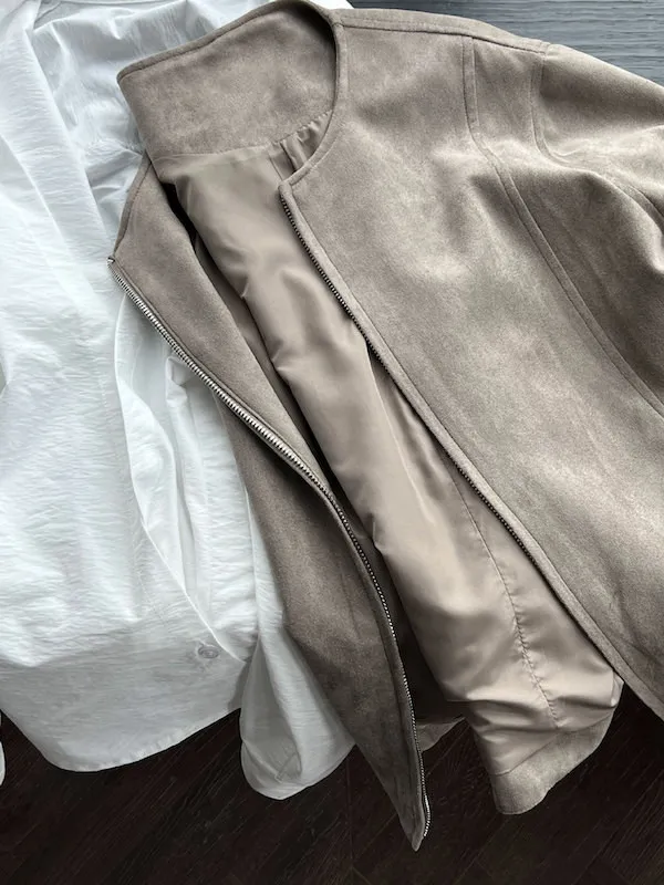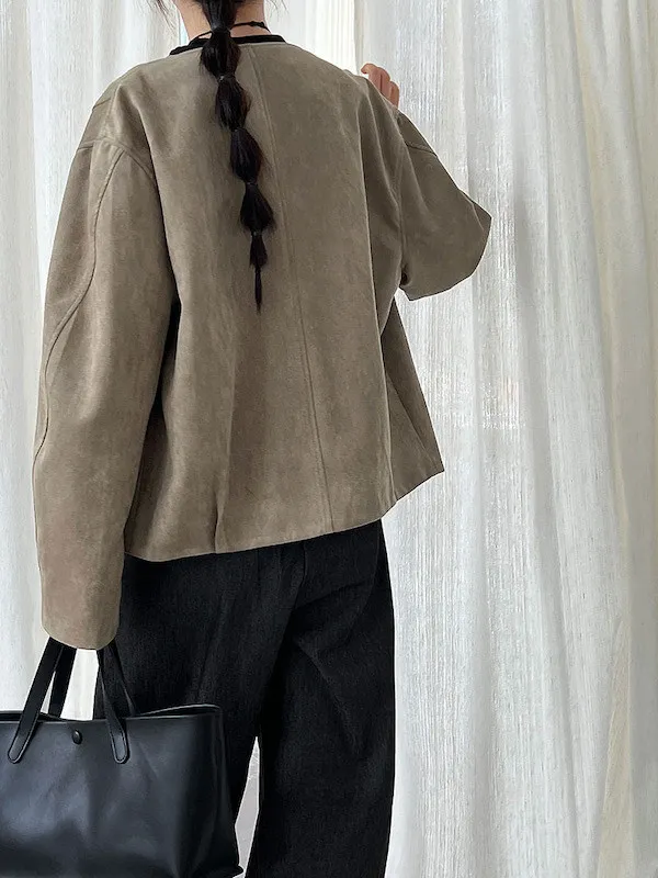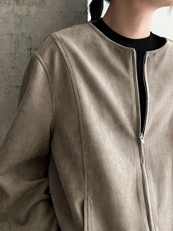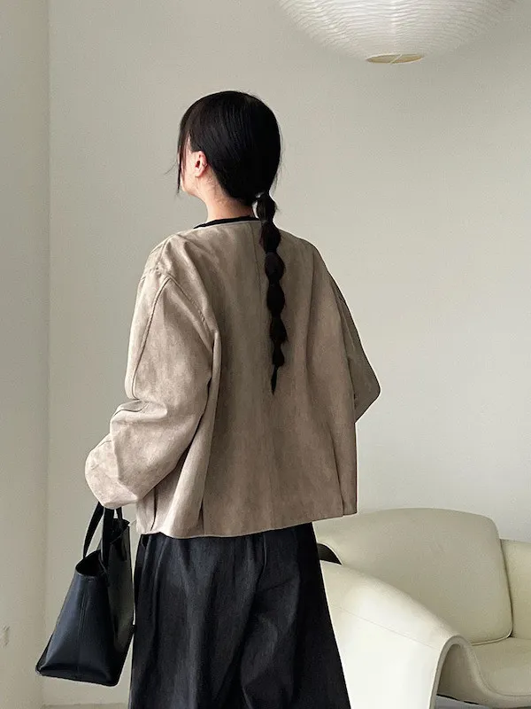 沙漠玫瑰 復古麂皮絨圓領短夾克 2色