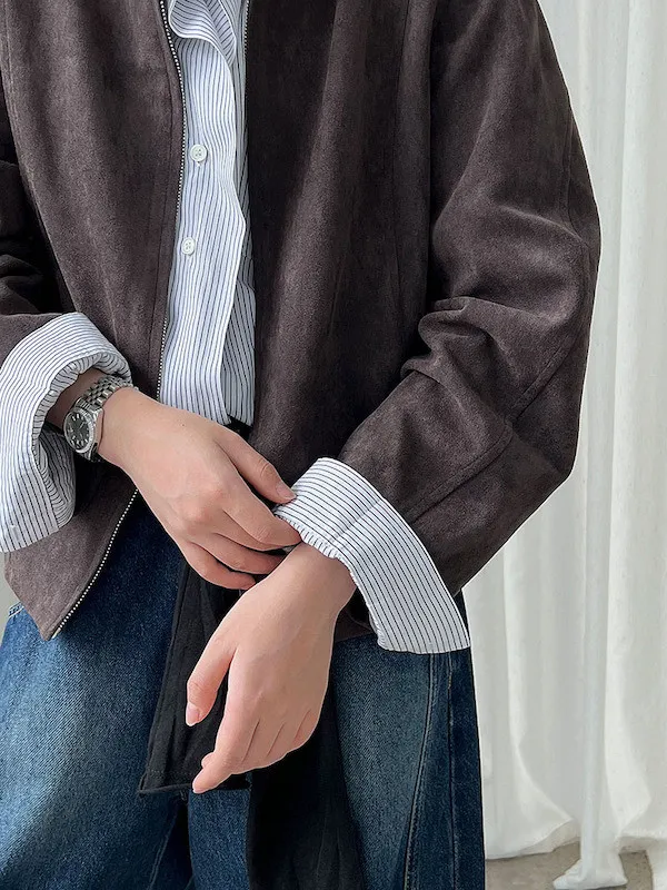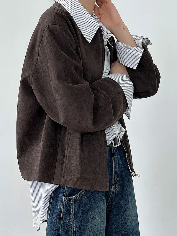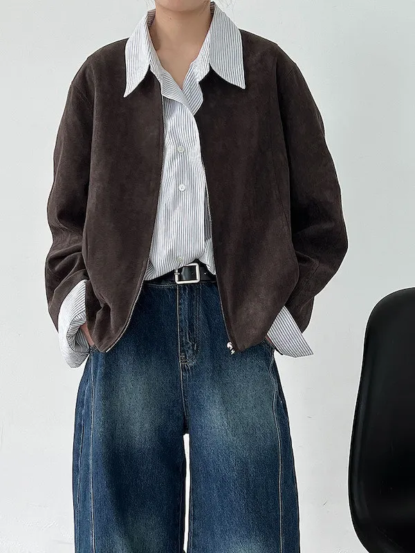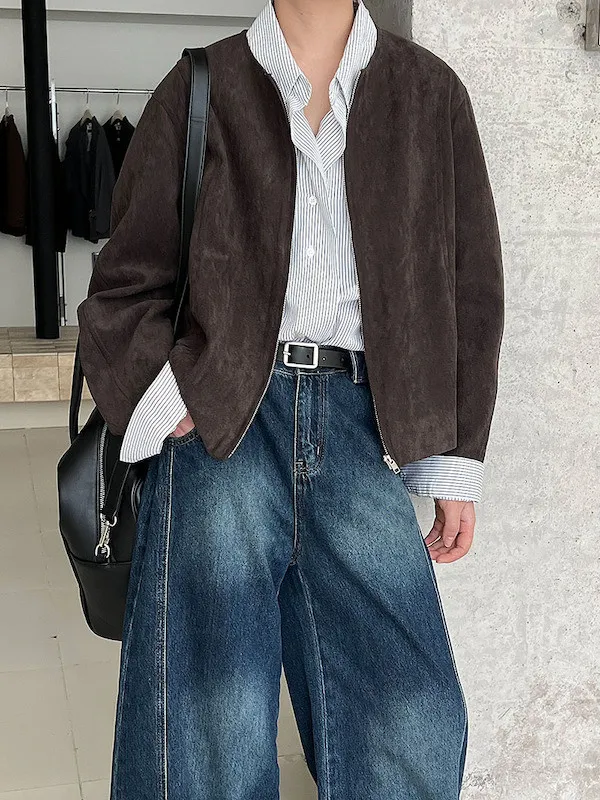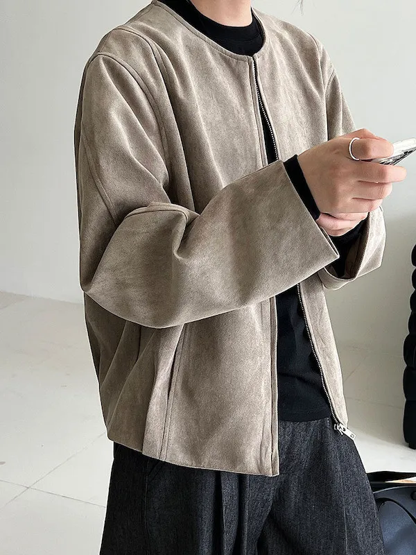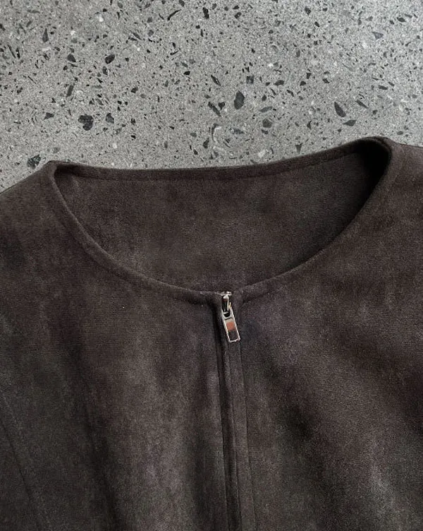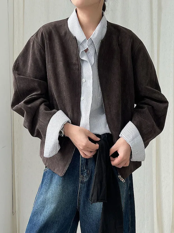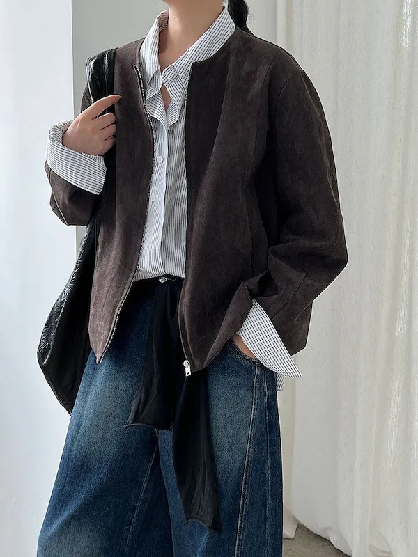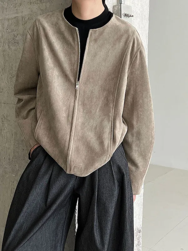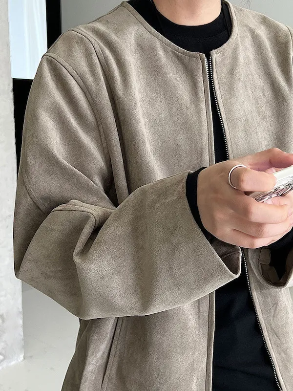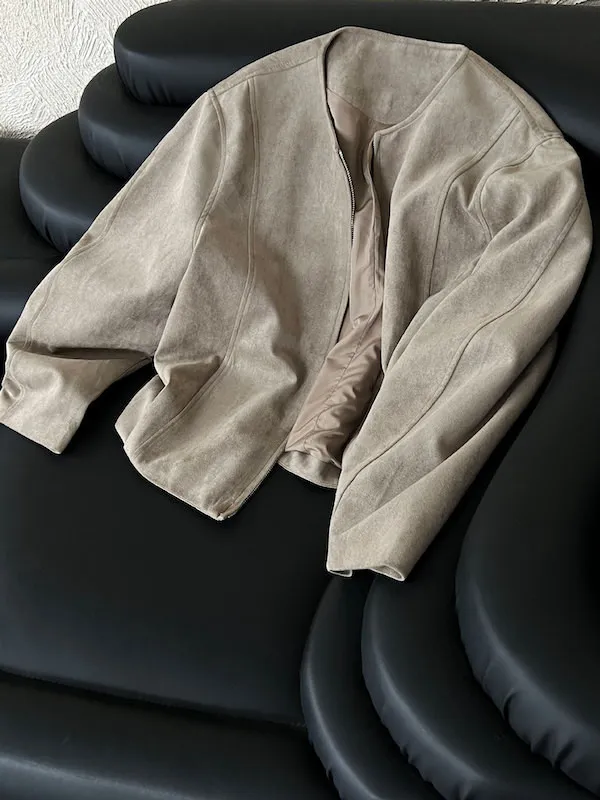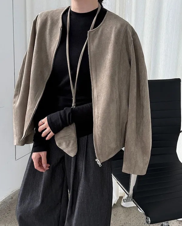 沙漠玫瑰 復古麂皮絨圓領短夾克 2色