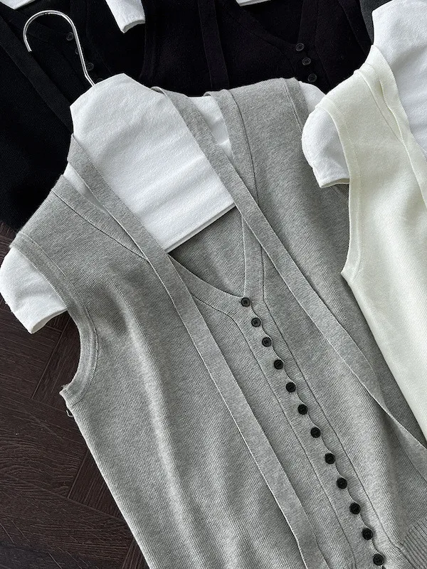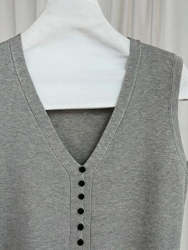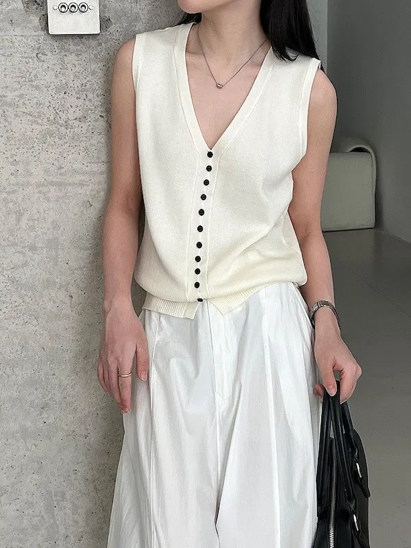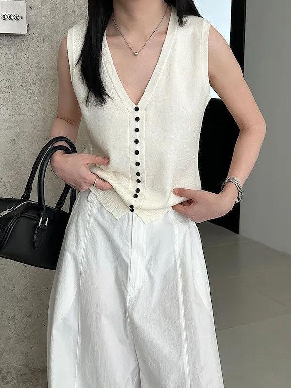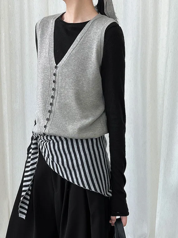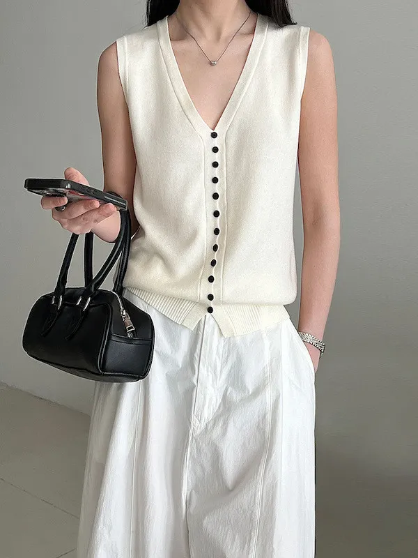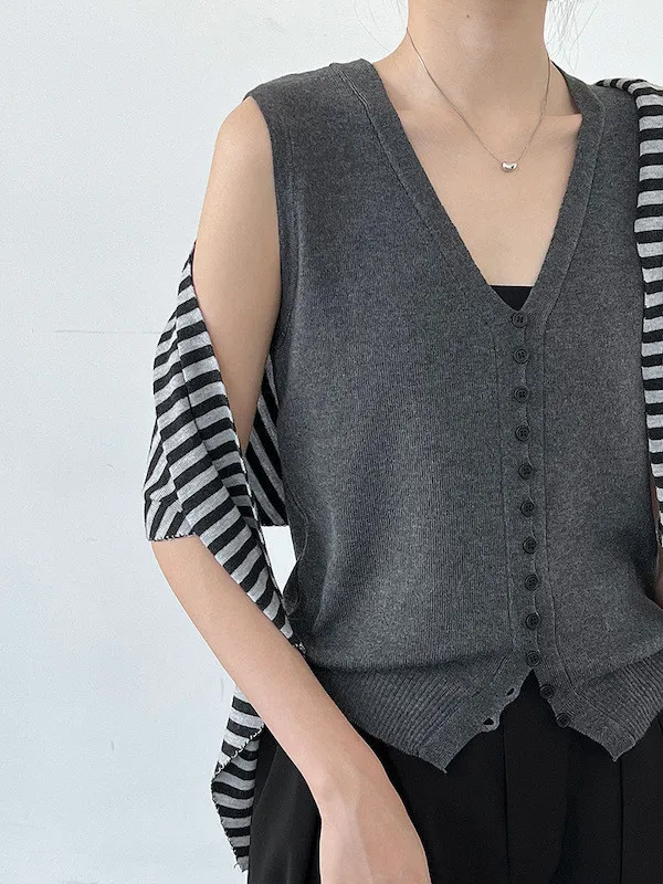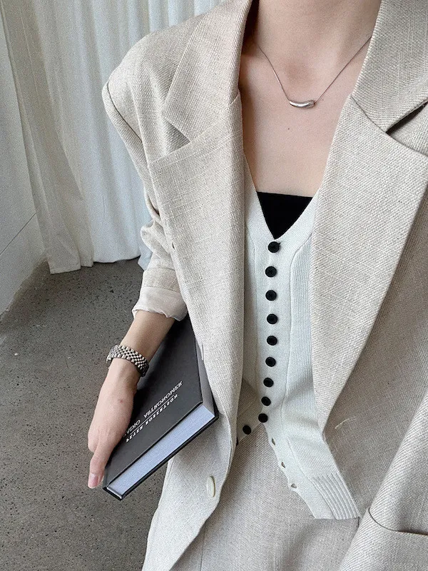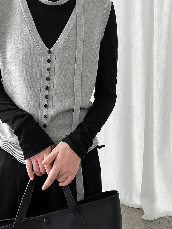 V領針織背心單穿很清爽,配上可拆式領帶就變得很有個性