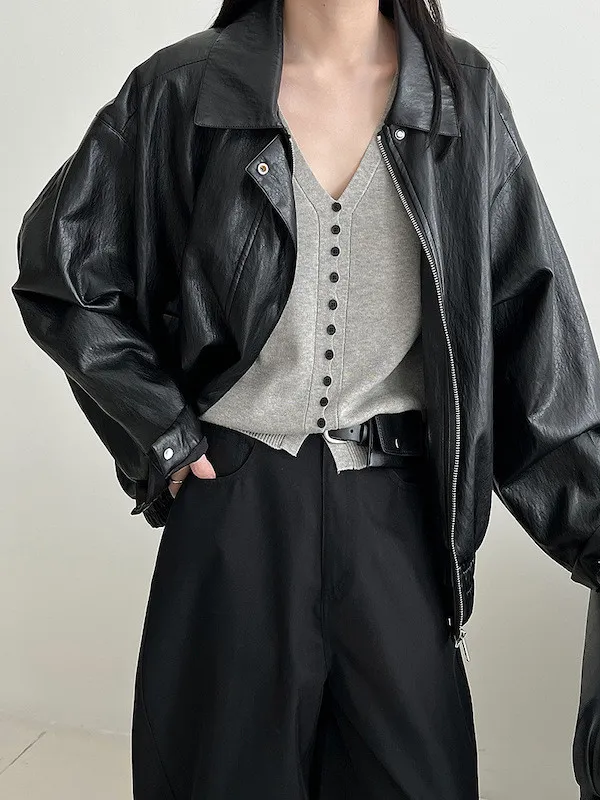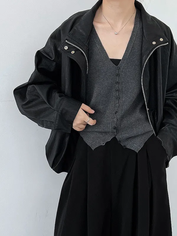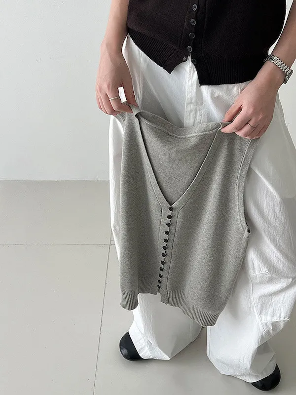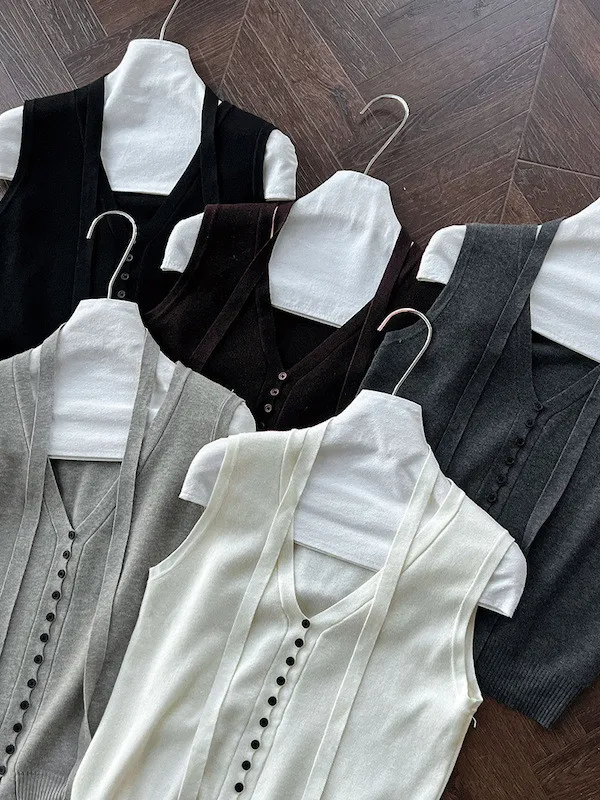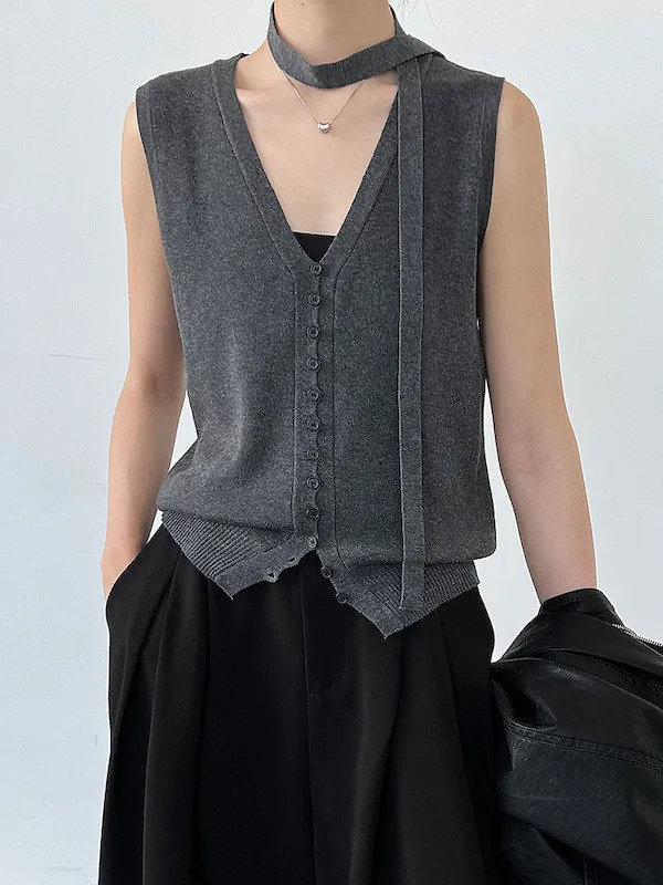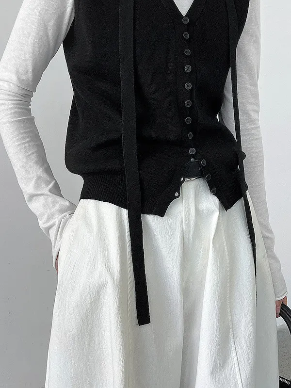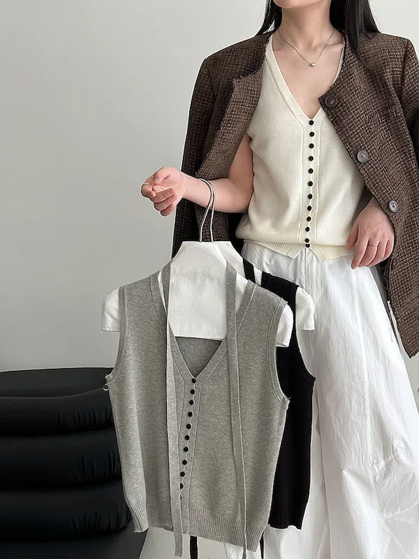 秋日調香 V領羊毛針織背心配領帶上衣 5色